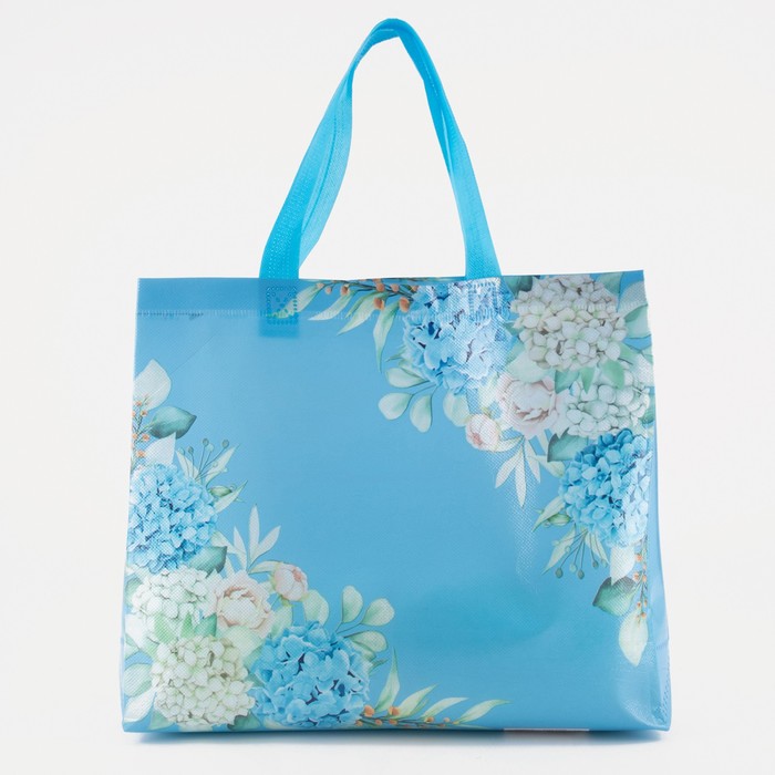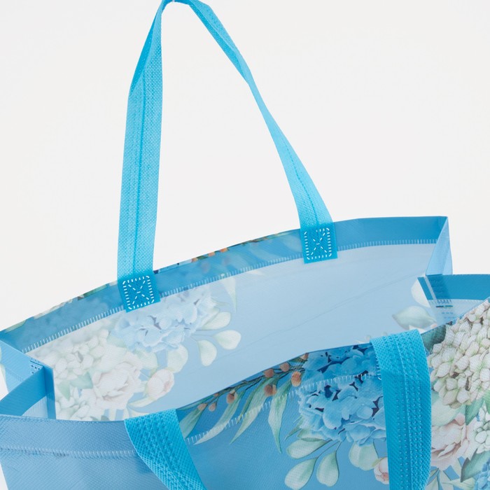 Этот голубой шопер с цветочным рисунком станет вашим помощником для ежедневных покупок и хозяйственных дел. Простая конструкция без застёжки экономит время — продукты и бытовые мелочи легко помещаются внутрь. Лёгкий материал и удобные ручки делают носку комфортной даже с полной загрузкой.