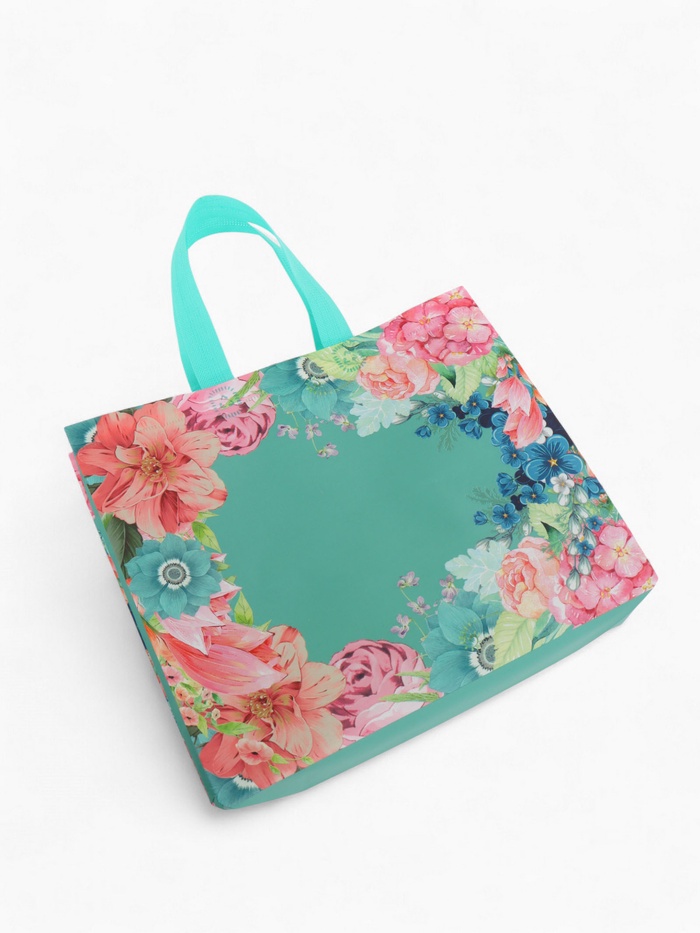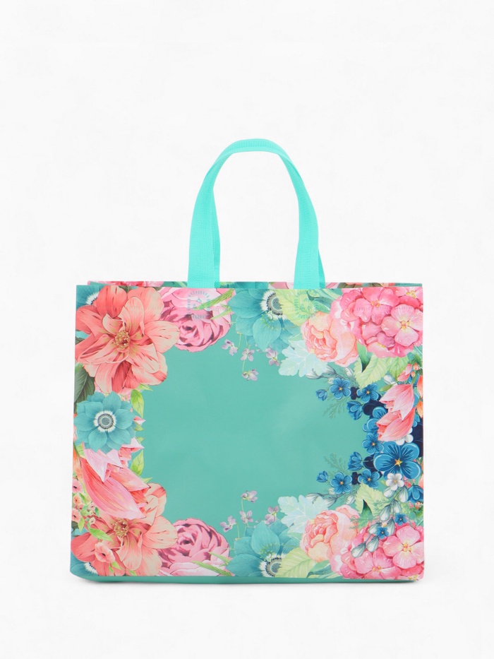 Голубой шопер с цветочным узором привносит в образ свежесть и спокойствие. Эта сумка становится универсальным спутником для городских прогулок и повседневных дел.