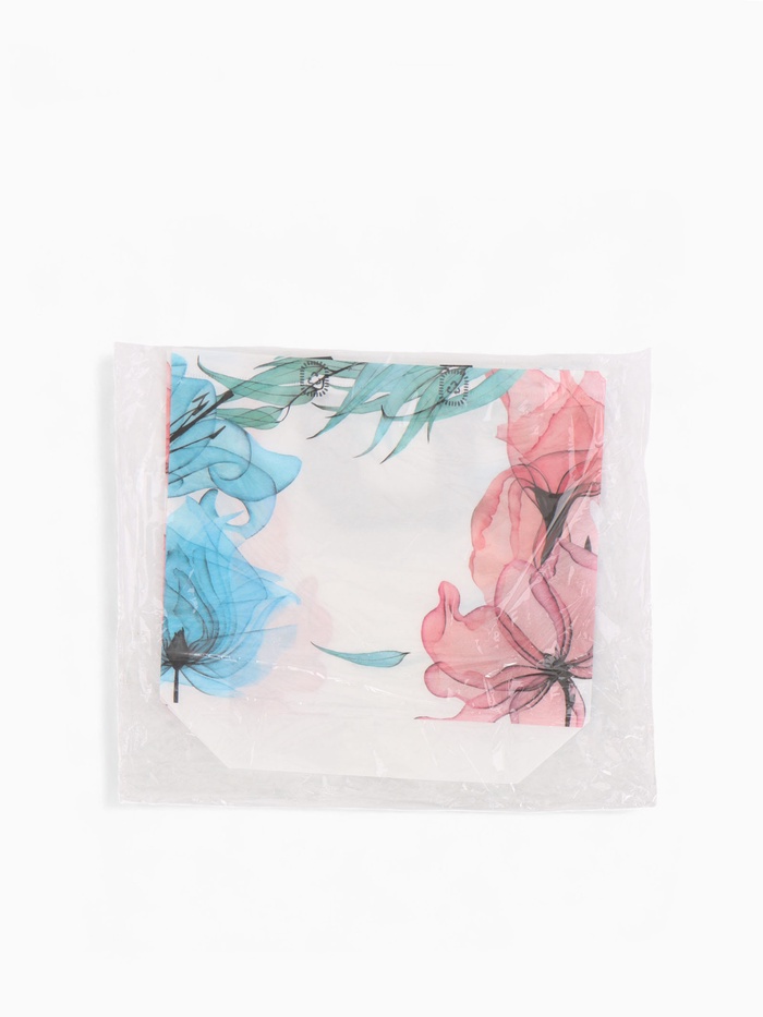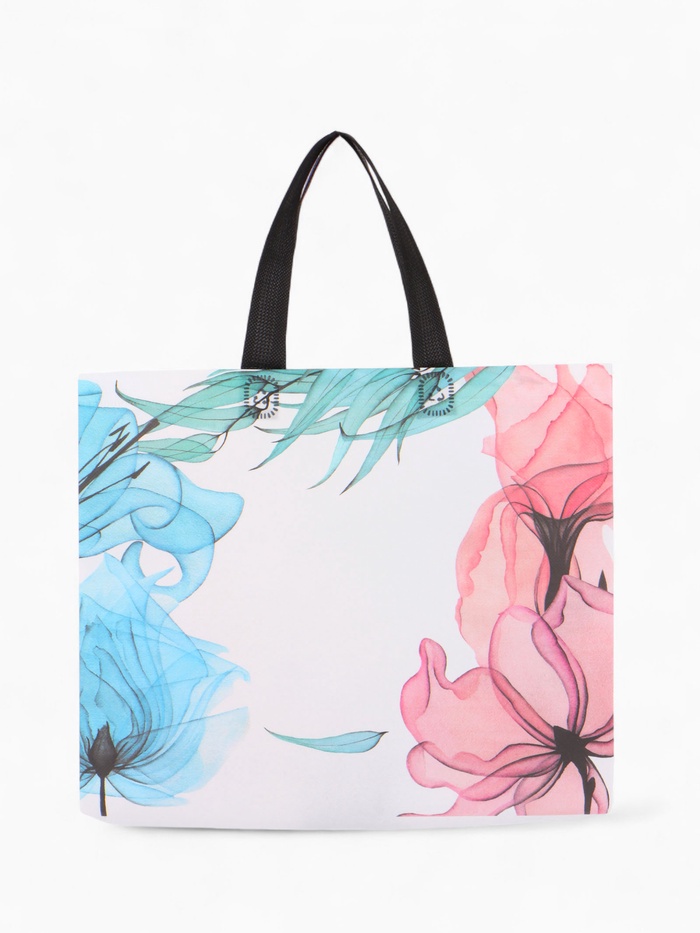 Разноцветный шопер с цветочным принтом создаёт яркий акцент в повседневном образе. Эта сумка добавляет настроения обычным прогулкам и походам за покупками.