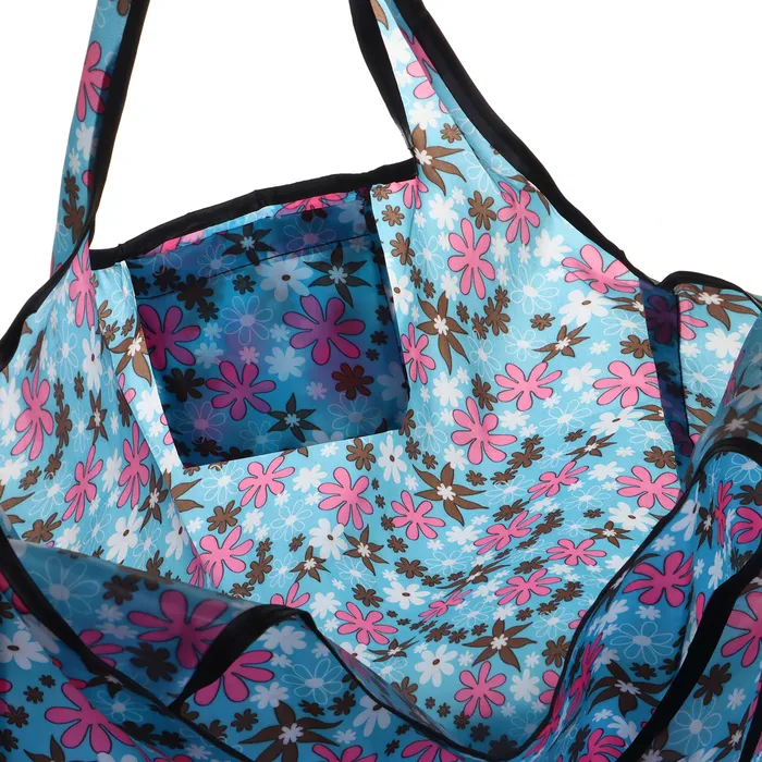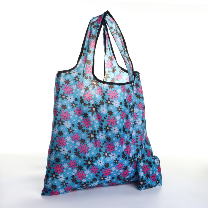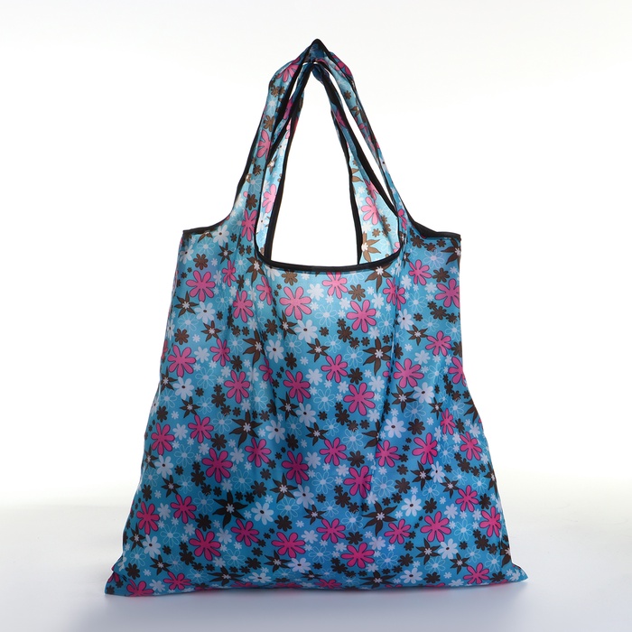 Сумка хозяйственная без застёжки, складная, 46×0.5×63 см голубая/розовая — Характеристики