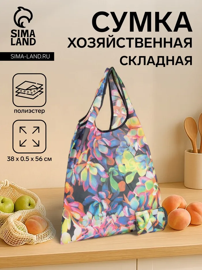 Сумка хозяйственная без застёжки, складная, цвет разноцветный — Характеристики