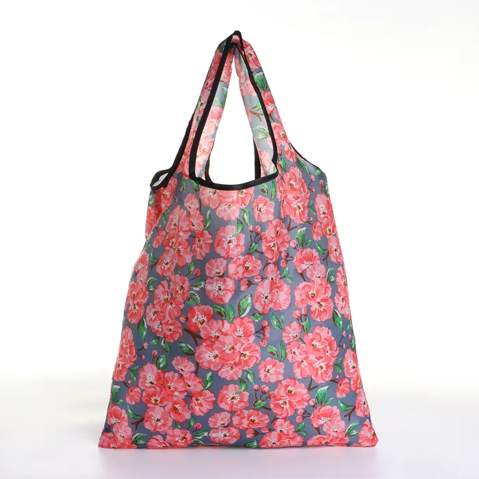 Сумка хозяйственная без застёжки, складная, цвет серый/розовый — Характеристики