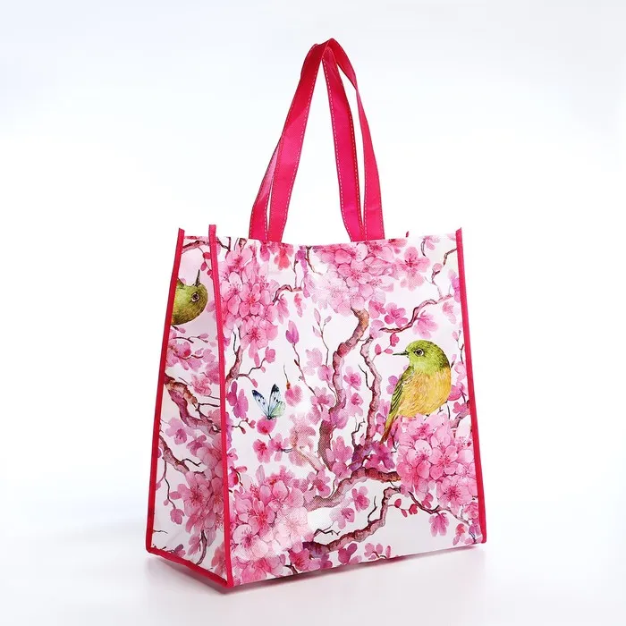 Сумка хозяйственная без застёжки, цвет белый/розовый — Характеристики
