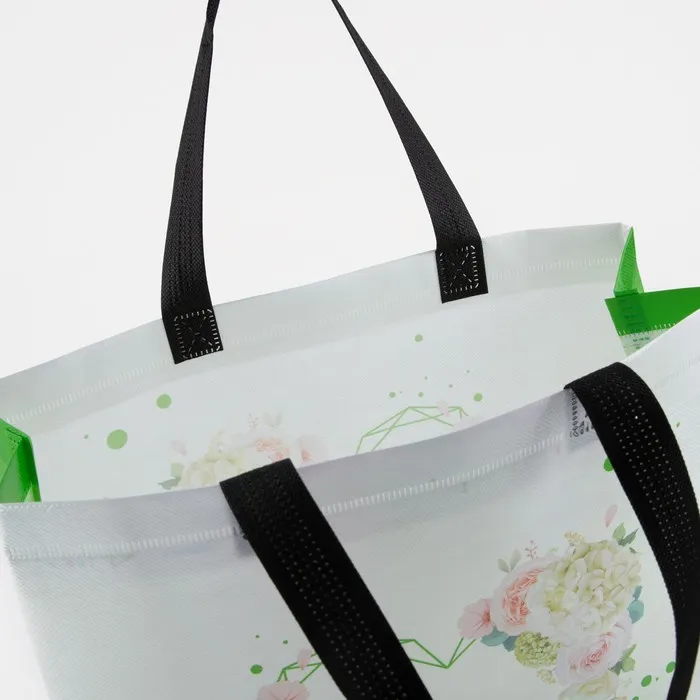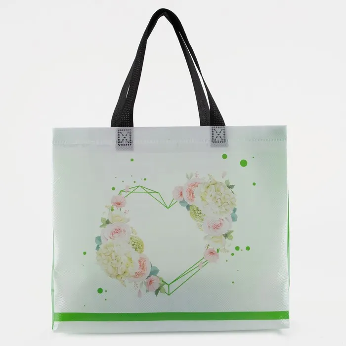 Сумка хозяйственная без застёжки, цвет белый/салатовый — Характеристики