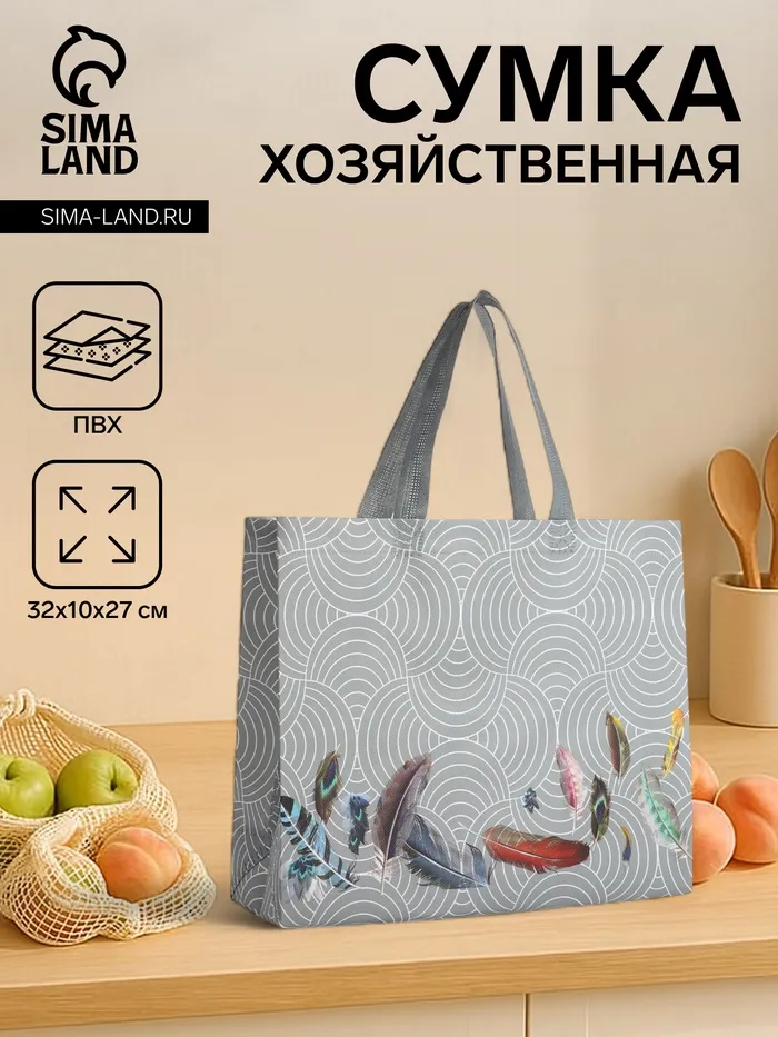 Сумка хозяйственная без застёжки, цвет серый — Характеристики