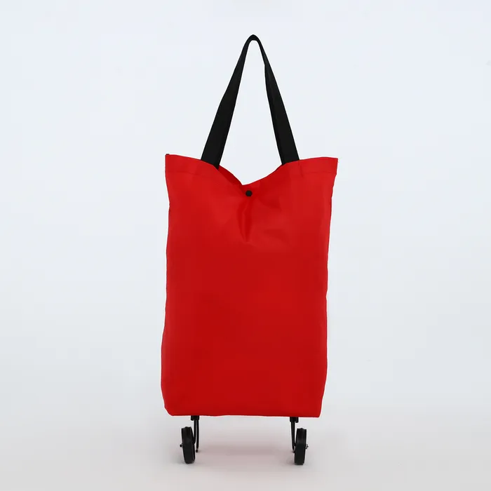 Сумка хозяйственная складная на кнопке, 2 колеса, наружный карман, цвет красный