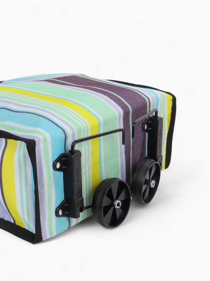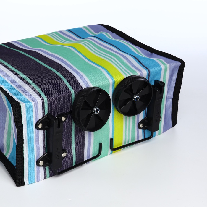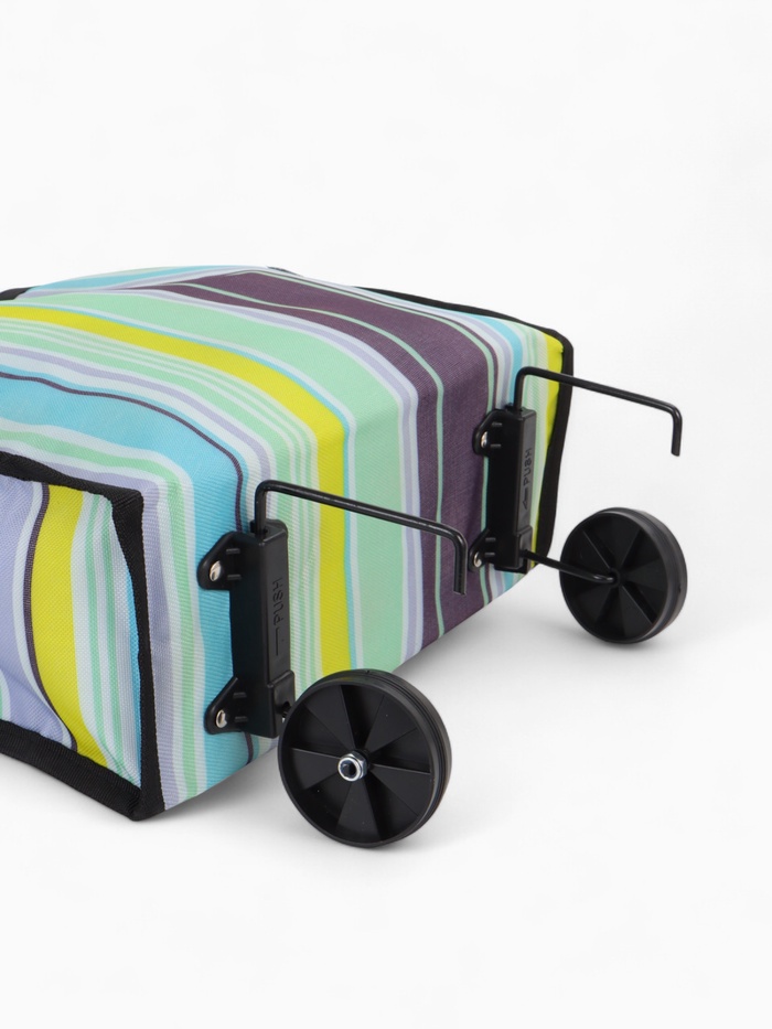 Эта яркая складная тележка станет вашей незаменимой помощницей в повседневных хлопотах. Сочетание голубого и жёлтого цветов с полосатым рисунком создаёт солнечное настроение даже во время обычного похода за покупками. Два удобных колеса легко преодолевают дорожные неровности, а компактный размер идеален для городских условий.