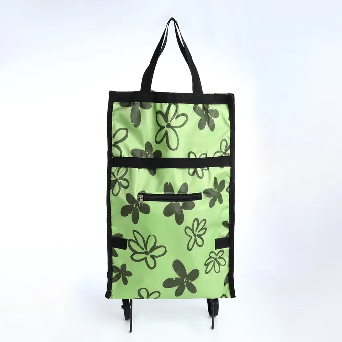 Сумка хозяйственная складная на липучке, 2 колеса, наружный карман, 32×13×52 см, светло-зелёная — Характеристики