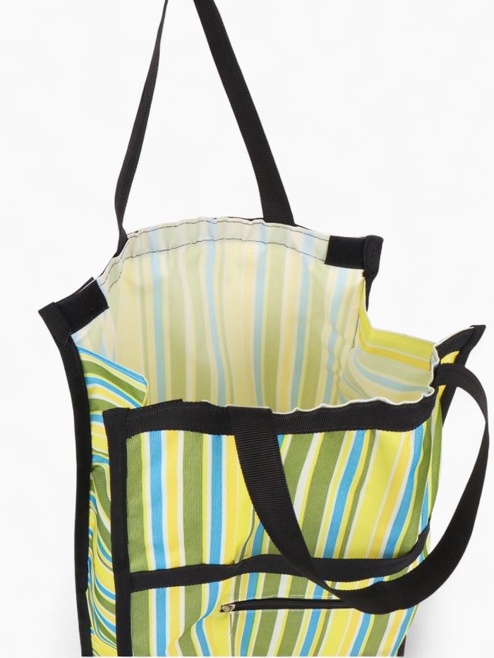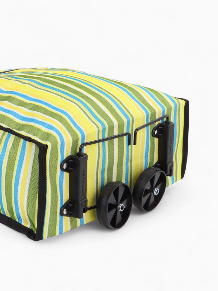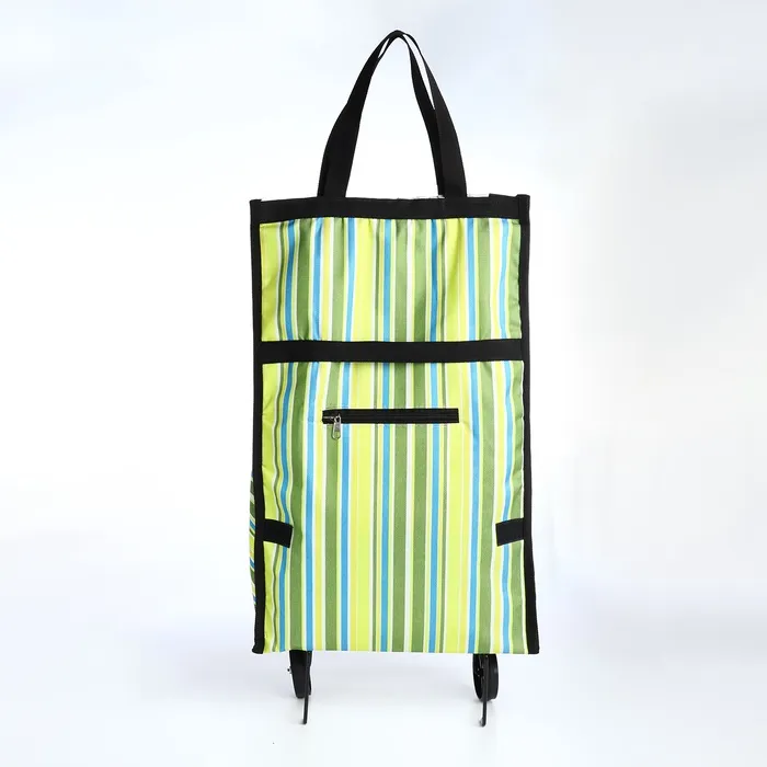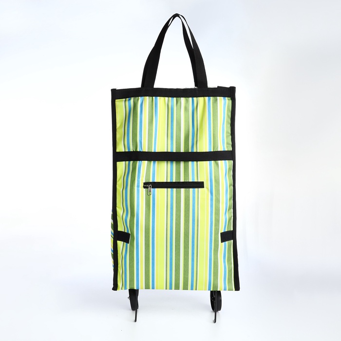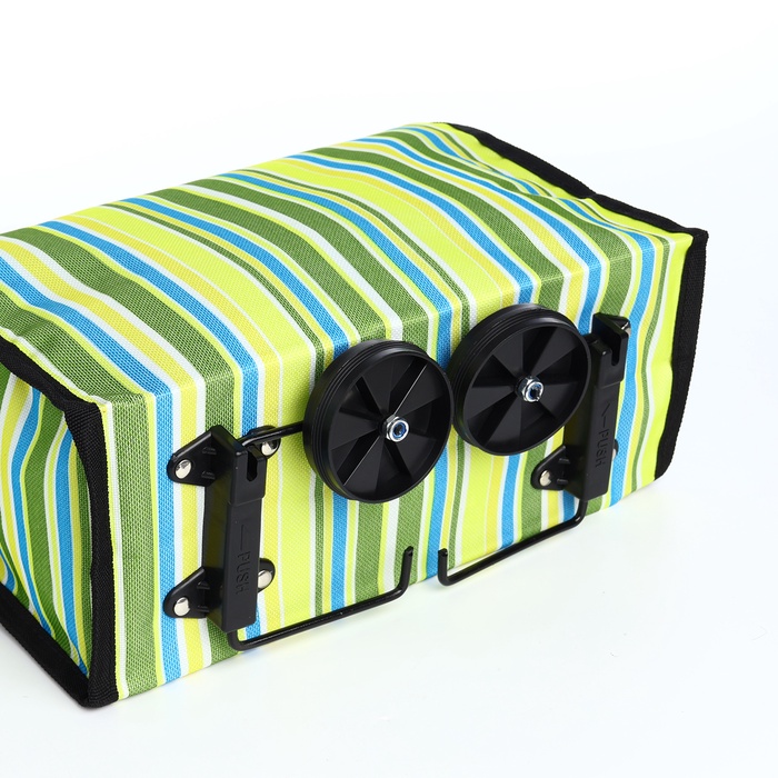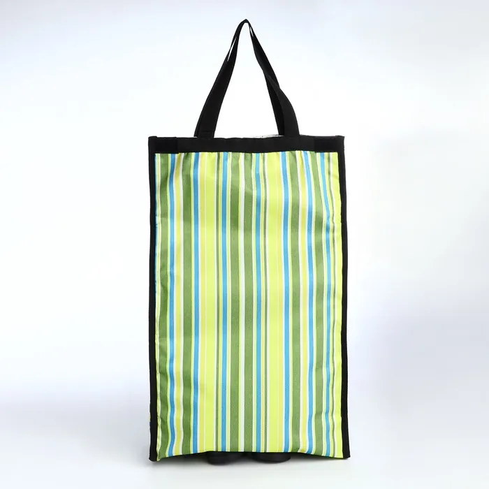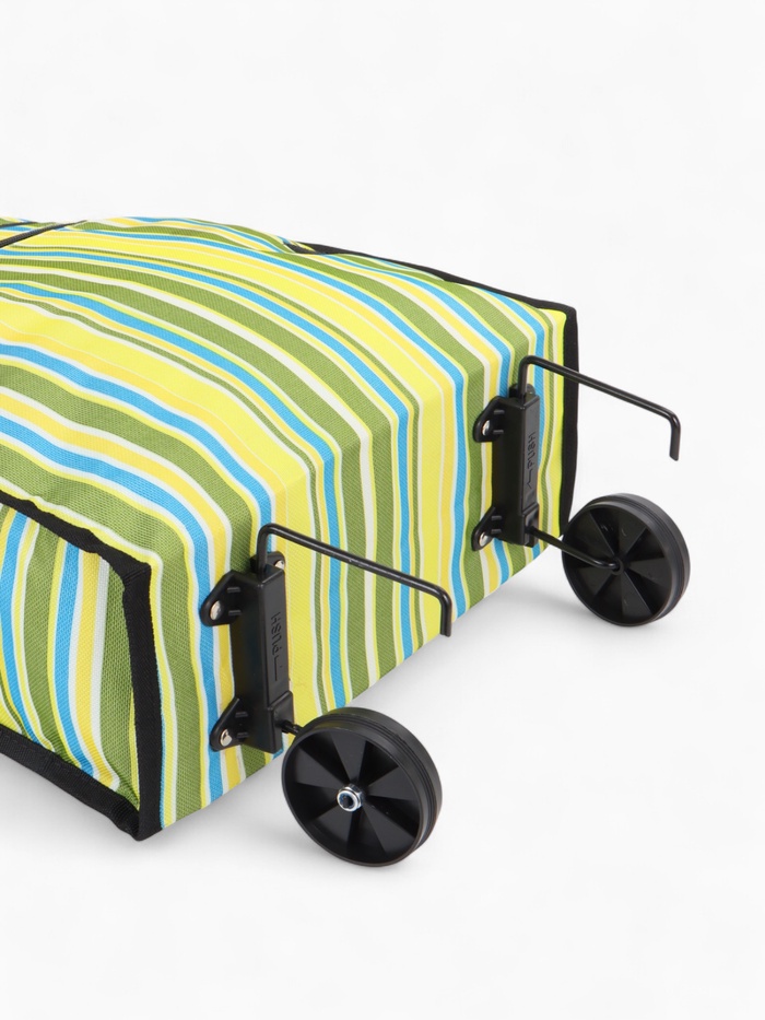 Эта практичная складная тележка станет вашей незаменимой помощницей в повседневных заботах. Свежий зелёный цвет с полосатым рисунком напоминает о весенней прогулке и создаёт хорошее настроение даже во время обычного похода за покупками. Два удобных колеса плавно катятся по городским тротуарам, а складная конструкция экономит место при хранении.