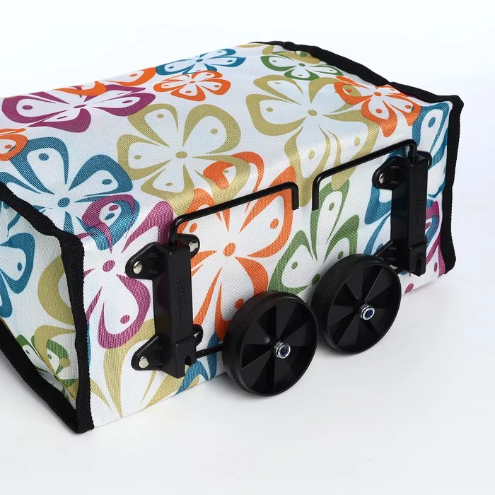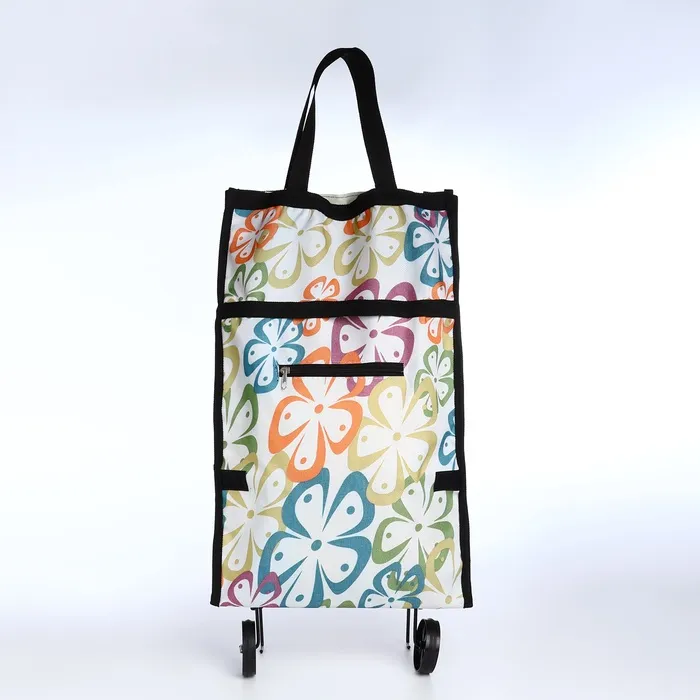 Сумка хозяйственная складная на липучке, 2 колеса, наружный карман, цвет разноцветный — Характеристики