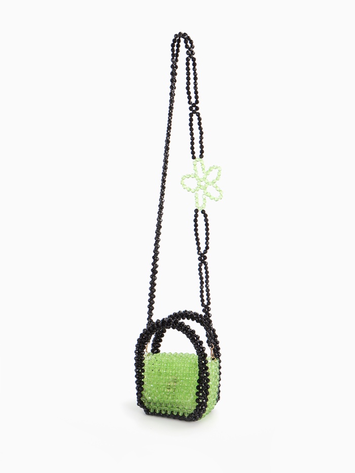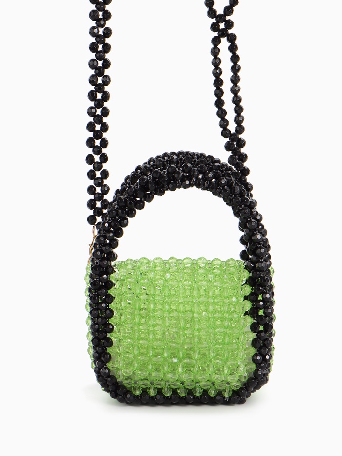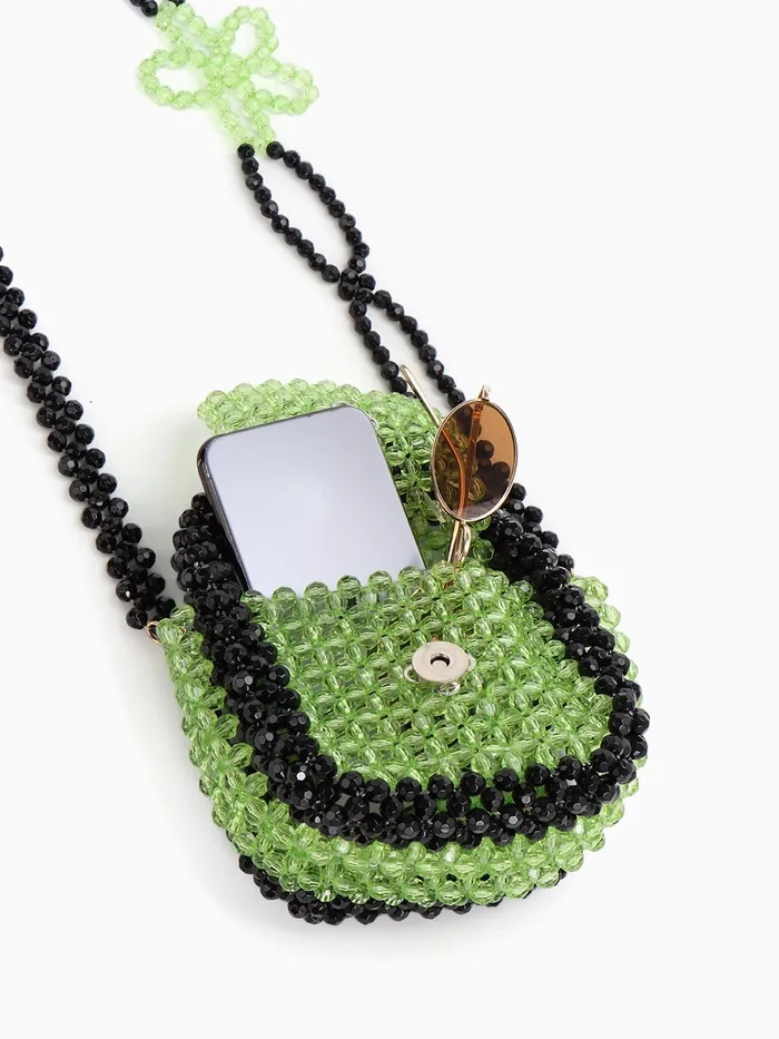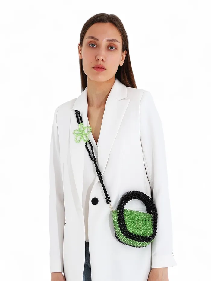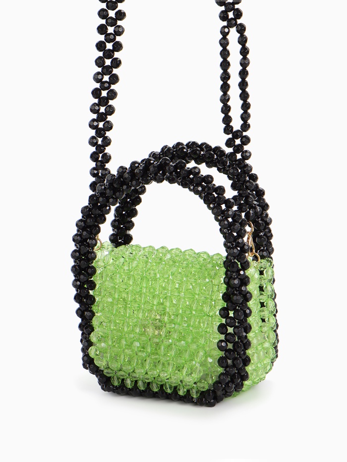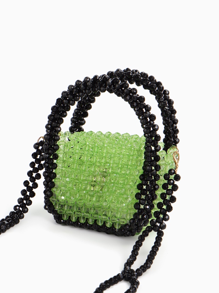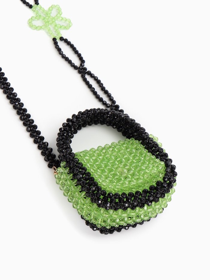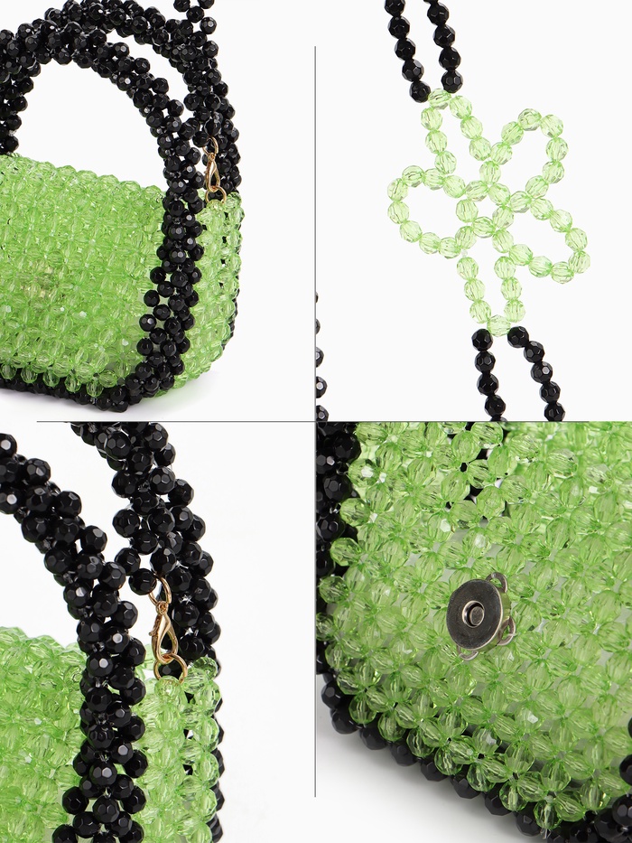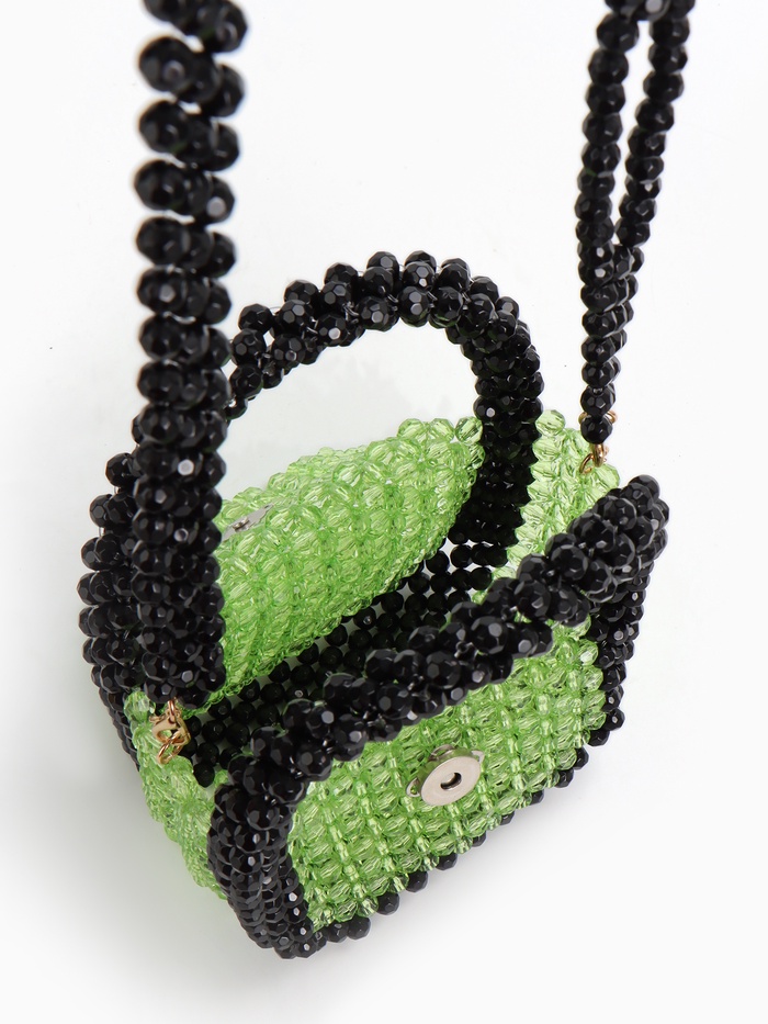 Сумка-клатч из бусин, на кнопке, чёрная/зелёная — Характеристики