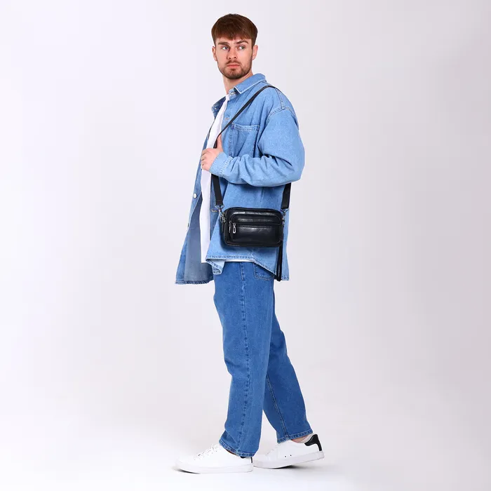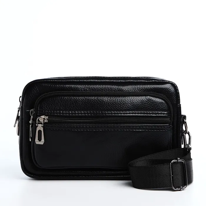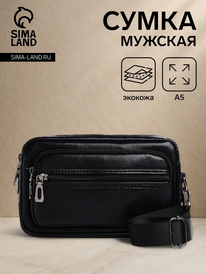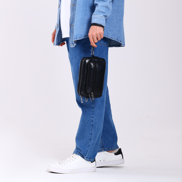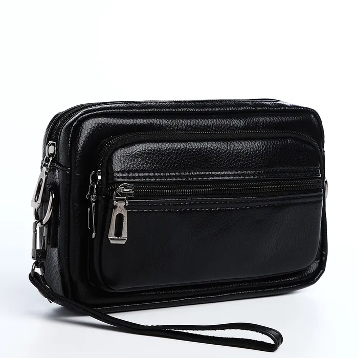 Сумка-клатч мужская на молнии, 2 наружных кармана 23×5×14 см, чёрная — Характеристики