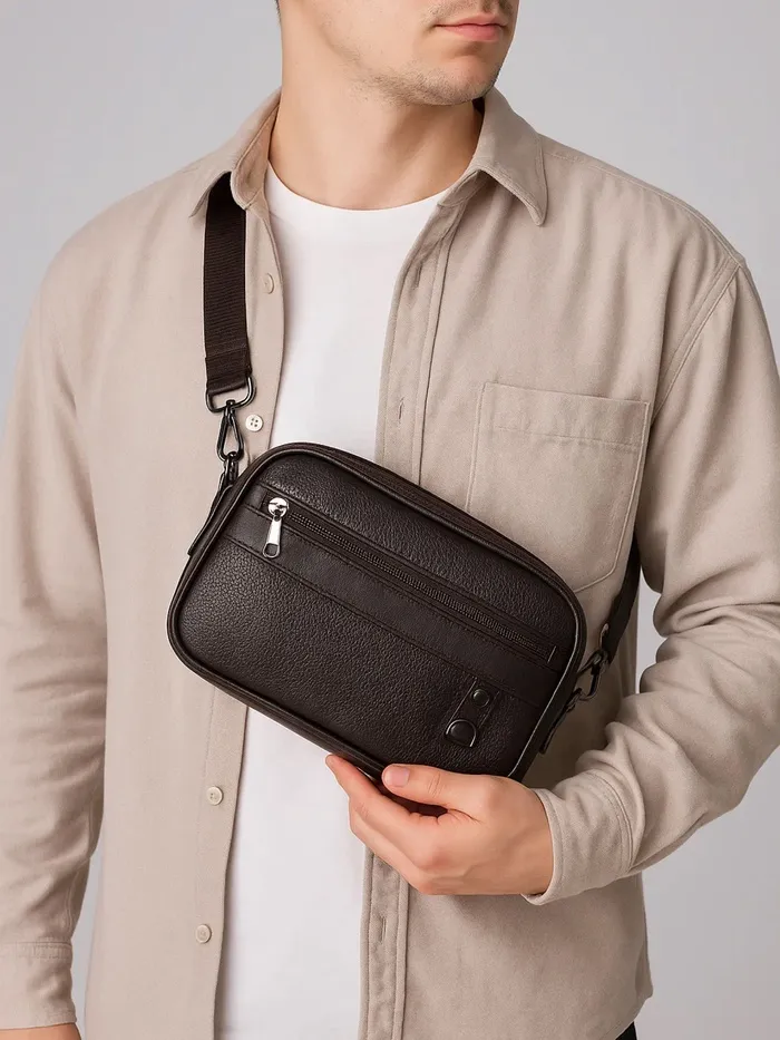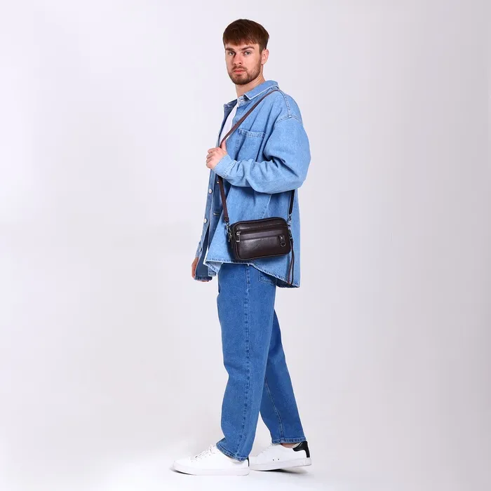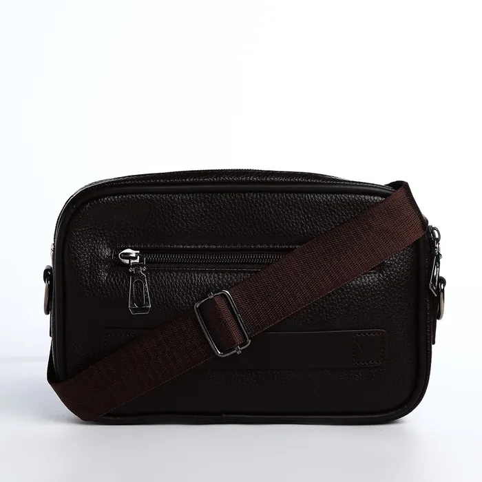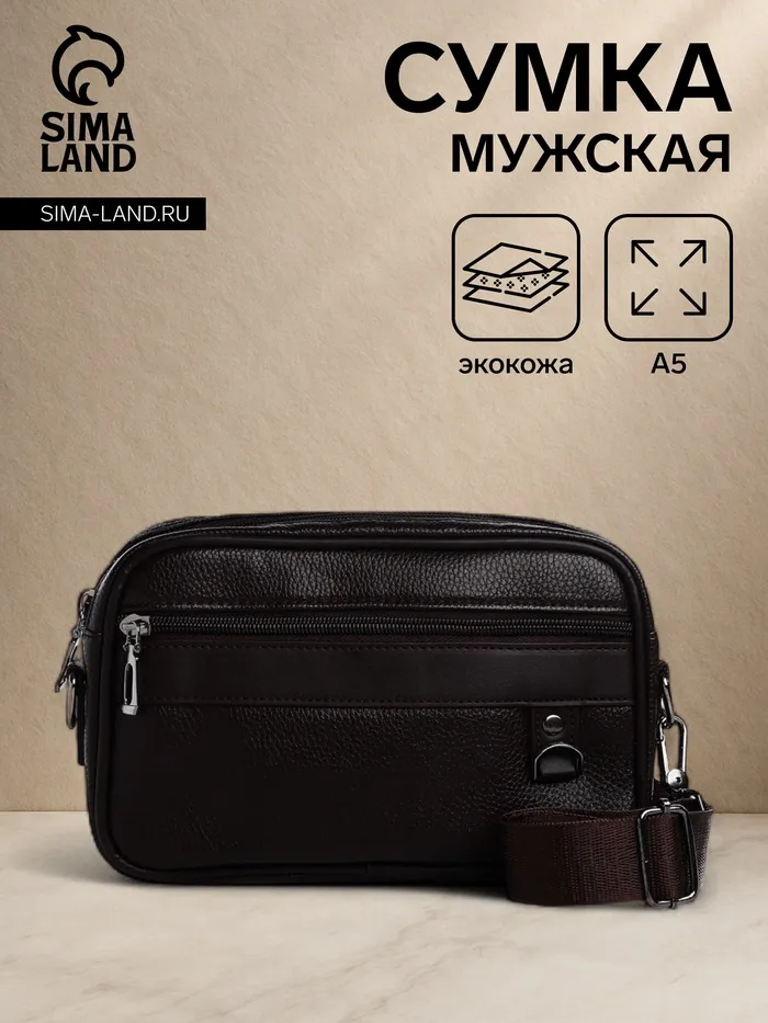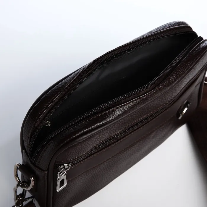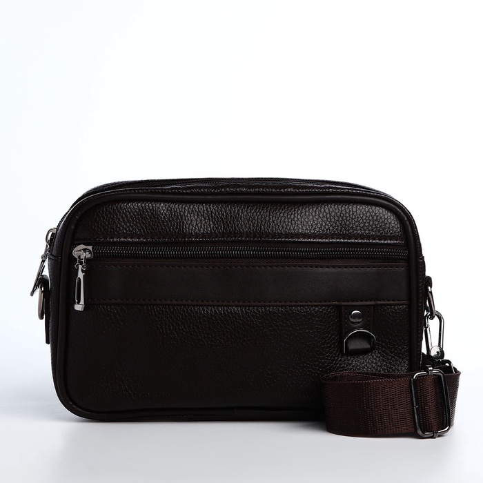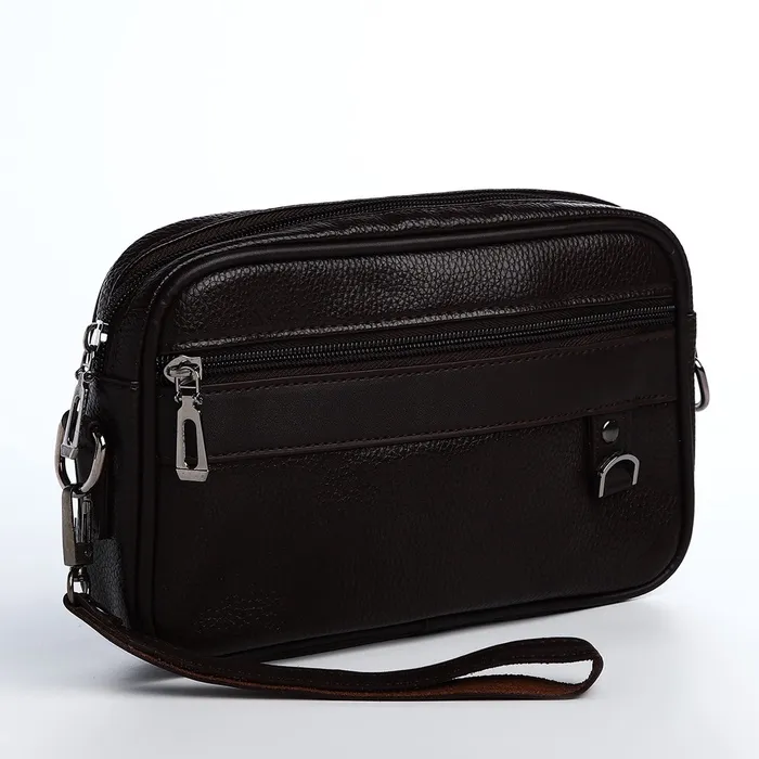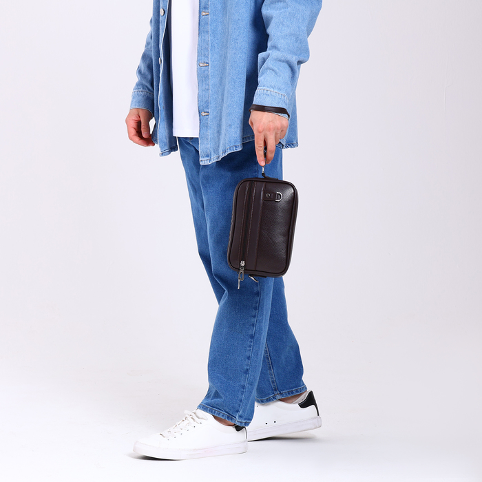 Сумка-клатч мужская на молнии, 2 наружных кармана, 23×5×15 см, тёмно-коричневая — Характеристики