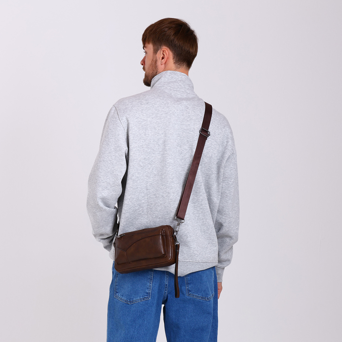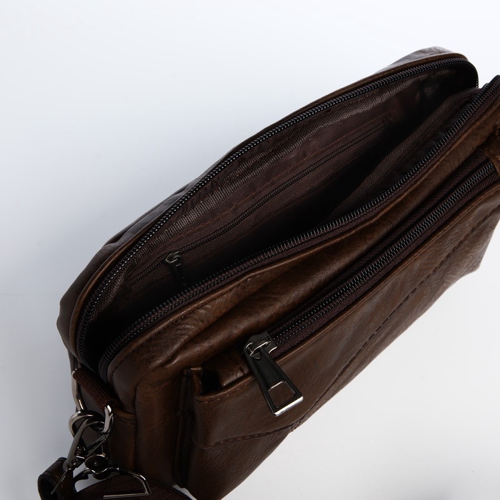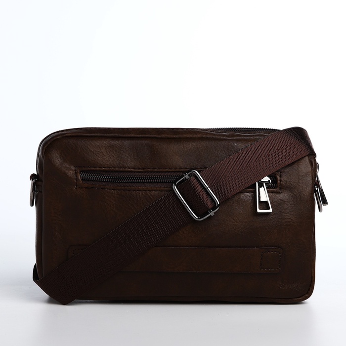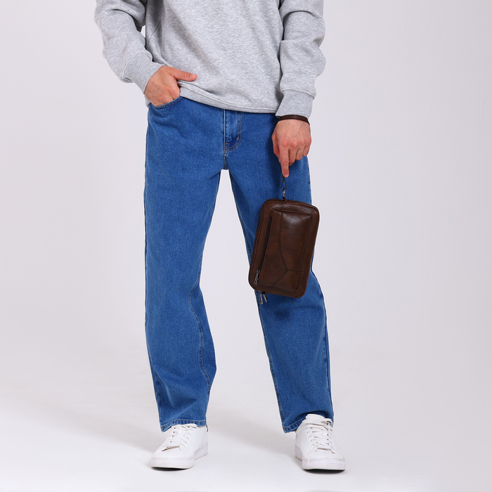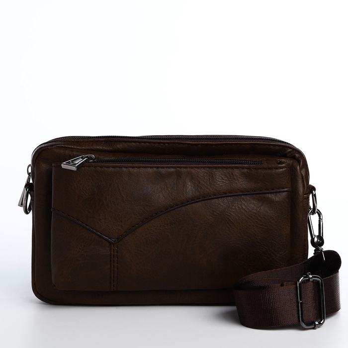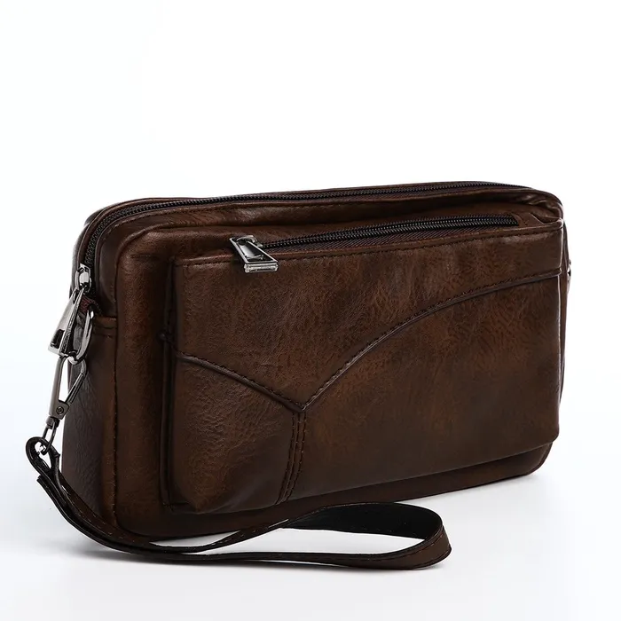 Сумка-клатч мужская на молнии, 2 наружных кармана, коричневая — Характеристики