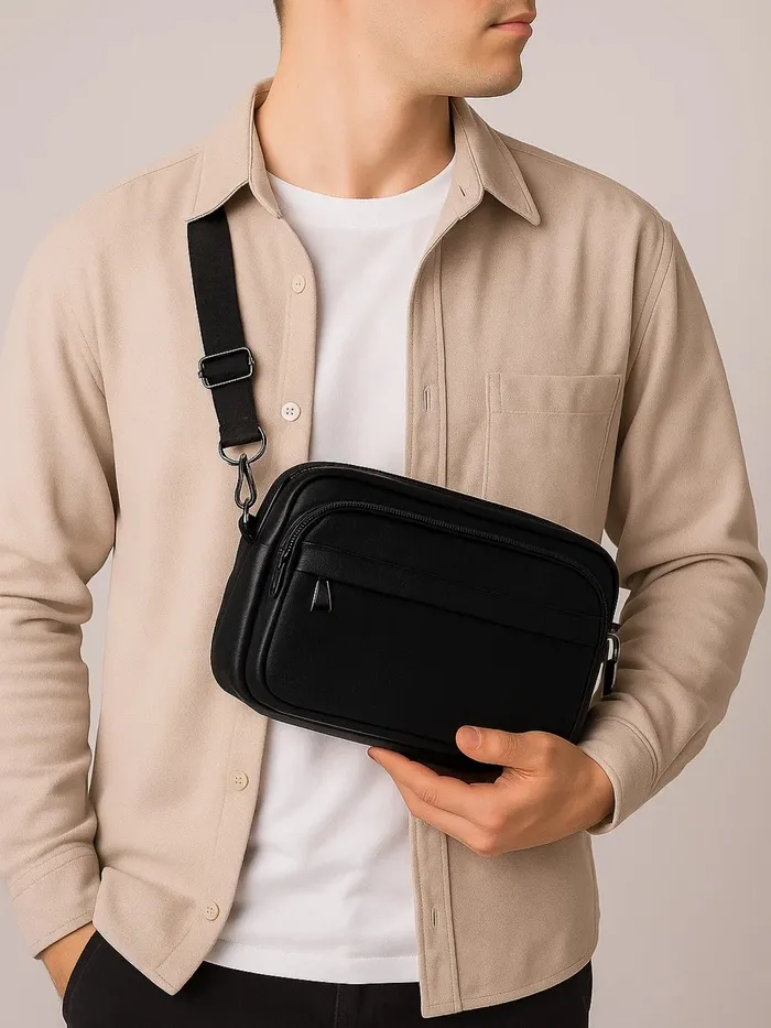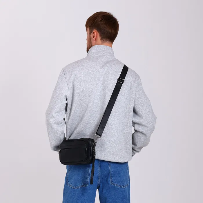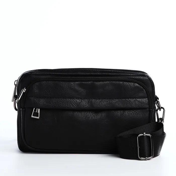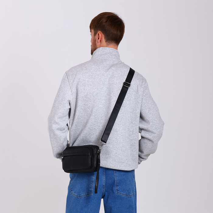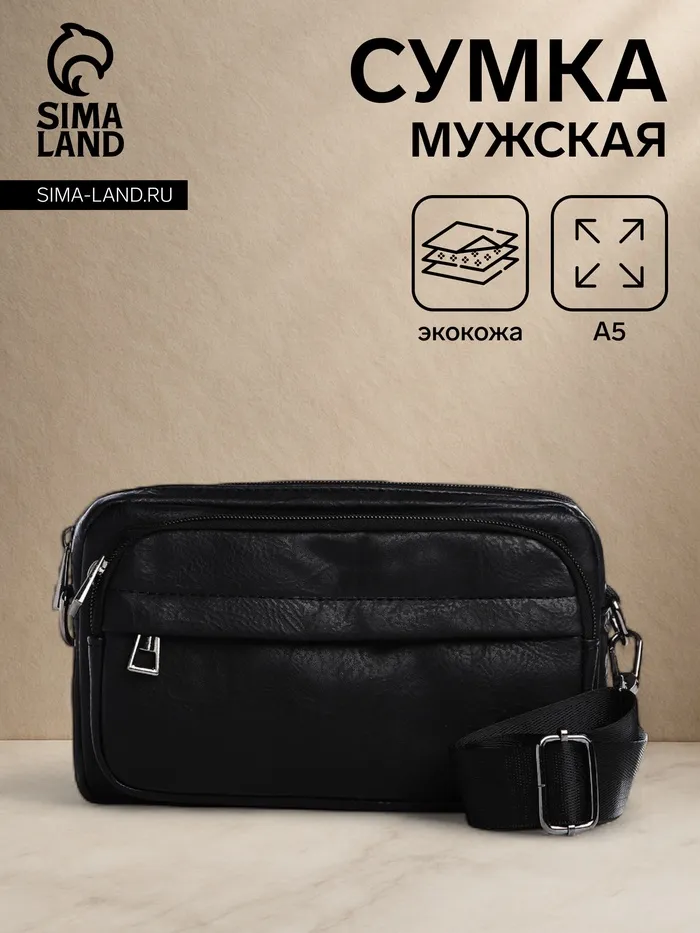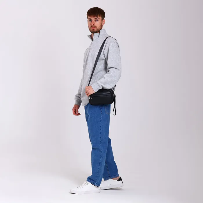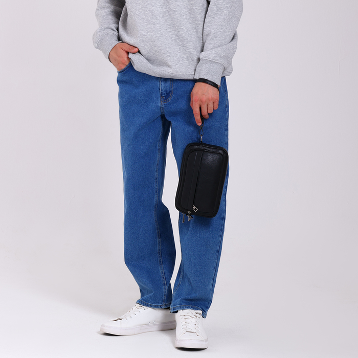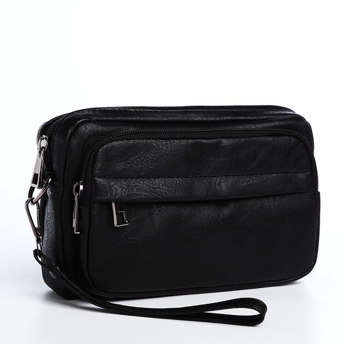 Сумка-клатч мужская на молнии, 3 наружных кармана, чёрная — Характеристики