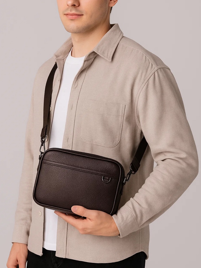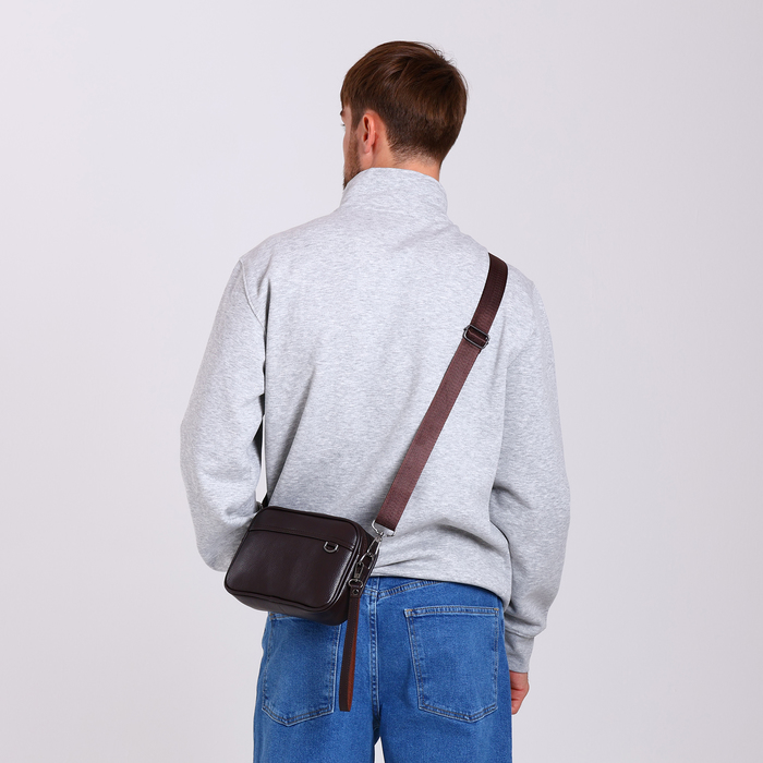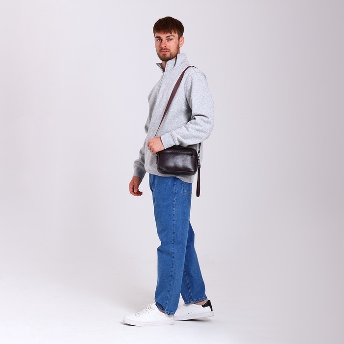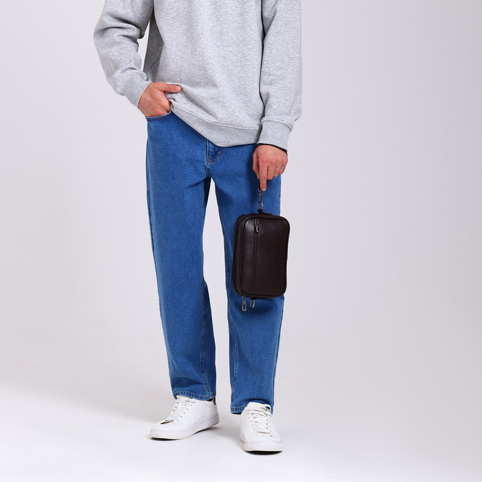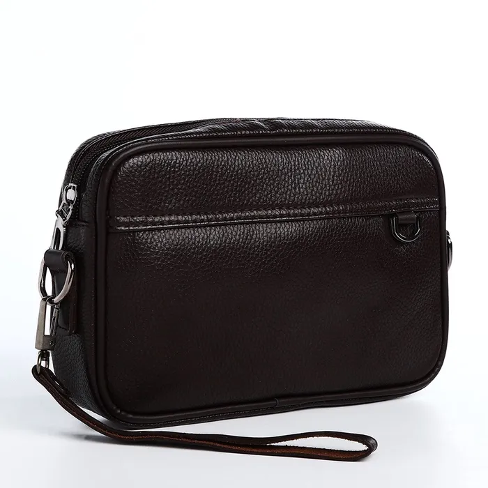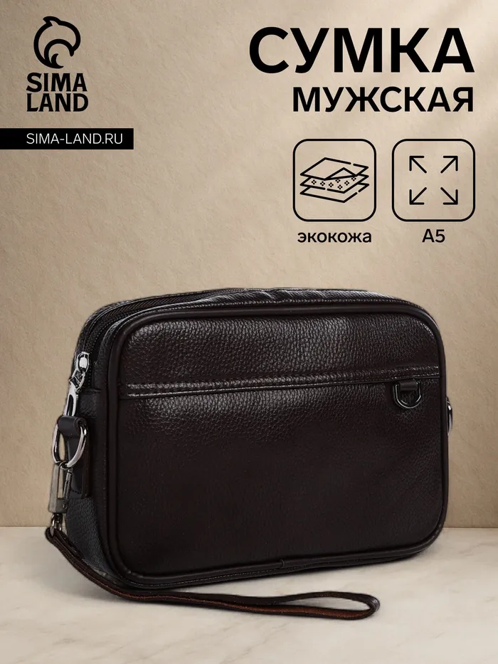 Сумка-клатч мужская на молнии, наружный карман, коричневая — Характеристики