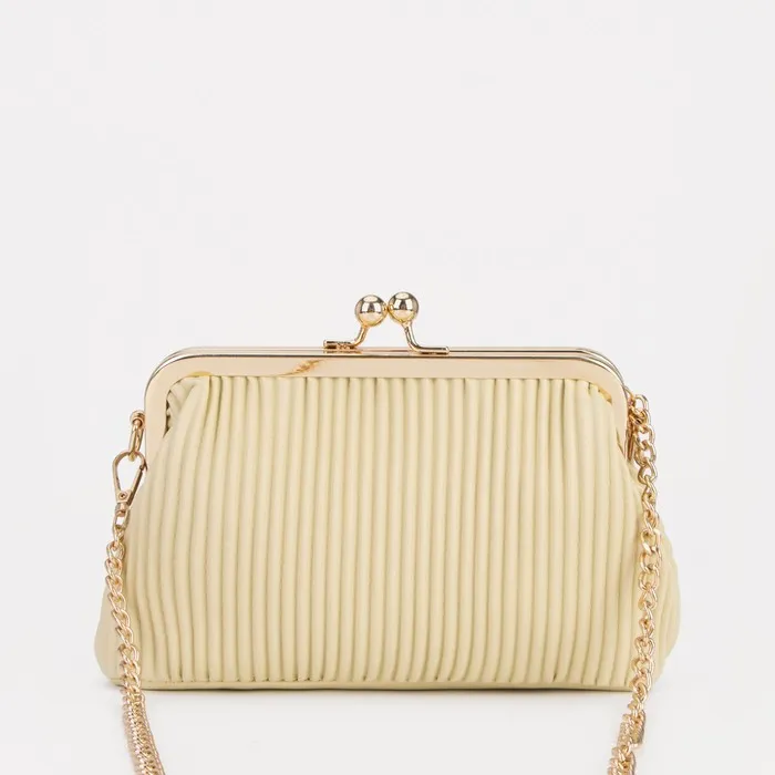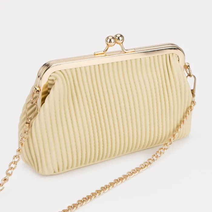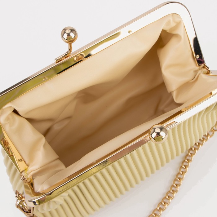 Сумка-клатч на фермуаре, длинная цепь, цвет бежевый — Характеристики