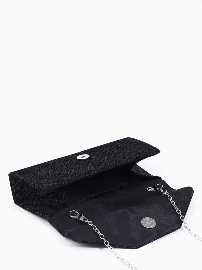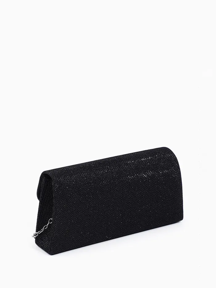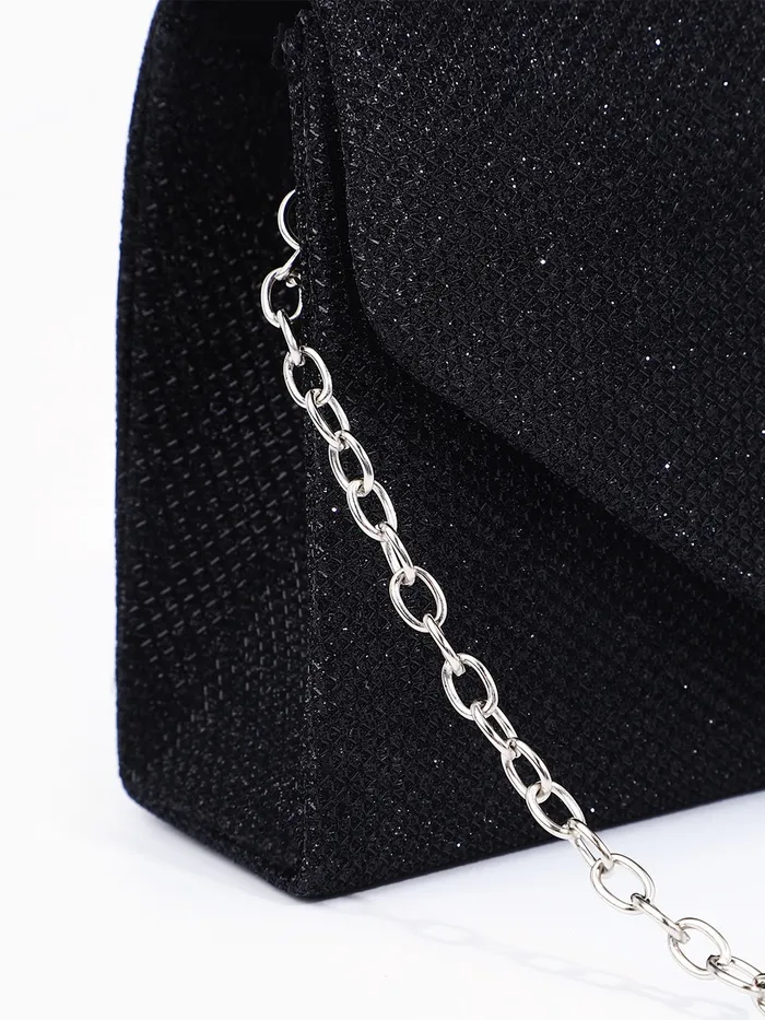 Стиль и элегантность в каждом элементе! Стильный вечерний клатч на цепочке в благородном черном исполнении — это не только практичный аксессуар, но и эффектное дополнение к вашему образу. Этот миниатюрный помощник станет вашим надежным спутником на любом торжественном событии.