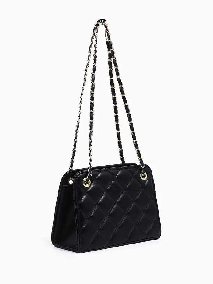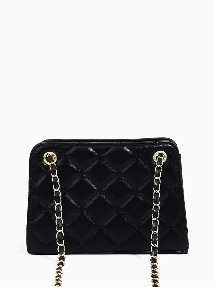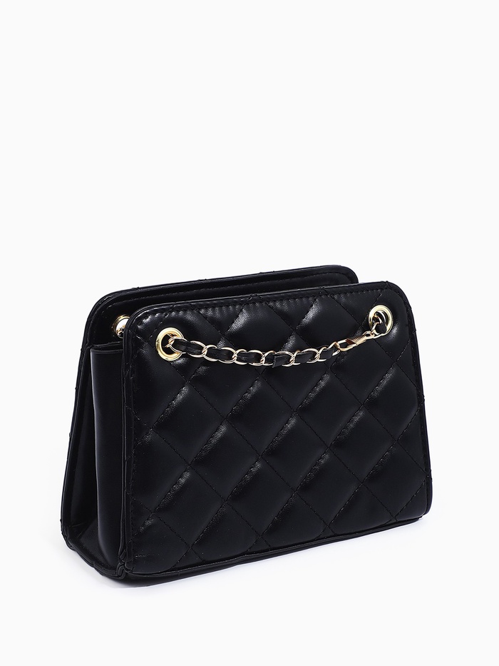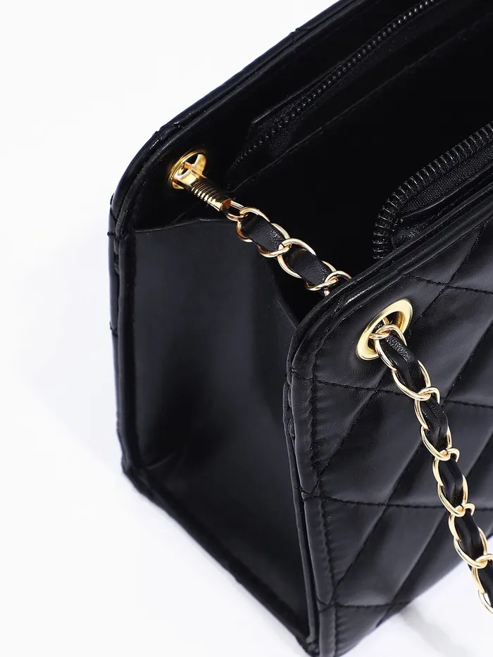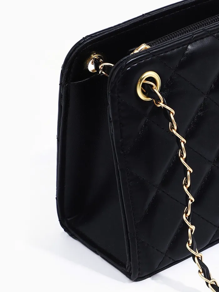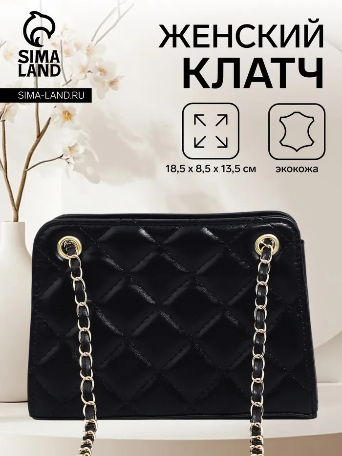 Сумка-клатч на молнии, на длинной цепочке, со стёжкой, чёрная — Характеристики
