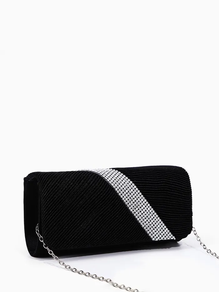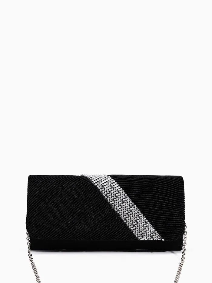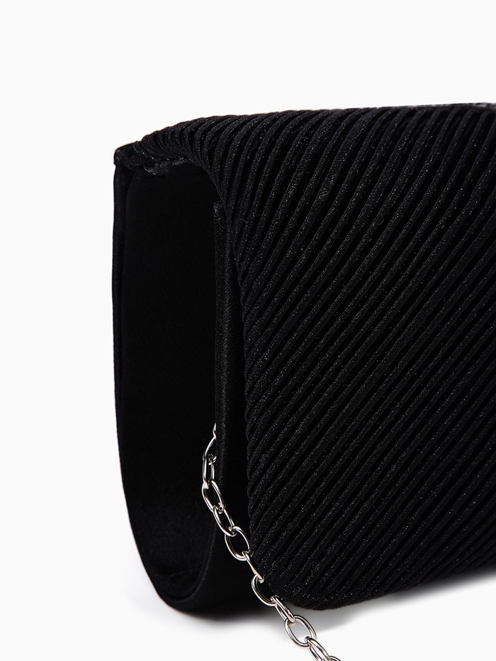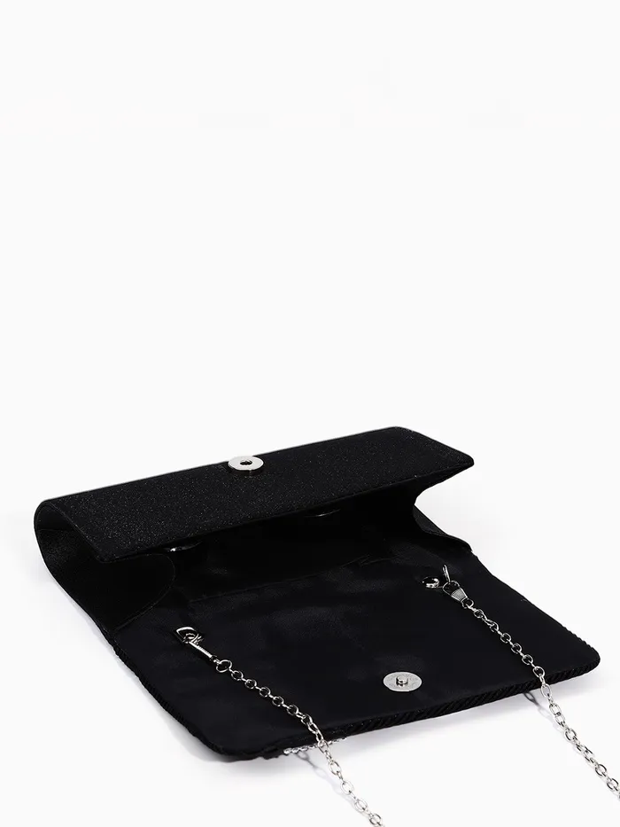 Сумка-клатч вечерняя на магните, на длинной цепочке, с серебристой вставкой, чёрная — Характеристики