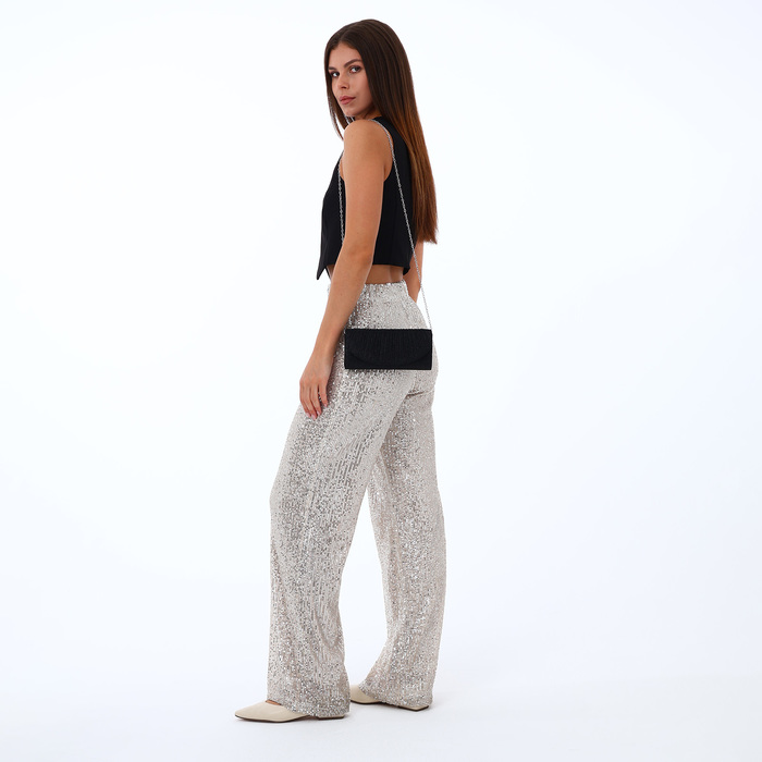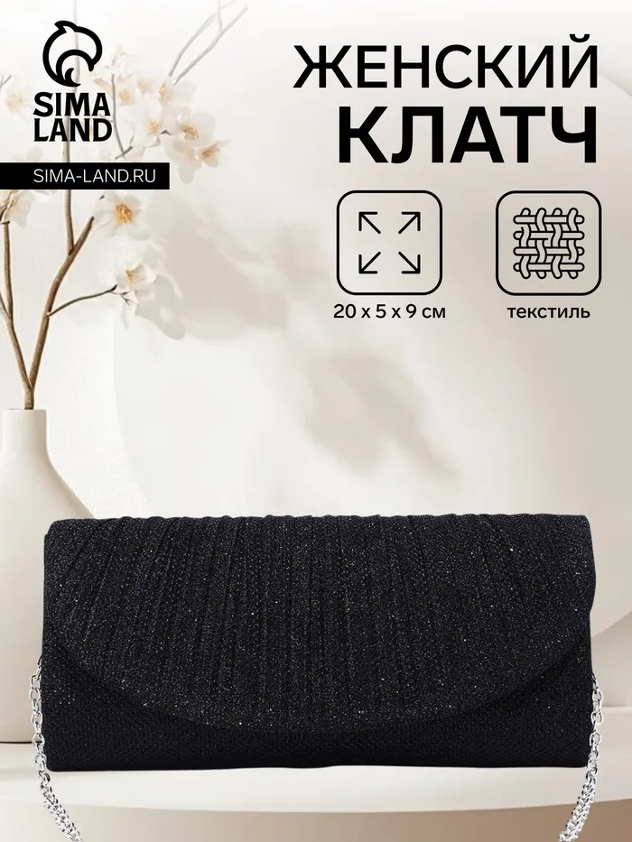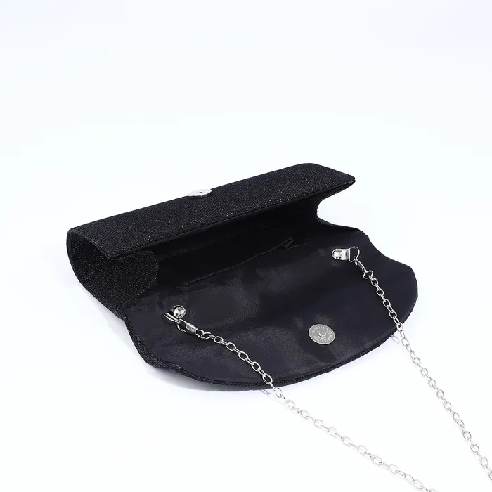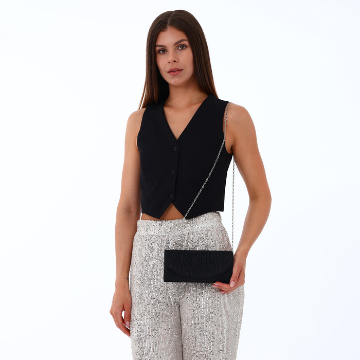 Сумка-клатч вечерняя на магните, на серебристой цепочке, блестящая, чёрная — Характеристики