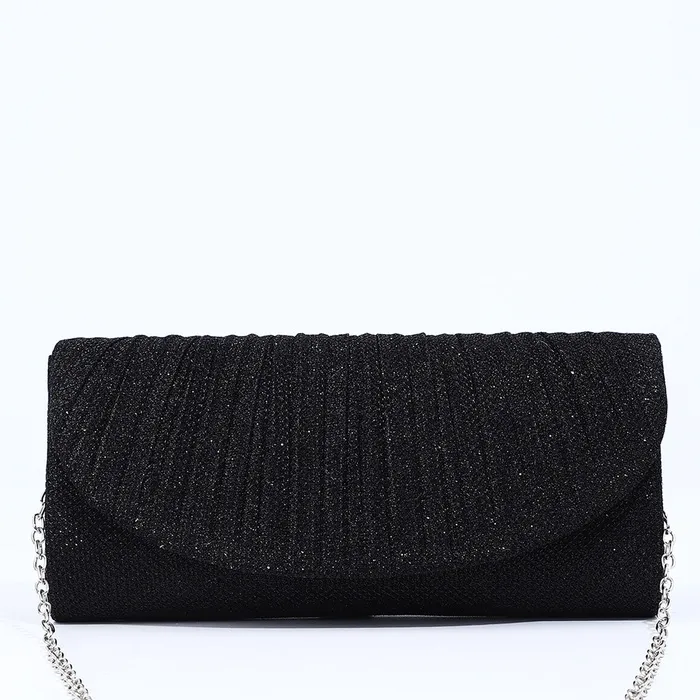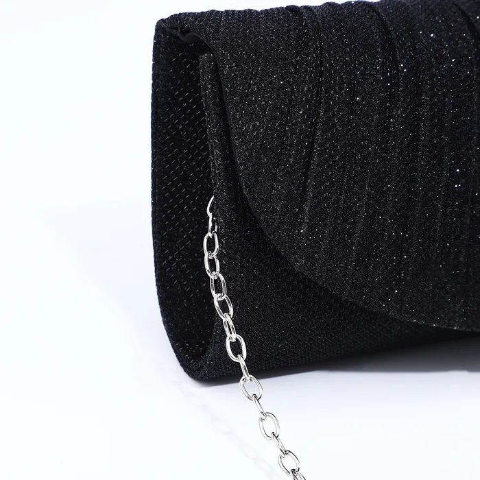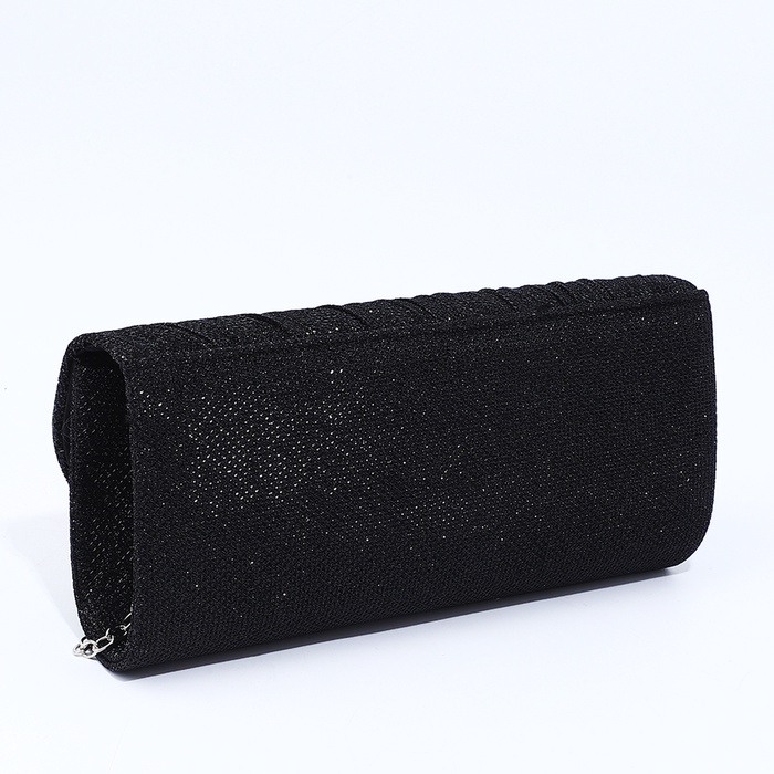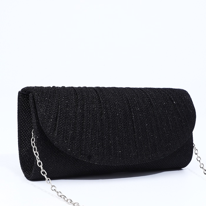 Сумка-клатч вечерняя на магните, на серебристой цепочке, блестящая, чёрная
