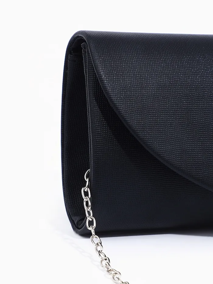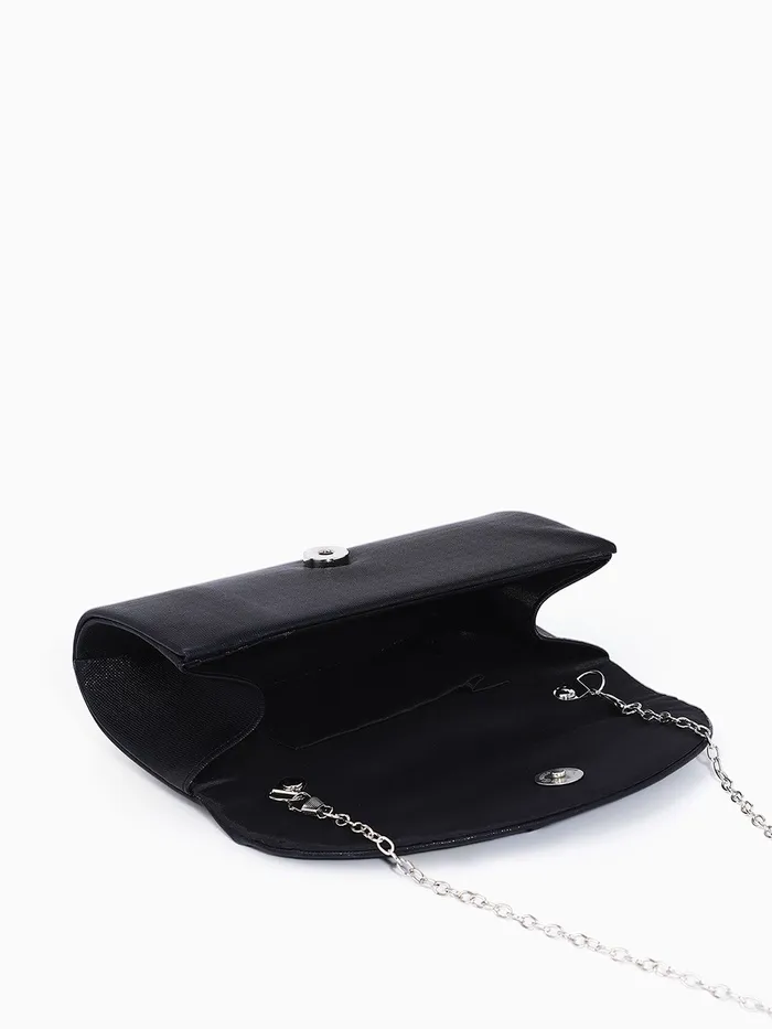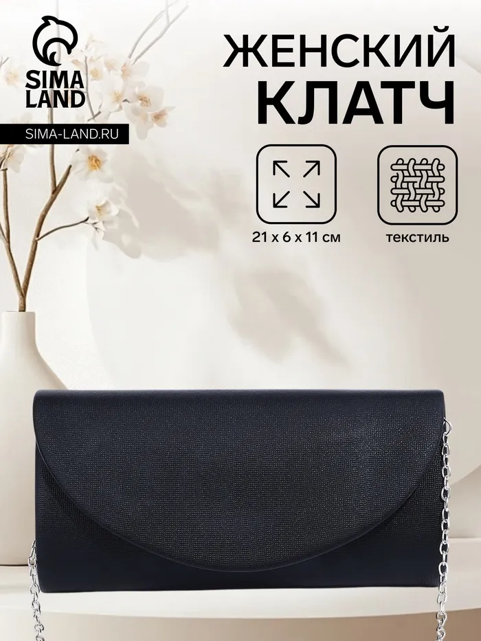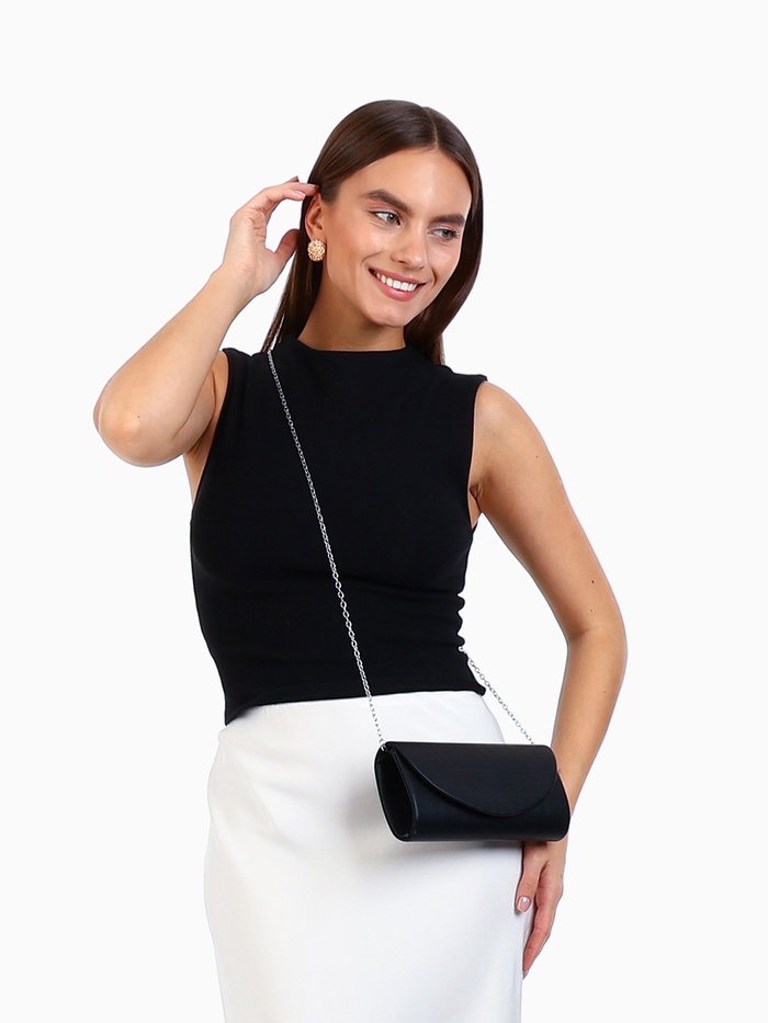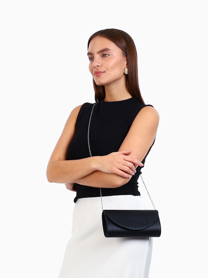 Сумка-клатч вечерняя на магните, на серебристой цепочке, чёрная — Характеристики