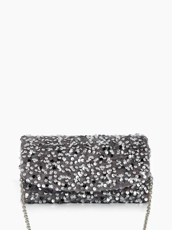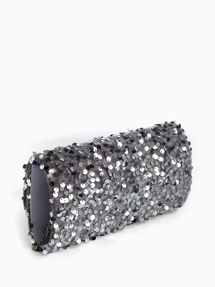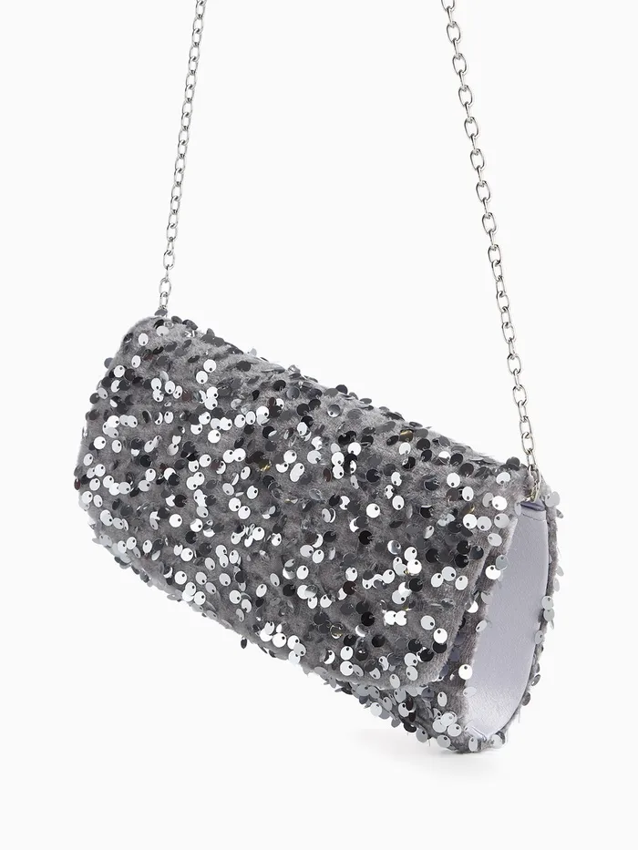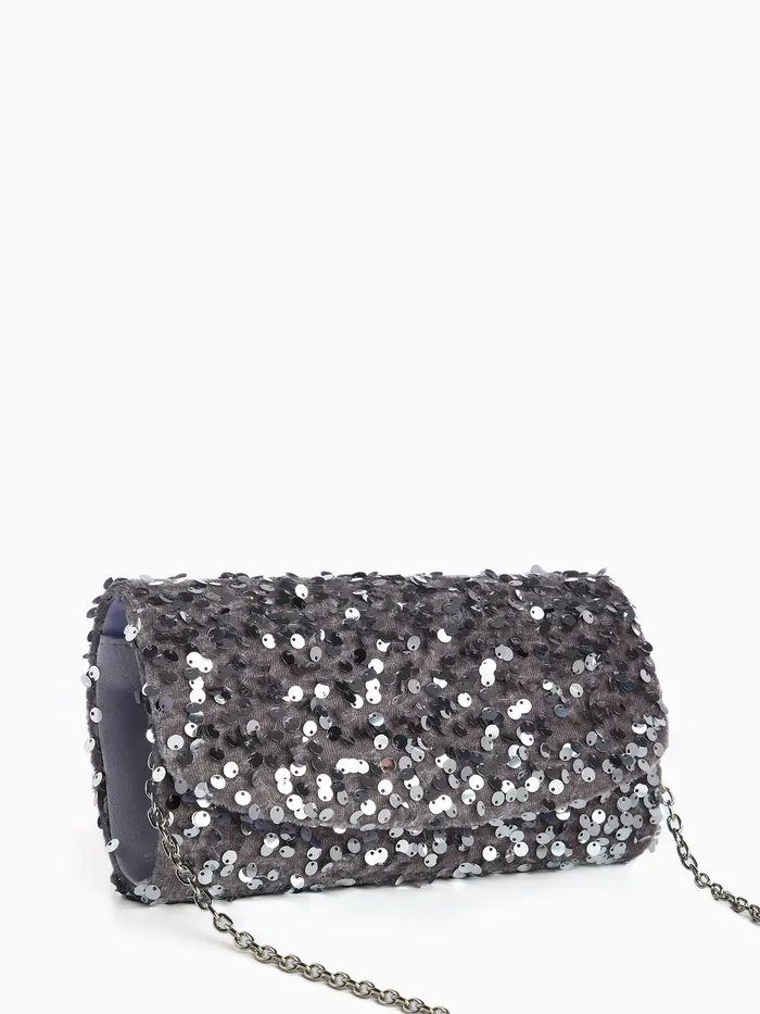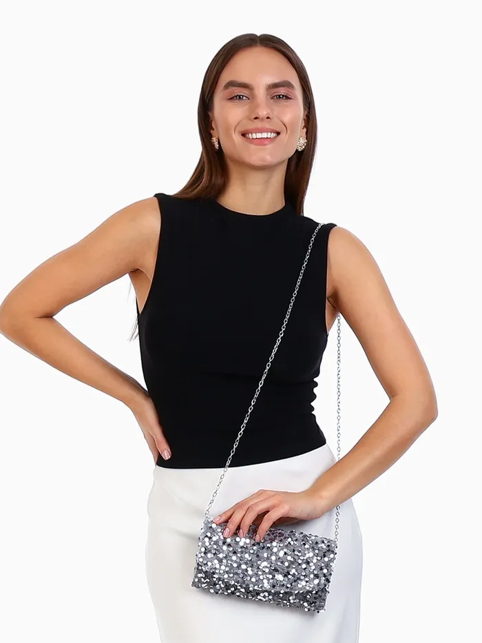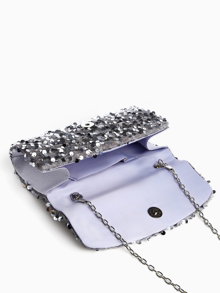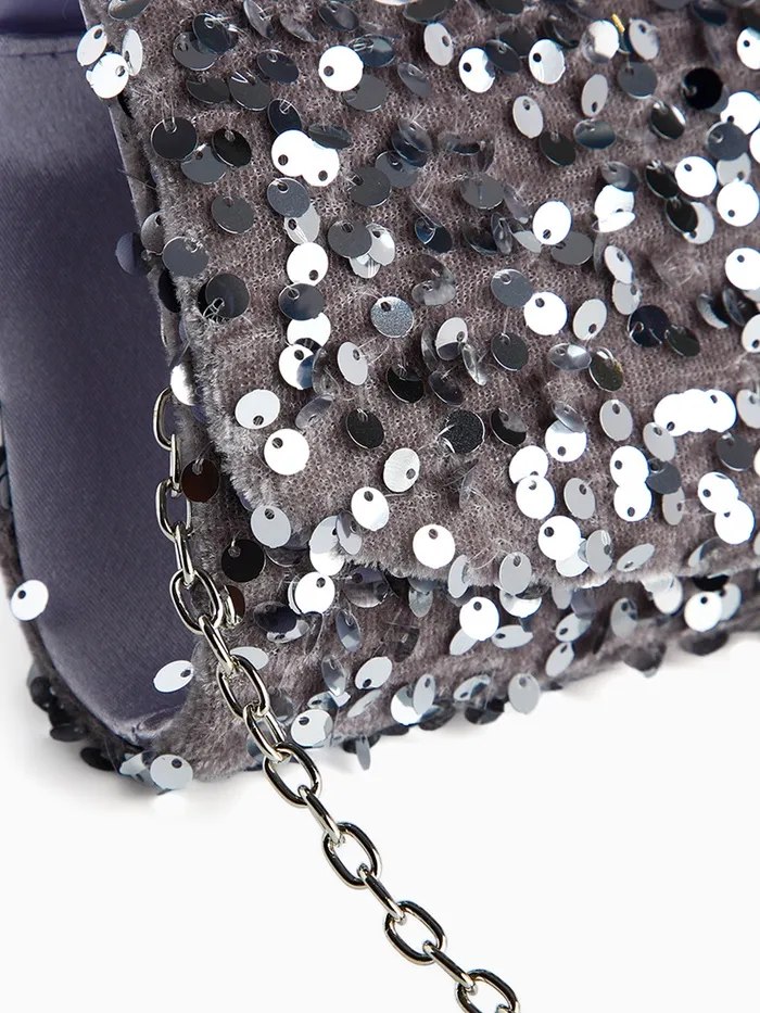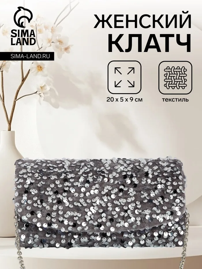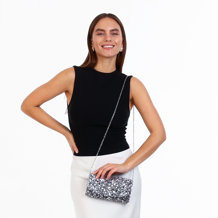 Сумка-клатч вечерняя на магните, на цепочке, с пайетками, серебристая — Характеристики