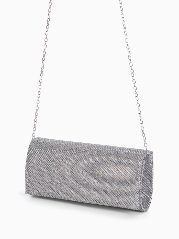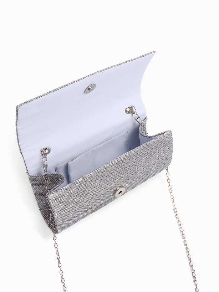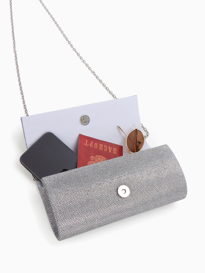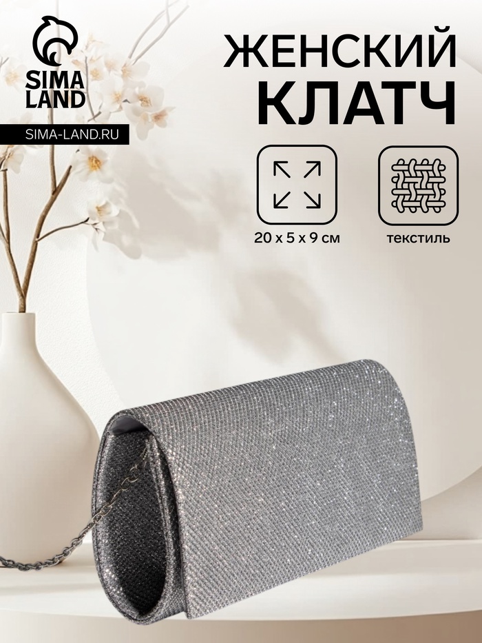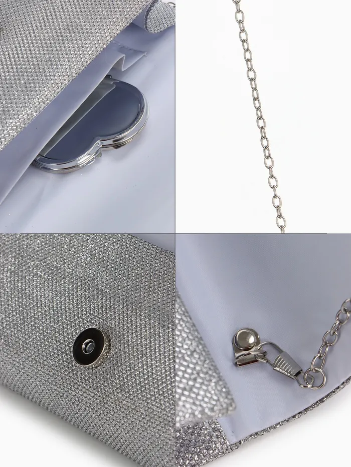 Сумка-клатч женская на магните, на серебристой цепочке, блестящая, светло-серебристая — Характеристики