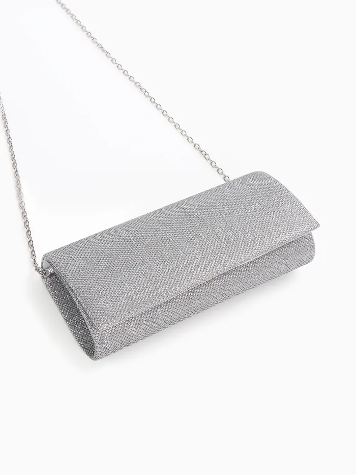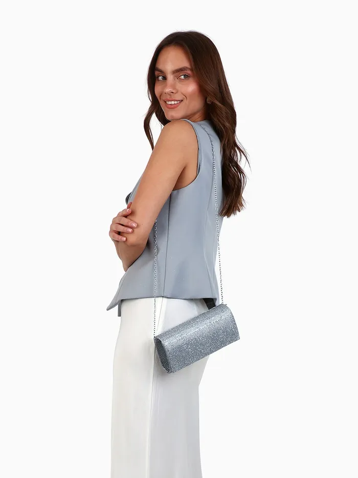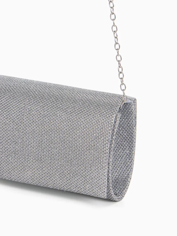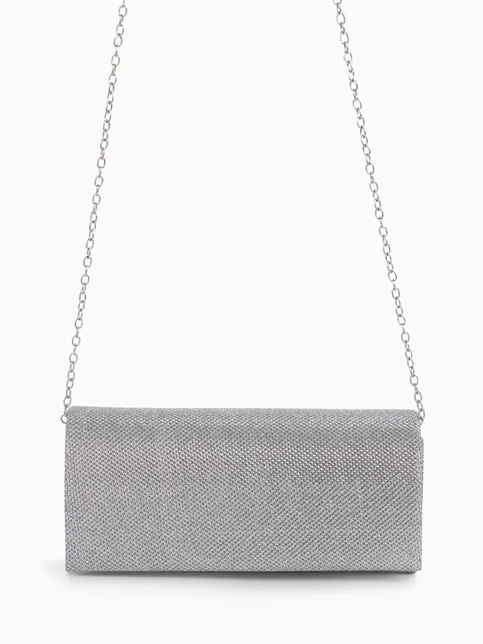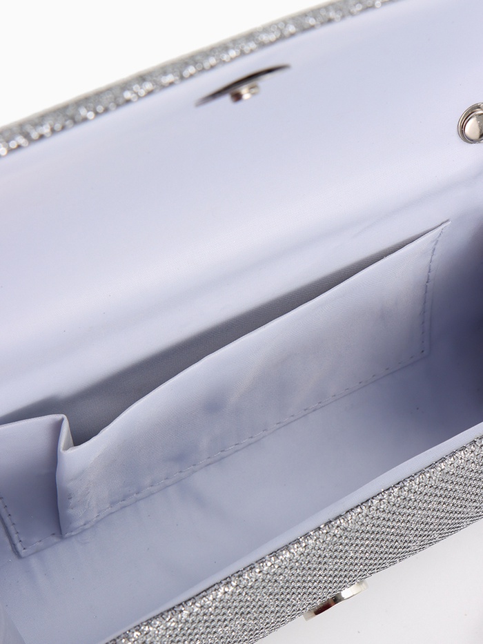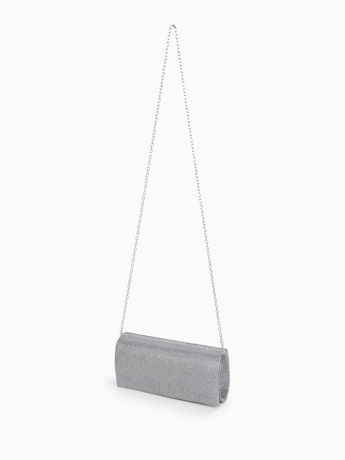 Сумка-клатч женская на магните, на серебристой цепочке, блестящая, светло-серебристая — Характеристики