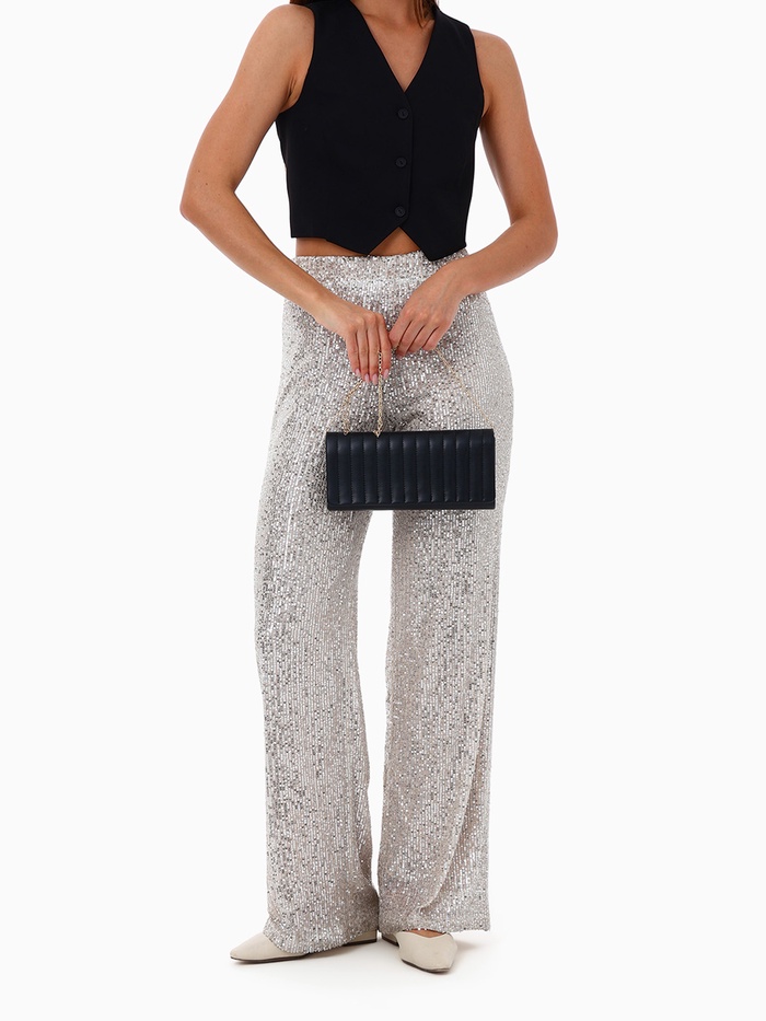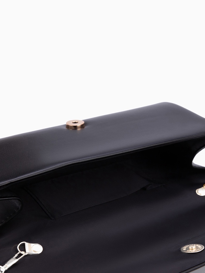 - Изысканный стиль с золотыми акцентами: Элегантные детали из золота подчеркивают изысканность черной искусственной кожи, добавляя аксессуару особого шарма. Однотонная поверхность и стежка делают сумку универсальным украшением для любого особого случая.