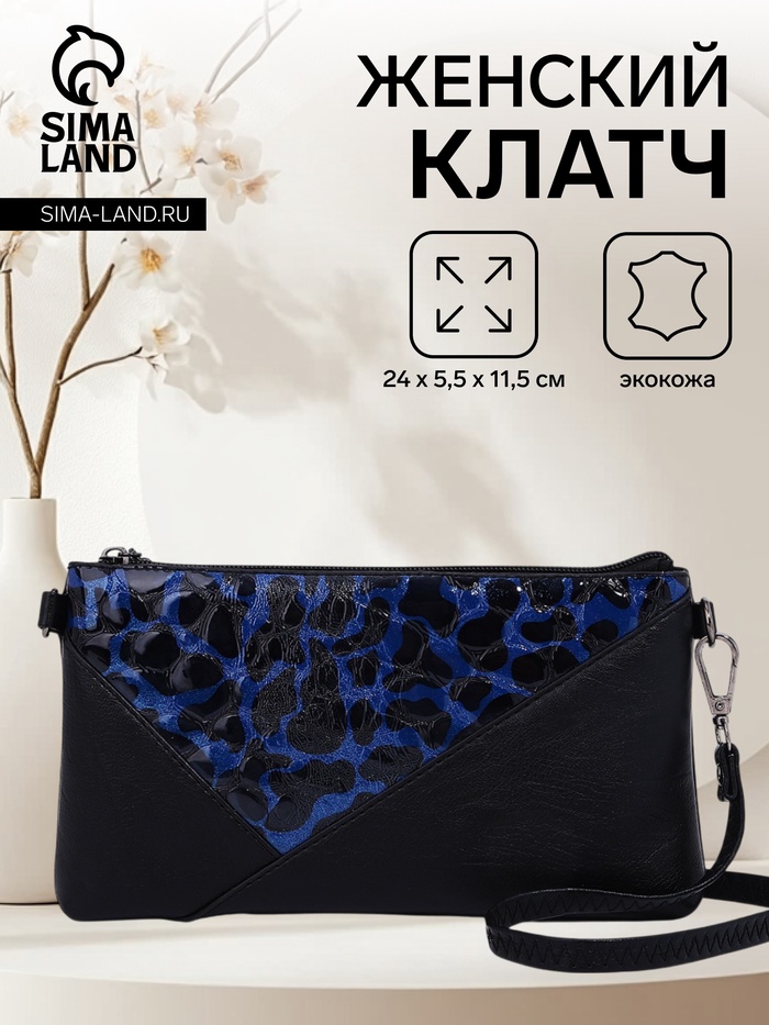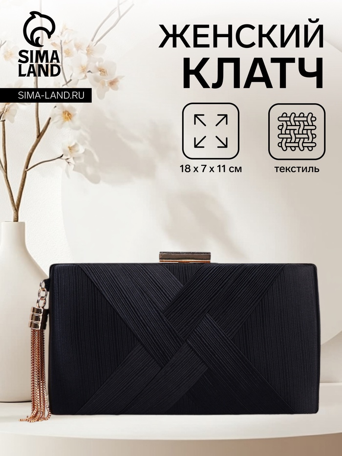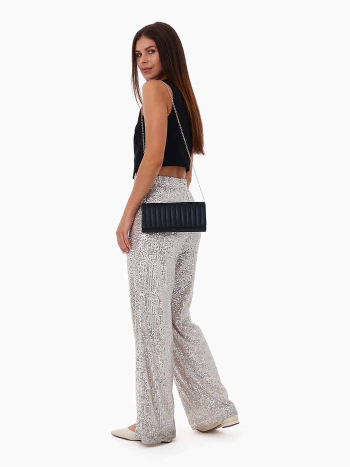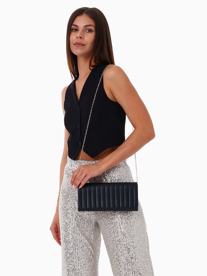 Сумка-клатч женская на магните, на серебристой цепочке, чёрная — Характеристики