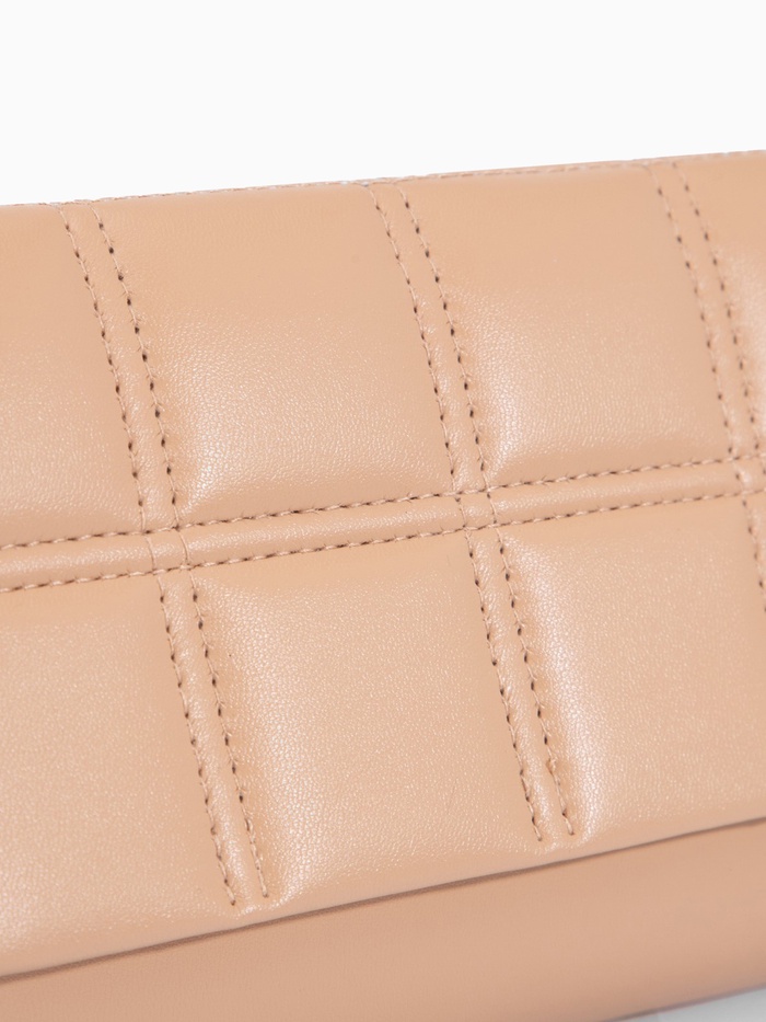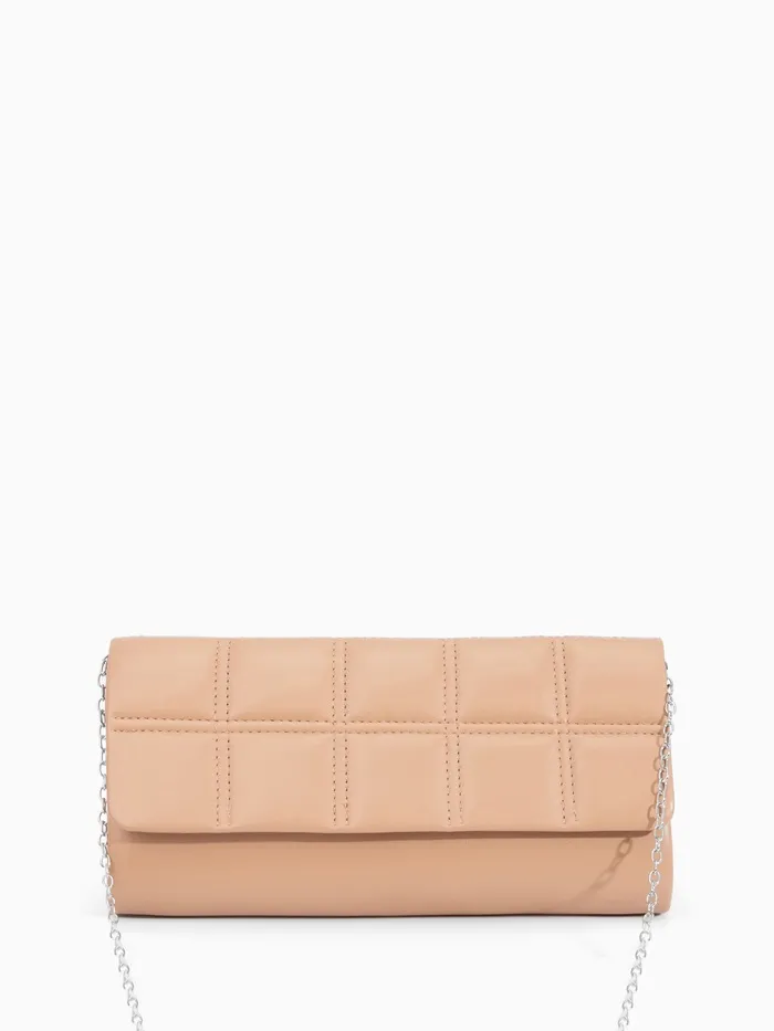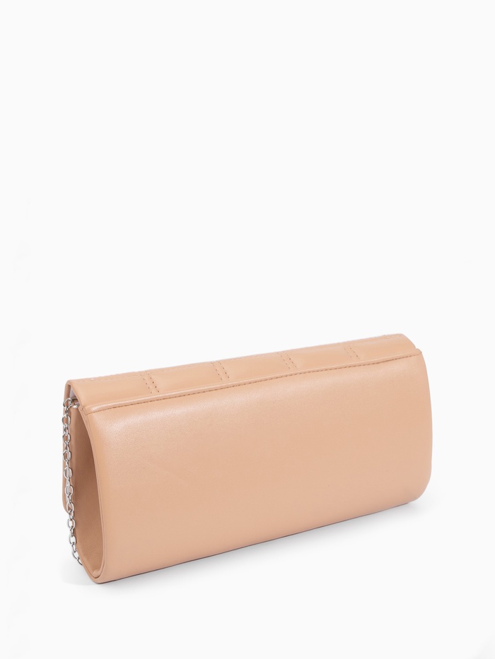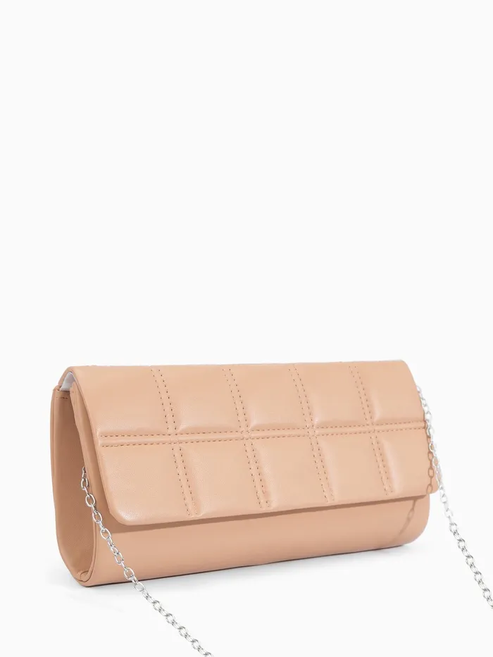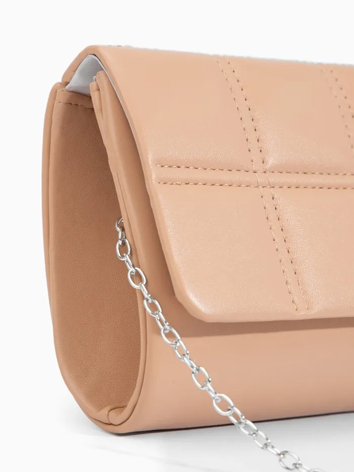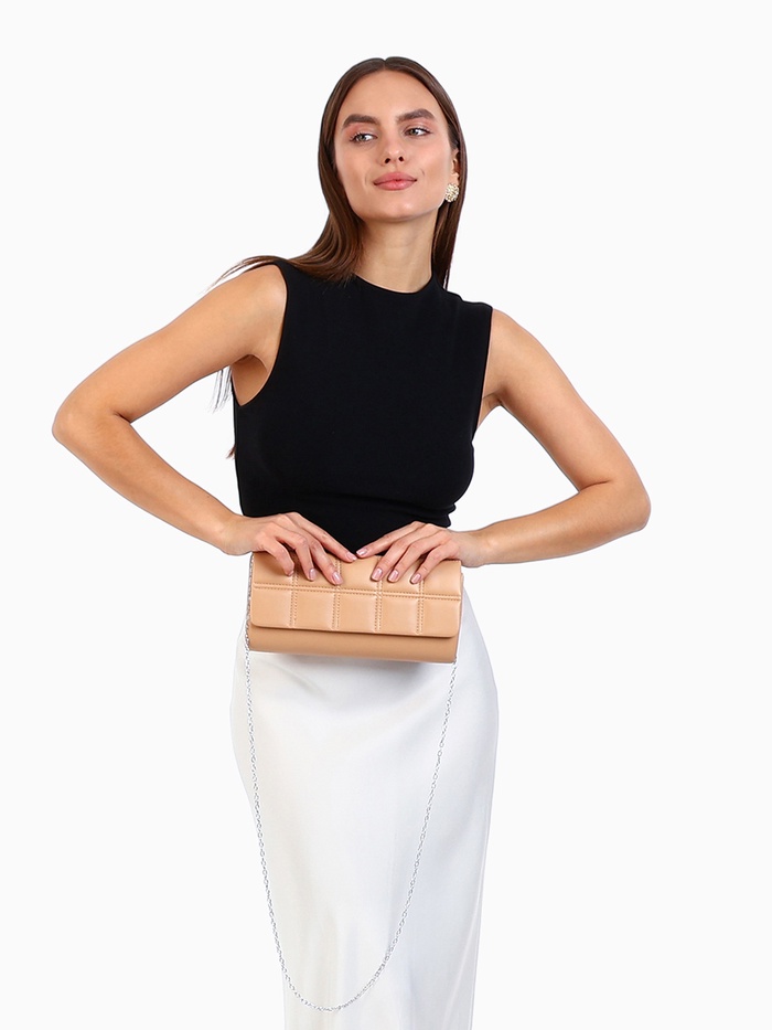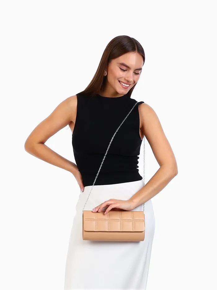 Сумка-клатч женская на магните, с серебристой цепочкой, однотонная, со стёжкой, бежевая — Характеристики
