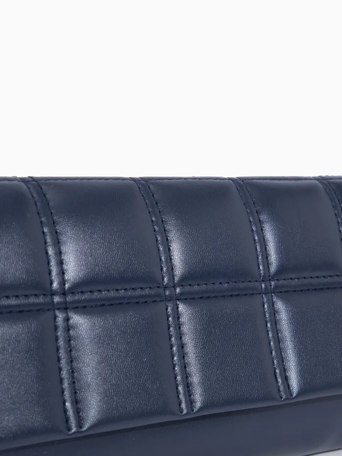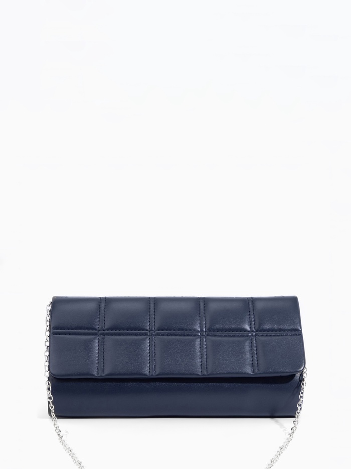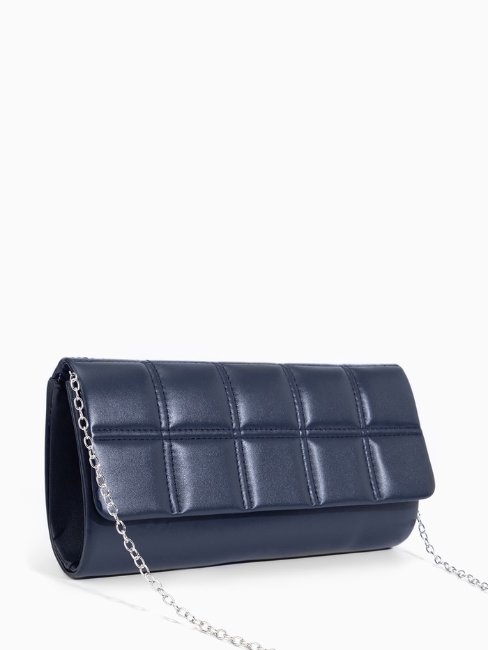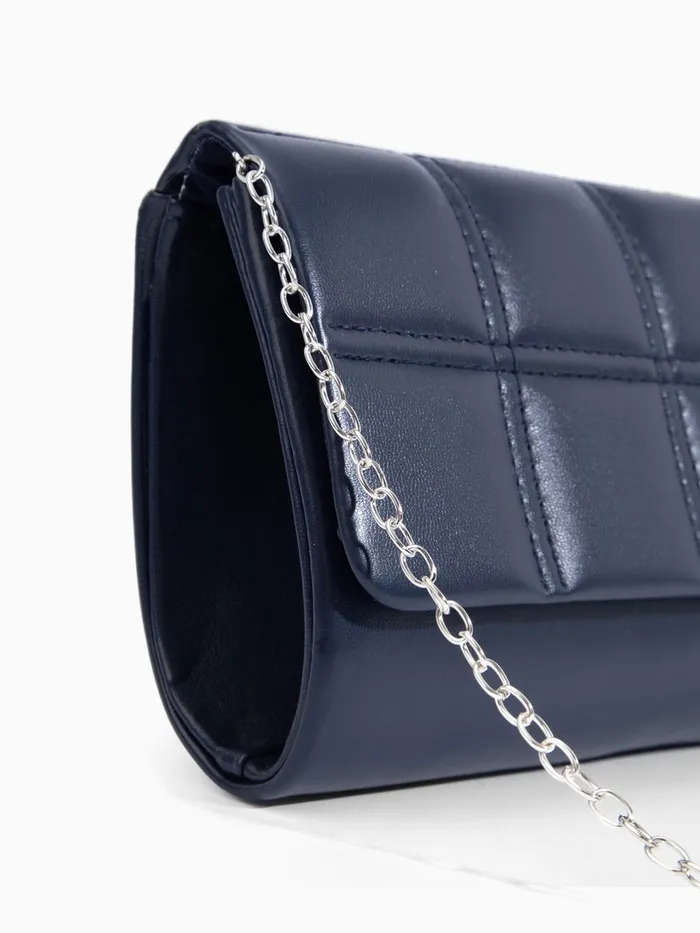Сумка-клатч женская на магните, с серебристой цепочкой, однотонная, со стёжкой, синяя — Характеристики