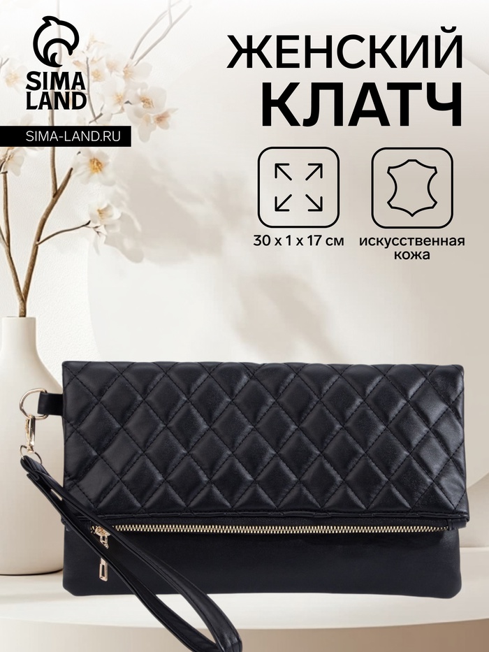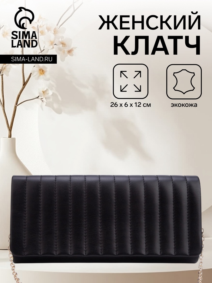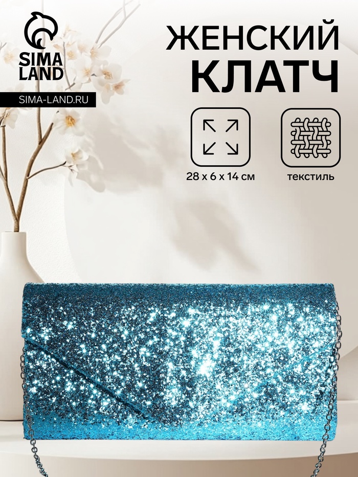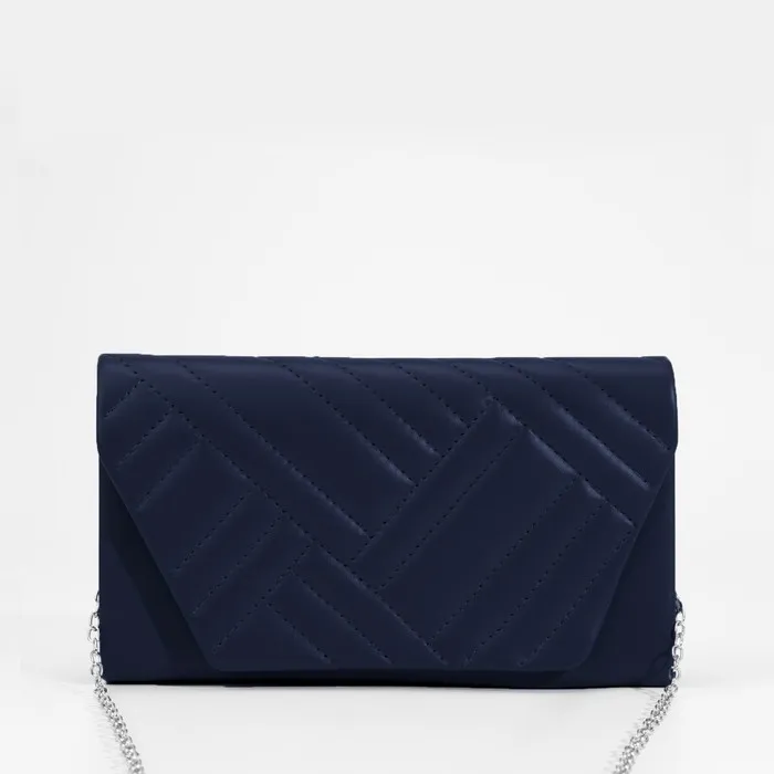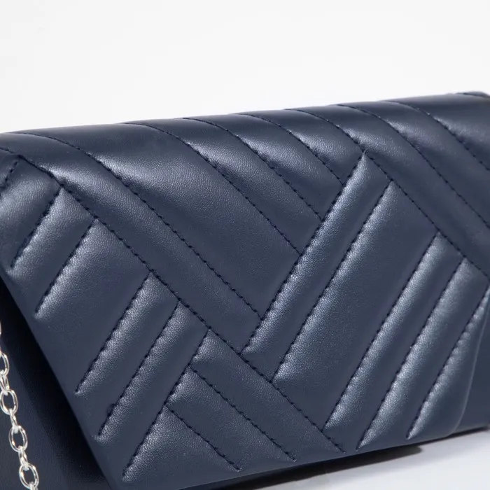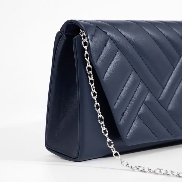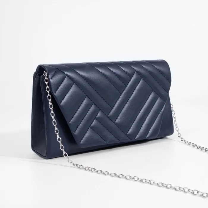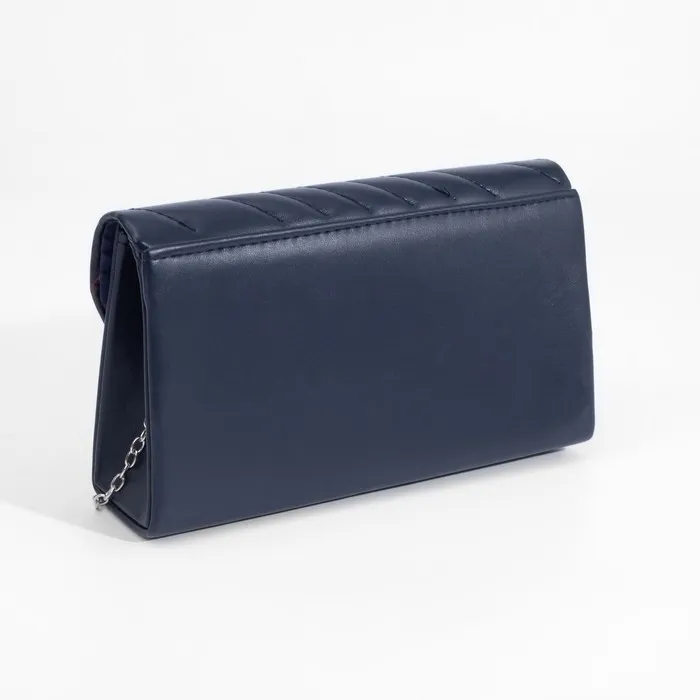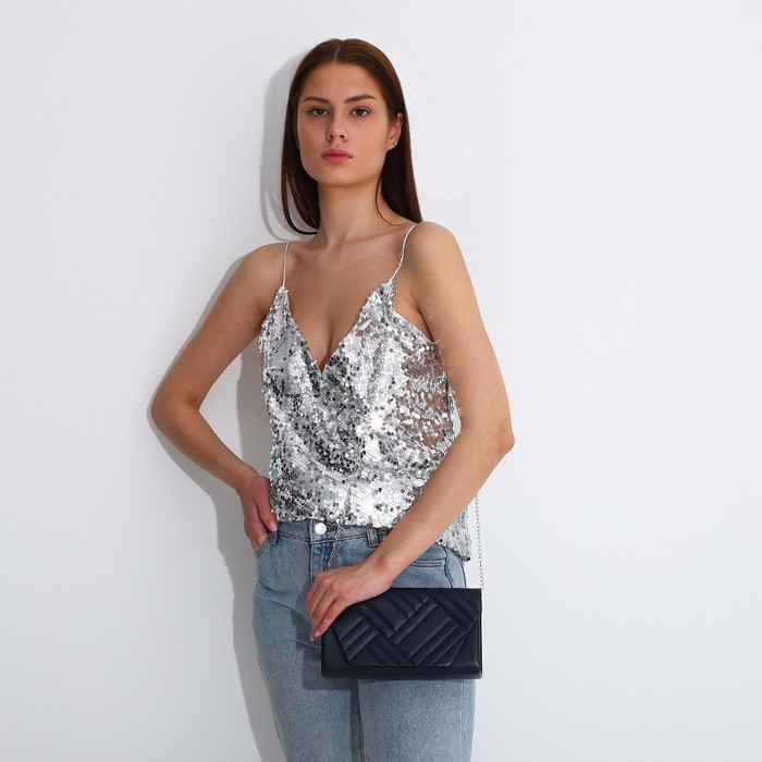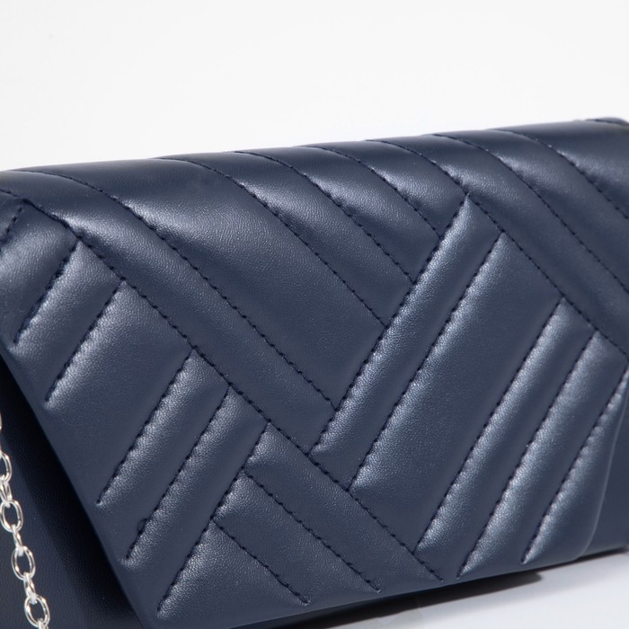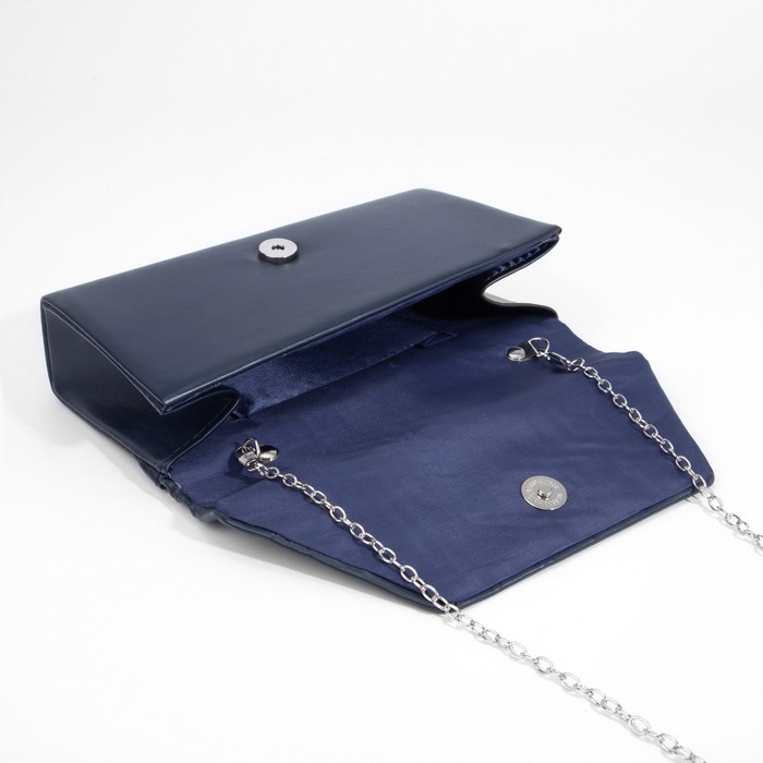 Сумка-клатч женская на магните, с серебристой цепочкой, однотонная, со стёжкой, тёмно-синяя — Характеристики