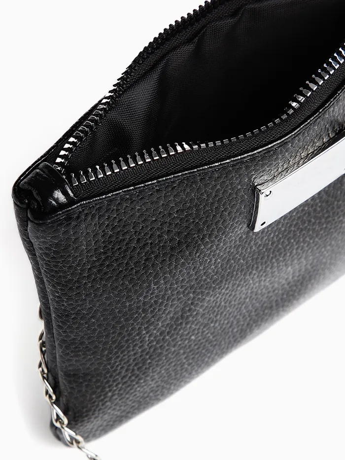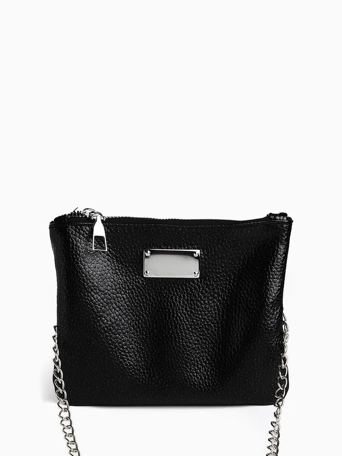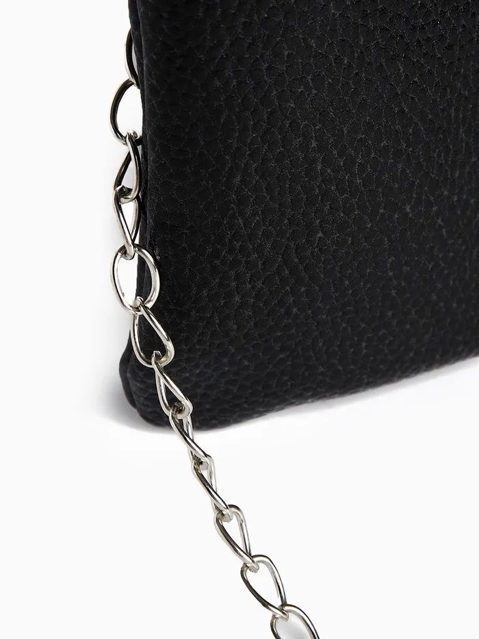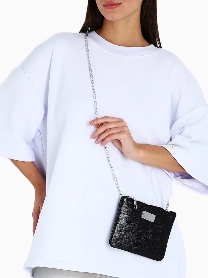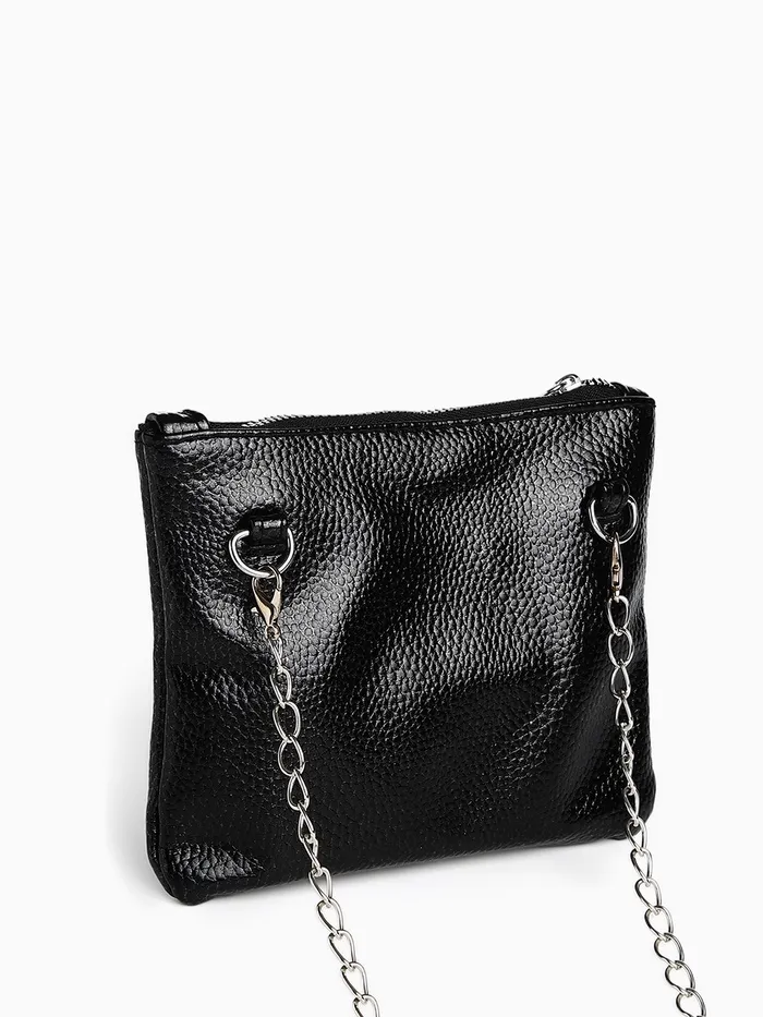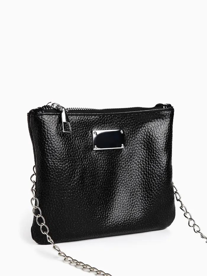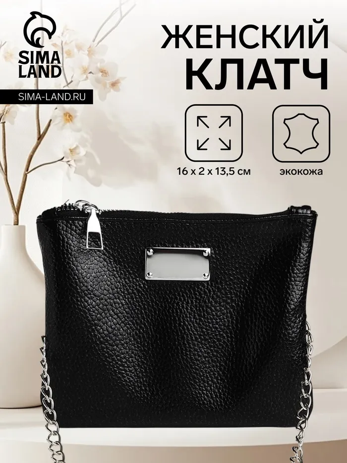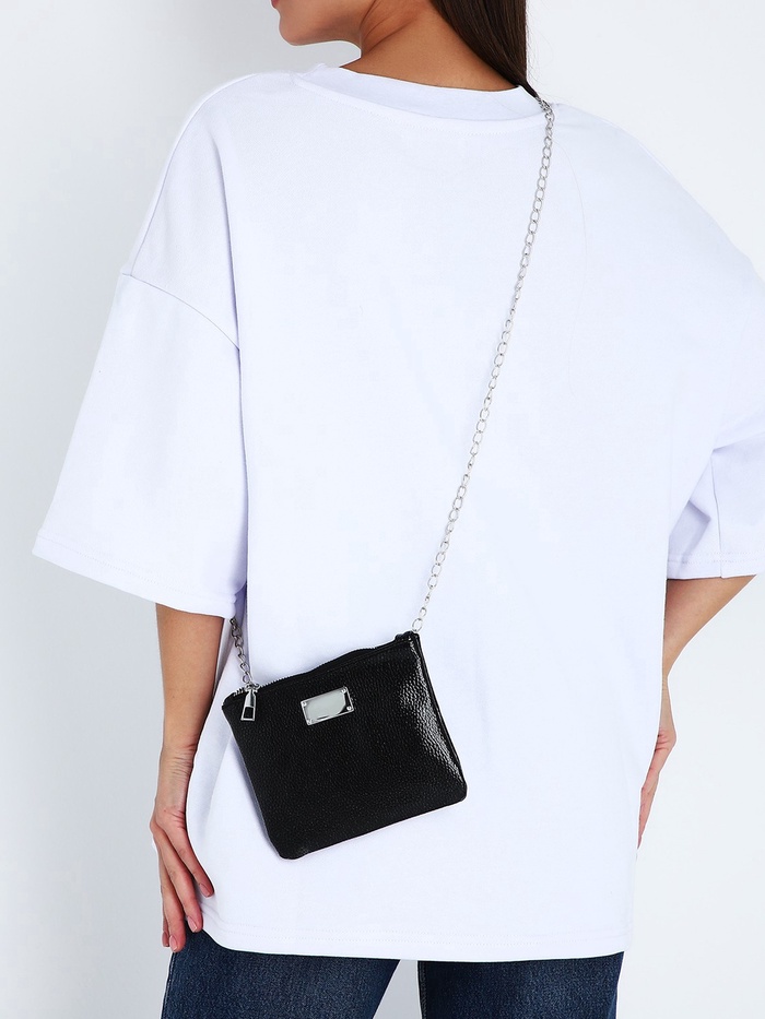 Сумка-клатч женская на молнии, на длинной цепочке, однотонная, чёрная — Характеристики