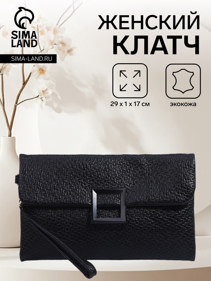 Сумка-клатч женская на молнии, с ремешком-ручкой, чёрная — Характеристики
