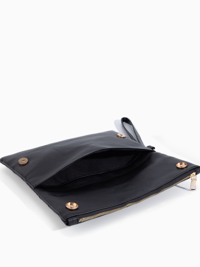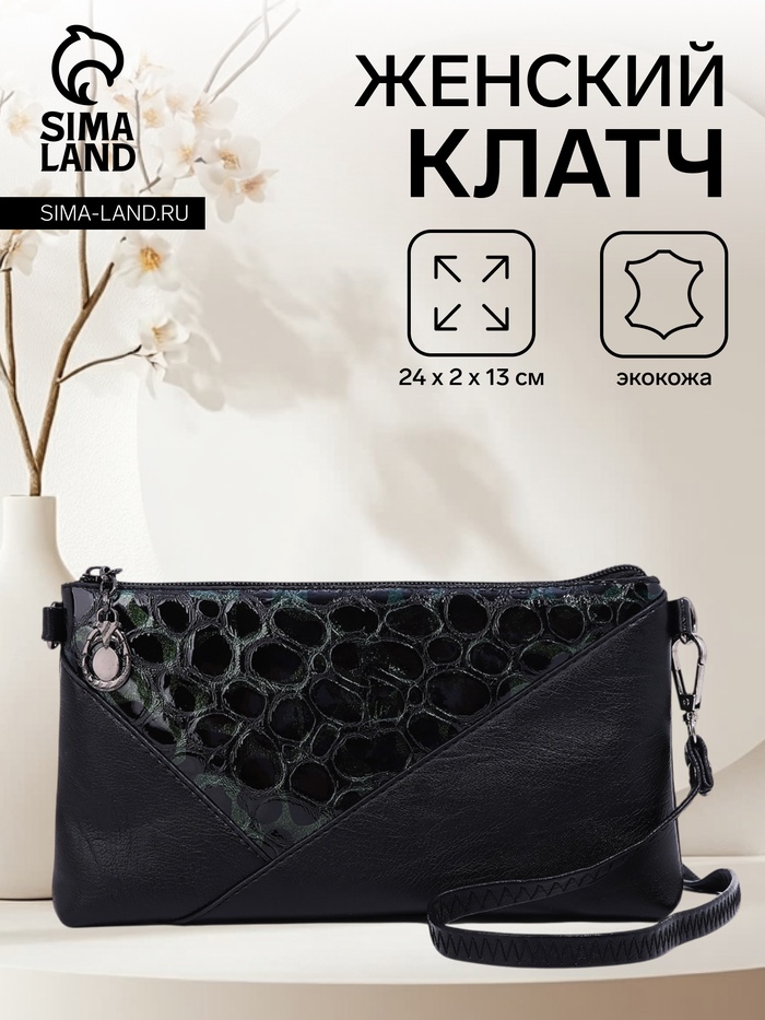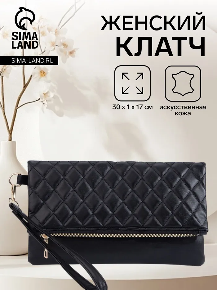 Средний размер (30×17×1 см) вмещает больше, чем кажется: телефон, косметичку, ключи и документы. Универсальный чёрный цвет и всесезонность делают клатч подходящим для летнего вечера и новогоднего торжества. Аксессуар дополняет коктейльные платья и вечерние наряды, создавая целостный образ без лишних деталей.