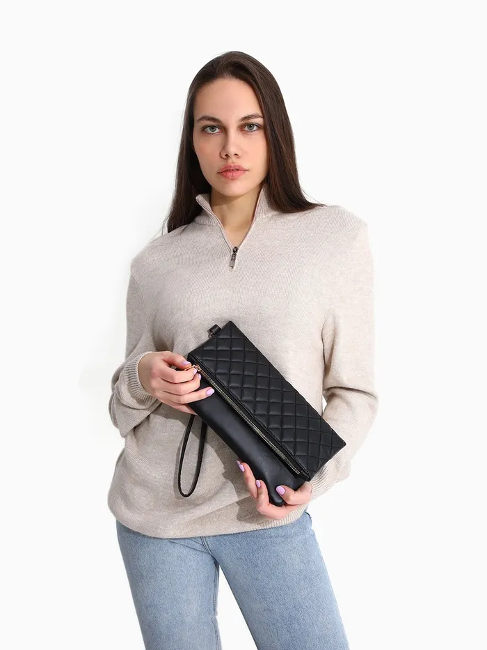 Сумка-клатч женская на молнии, с ремешком-ручкой, со стёжкой, чёрная — Характеристики