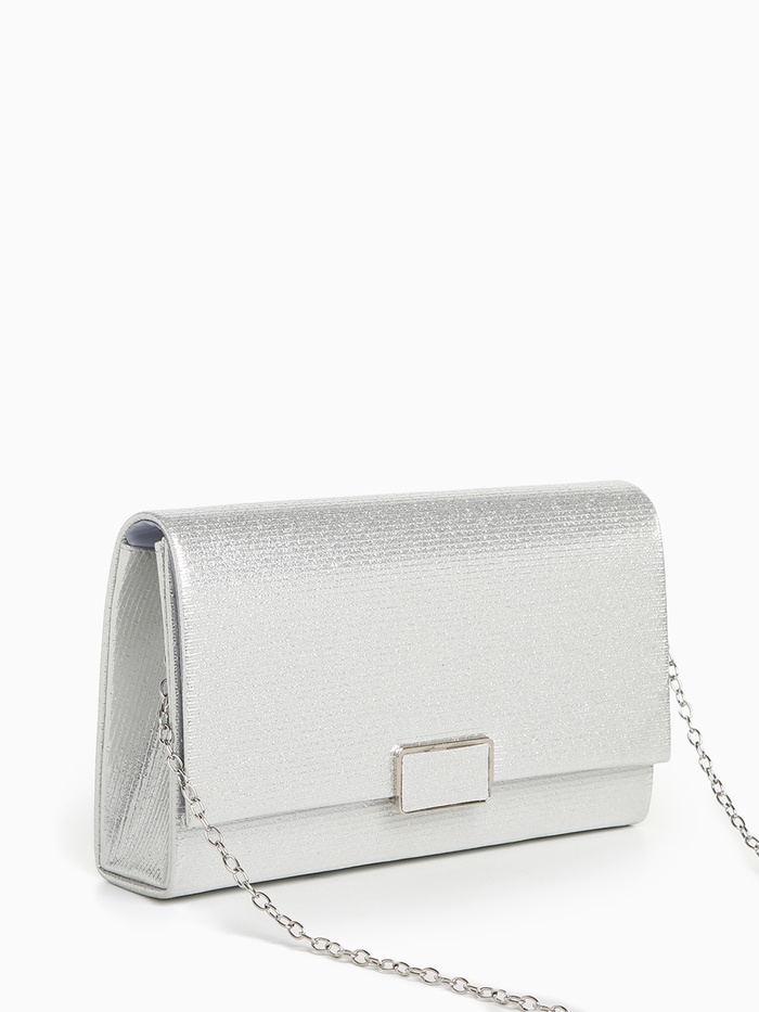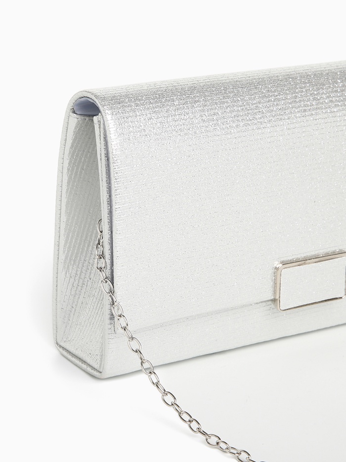 Сумка клатч, женская, праздничная, блестящая, с длинной цепочкой, на магните, серебряная — Характеристики