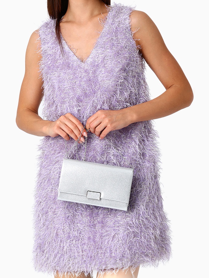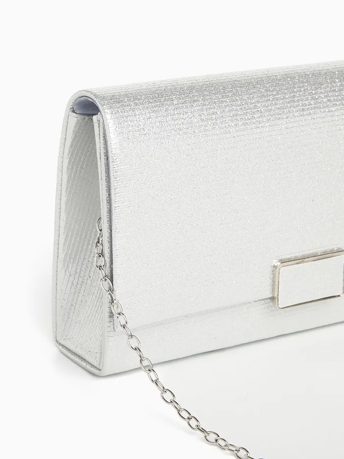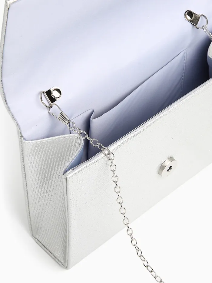 - Стильный серебряный дизайн: Однотонная текстура и серебристая фурнитура придают изделию изысканный вид, подчеркивая вашу индивидуальность на любом празднике.