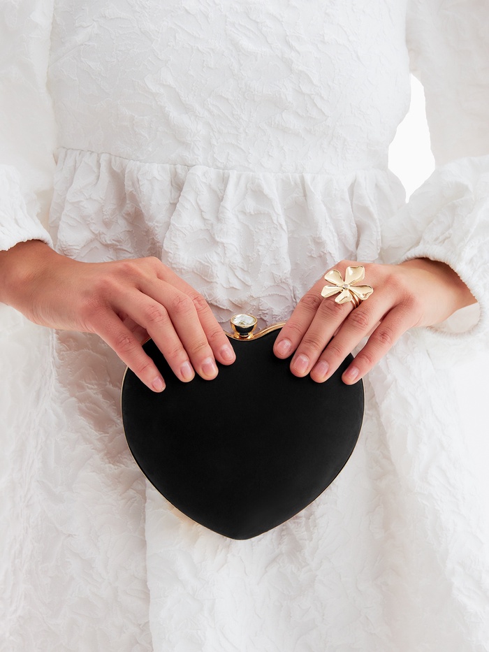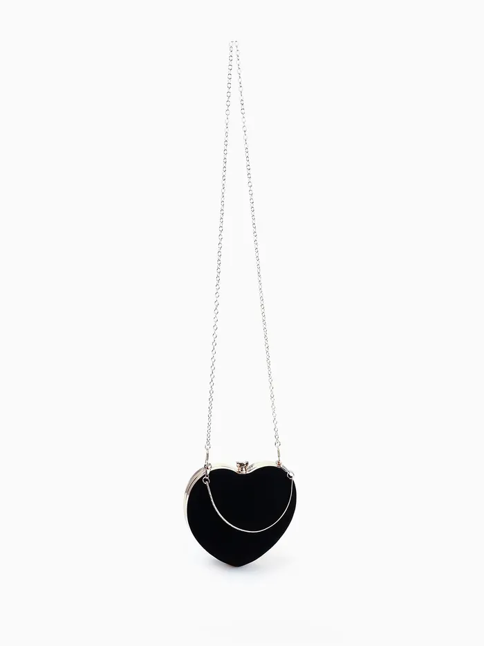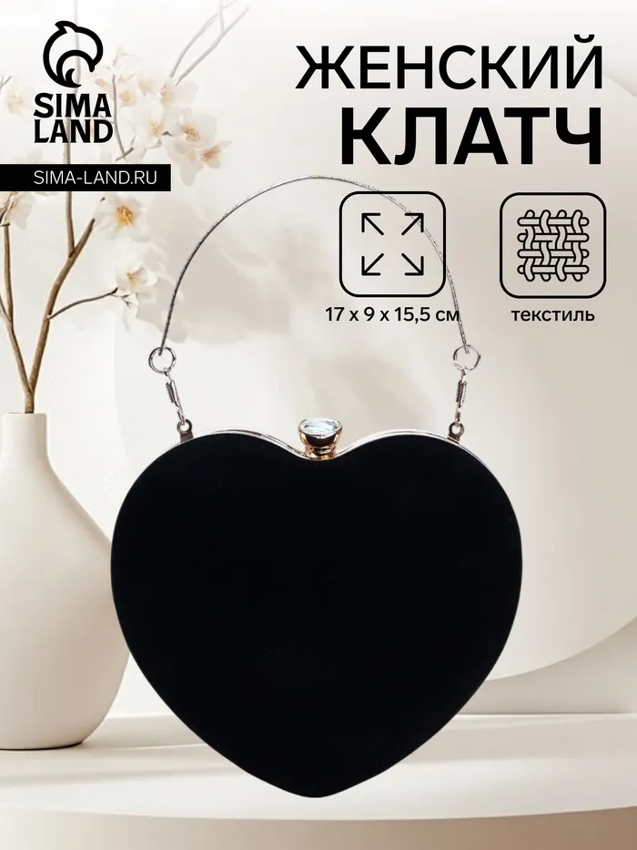 Сумка-клатч женская вечерняя на фермуаре, в форме сердца, жёсткий корпус, чёрная — Характеристики