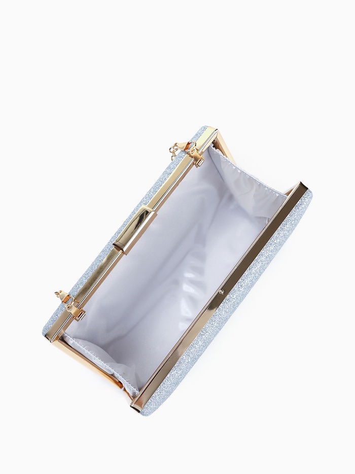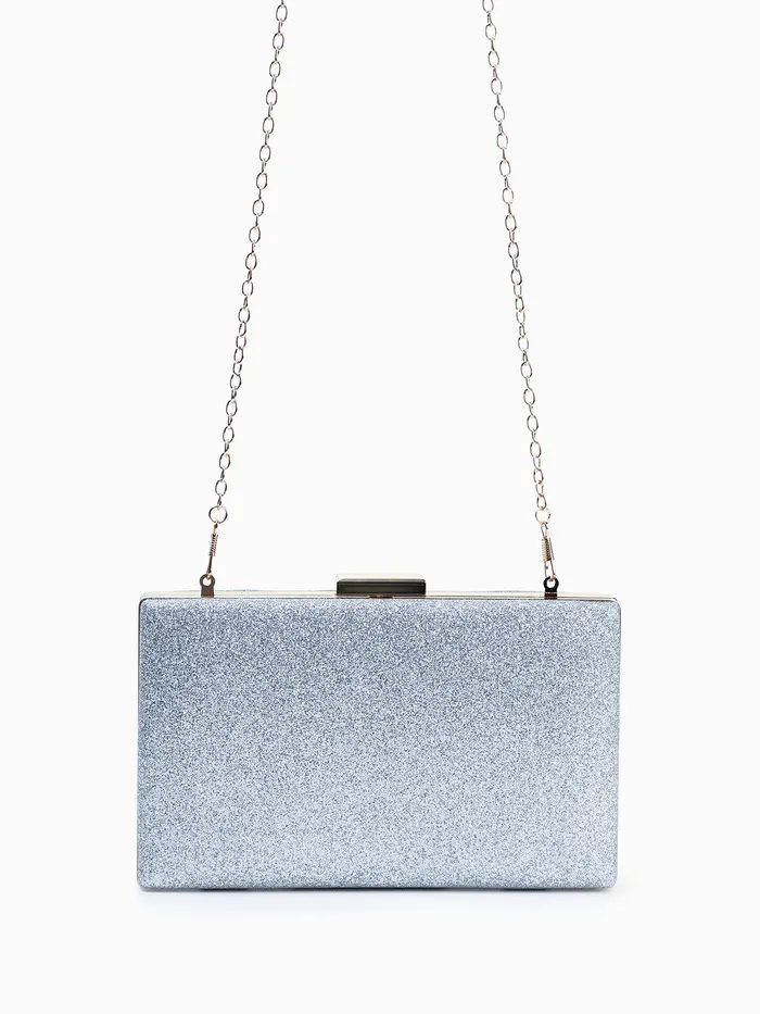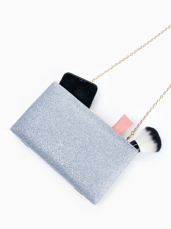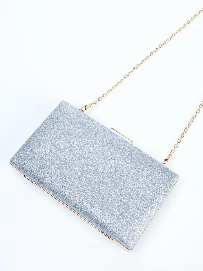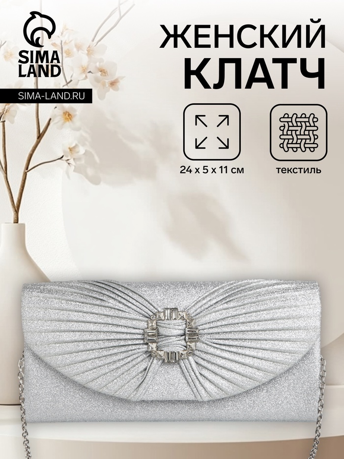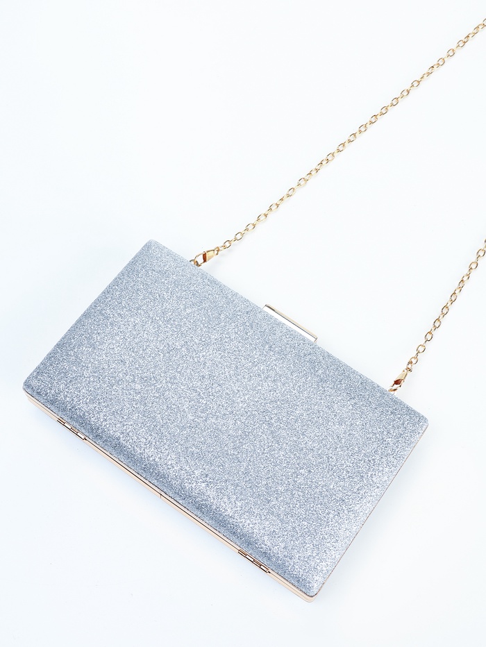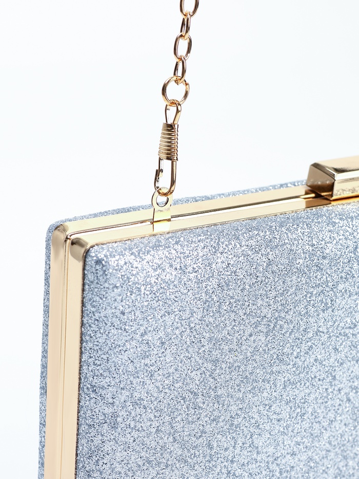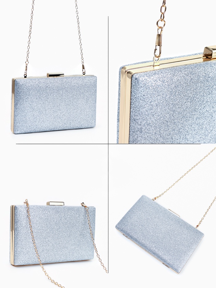 Сумка-клатч женская вечерняя на фермуаре, жёсткий корпус, на цепочке, блестящая, серебристая — Характеристики
