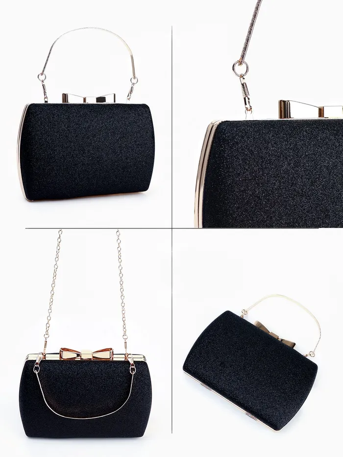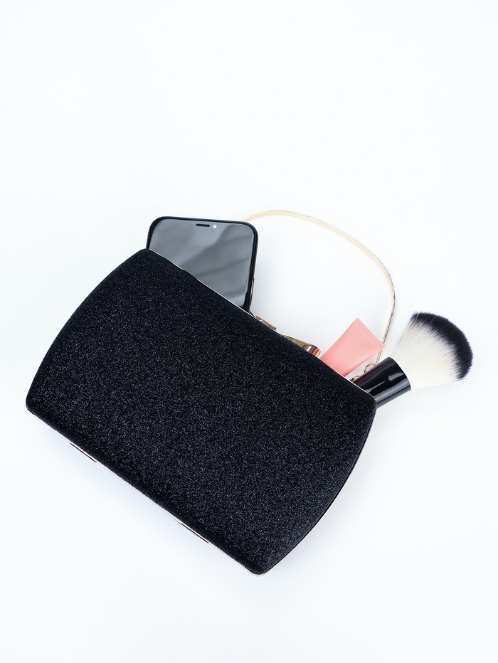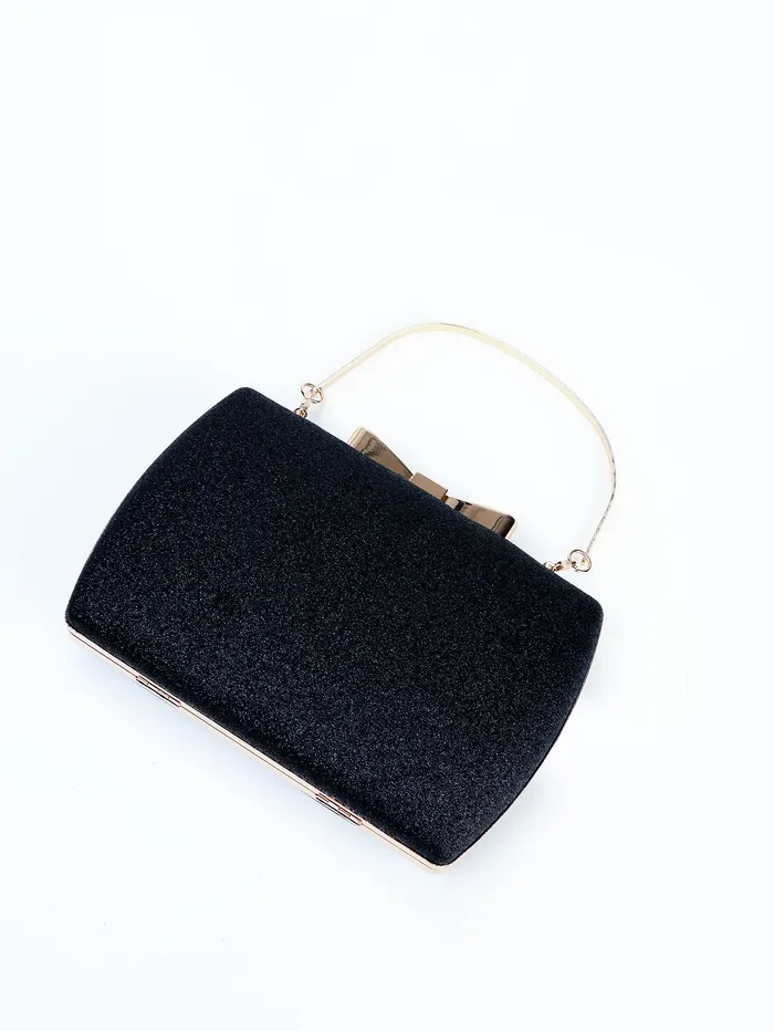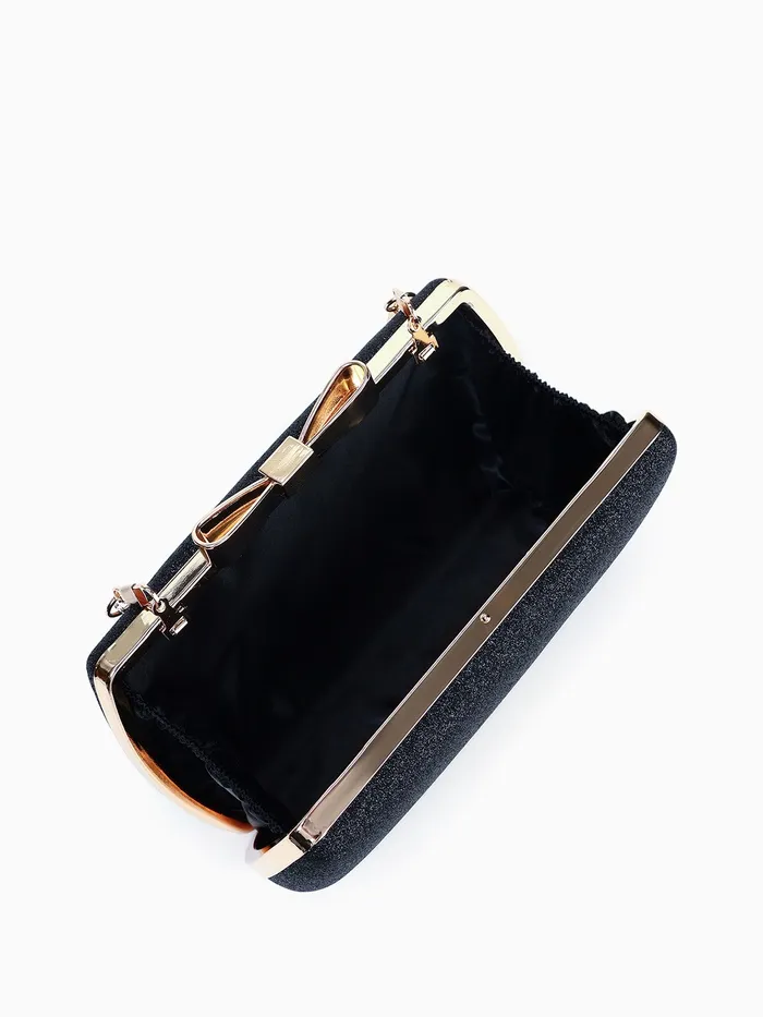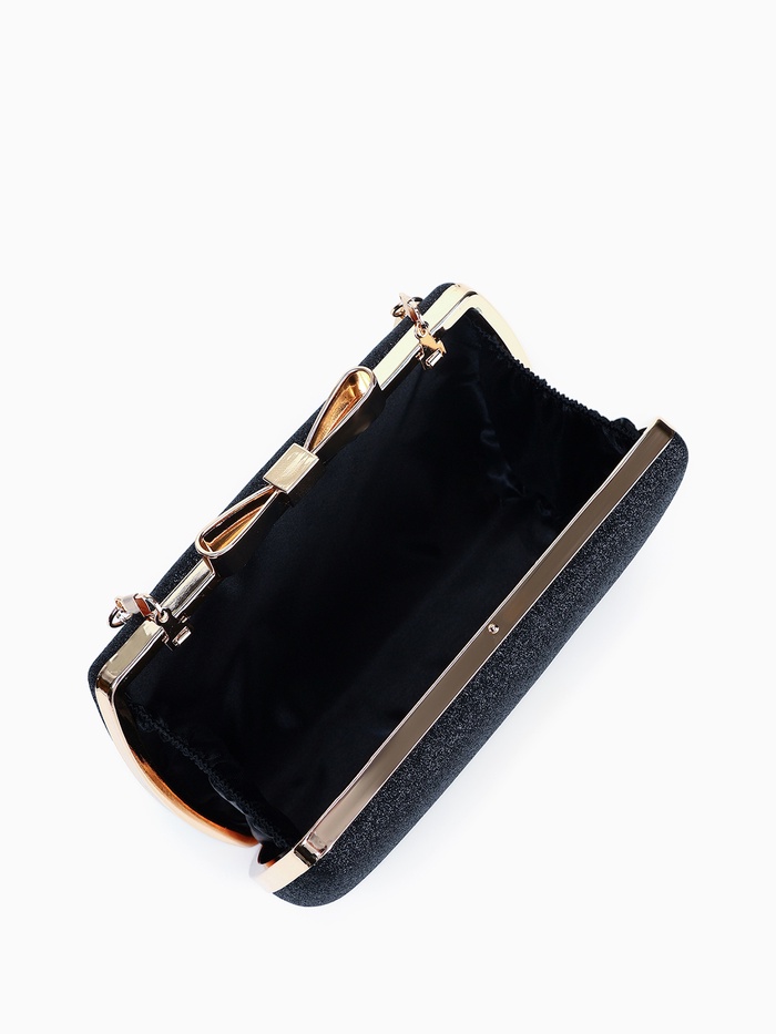 Сумка-клатч женская вечерняя на фермуаре, жёсткий корпус, с золотистой фурнитурой, чёрная — Характеристики