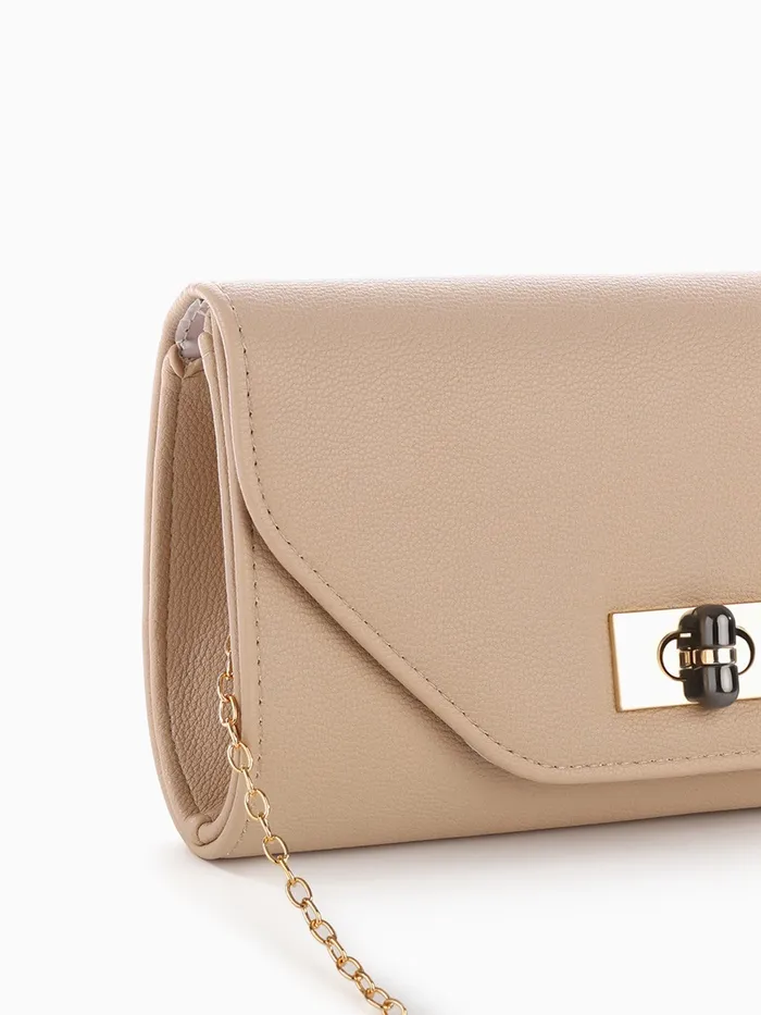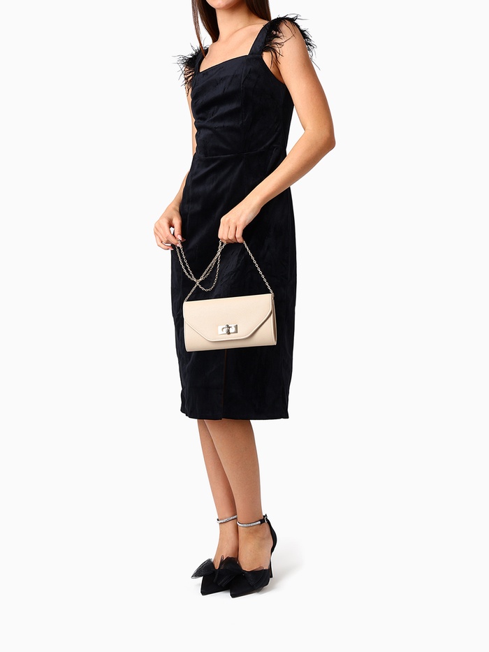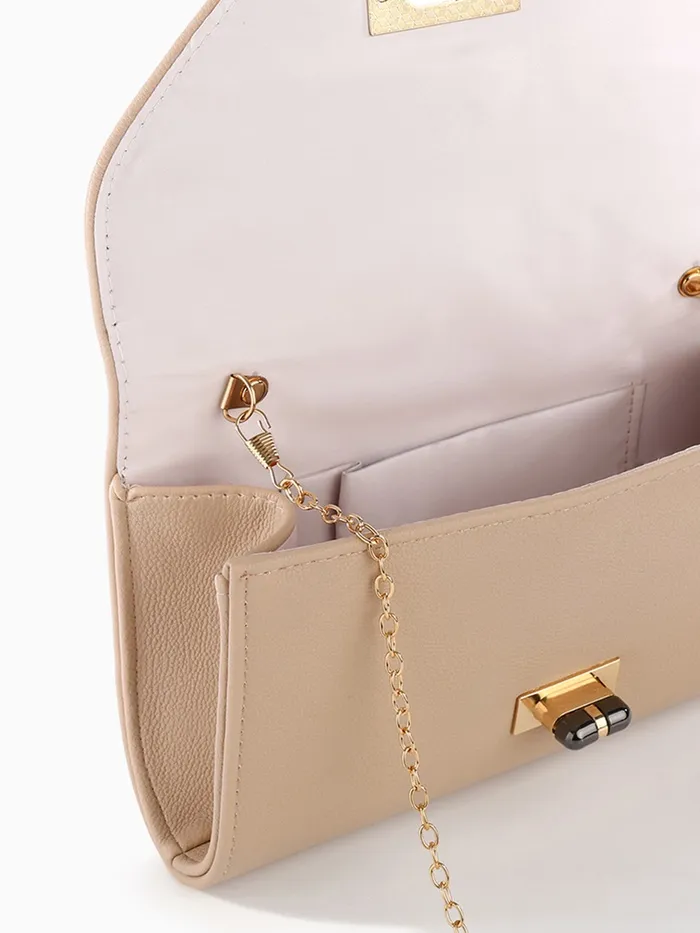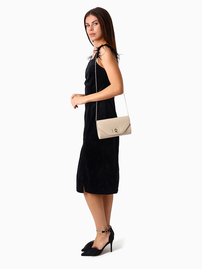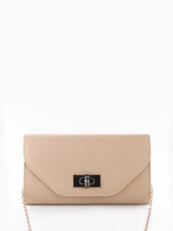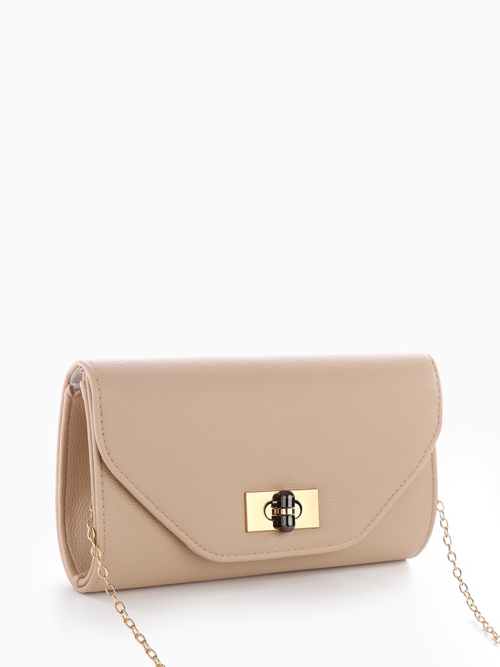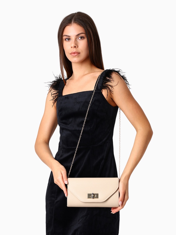 Сумка-клатч женская вечерняя на клапане, на золотистой цепочке, однотонная, бежевая — Характеристики