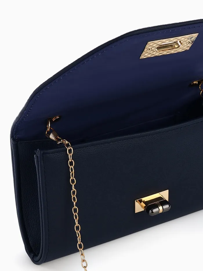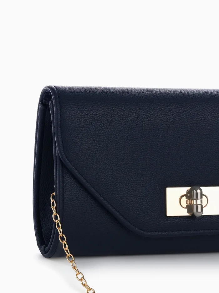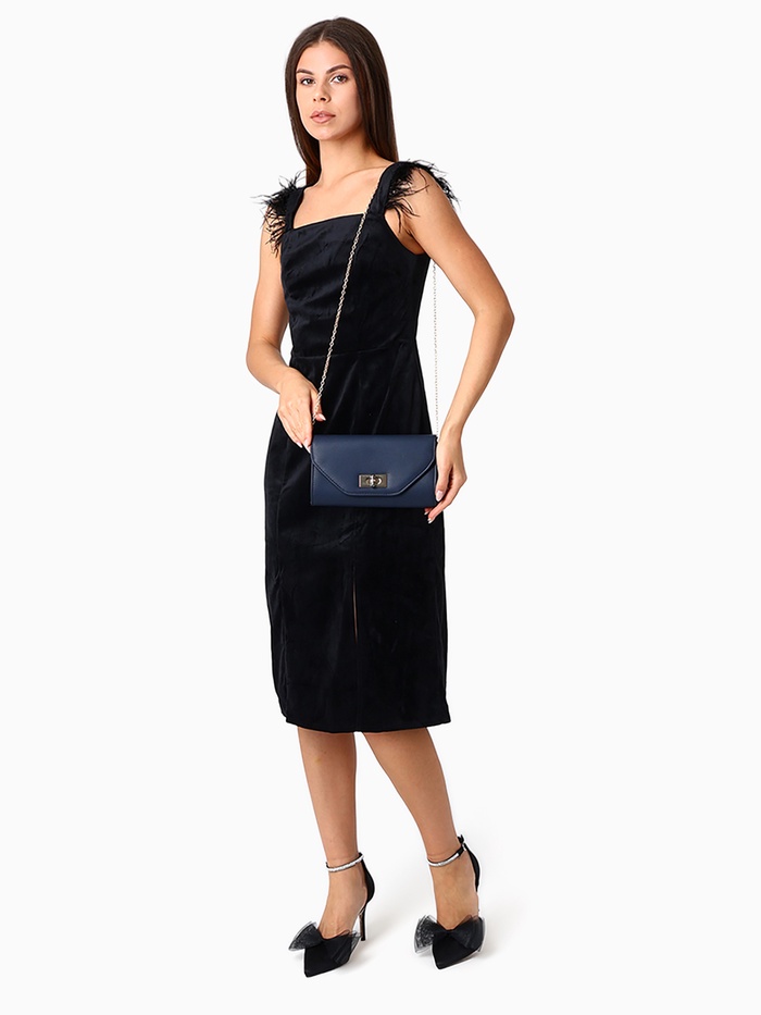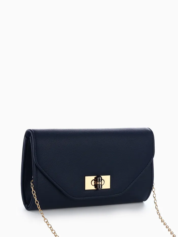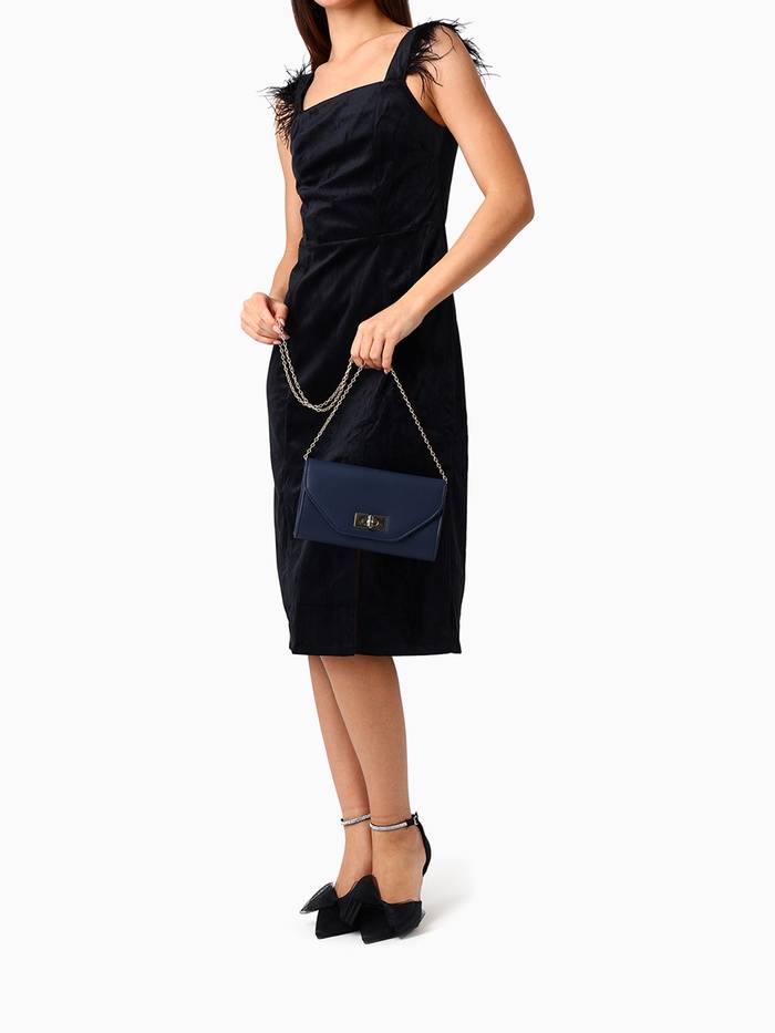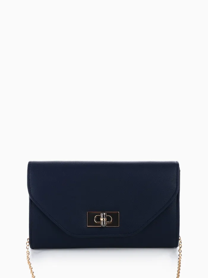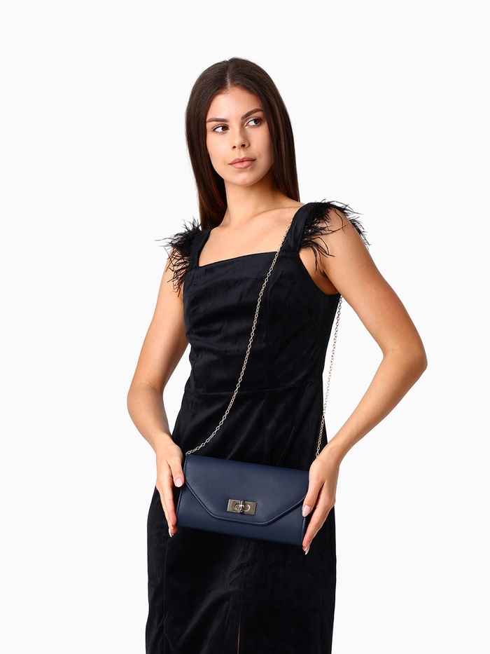 Сумка-клатч женская вечерняя на клапане, на золотистой цепочке, однотонная, тёмно-синяя — Характеристики