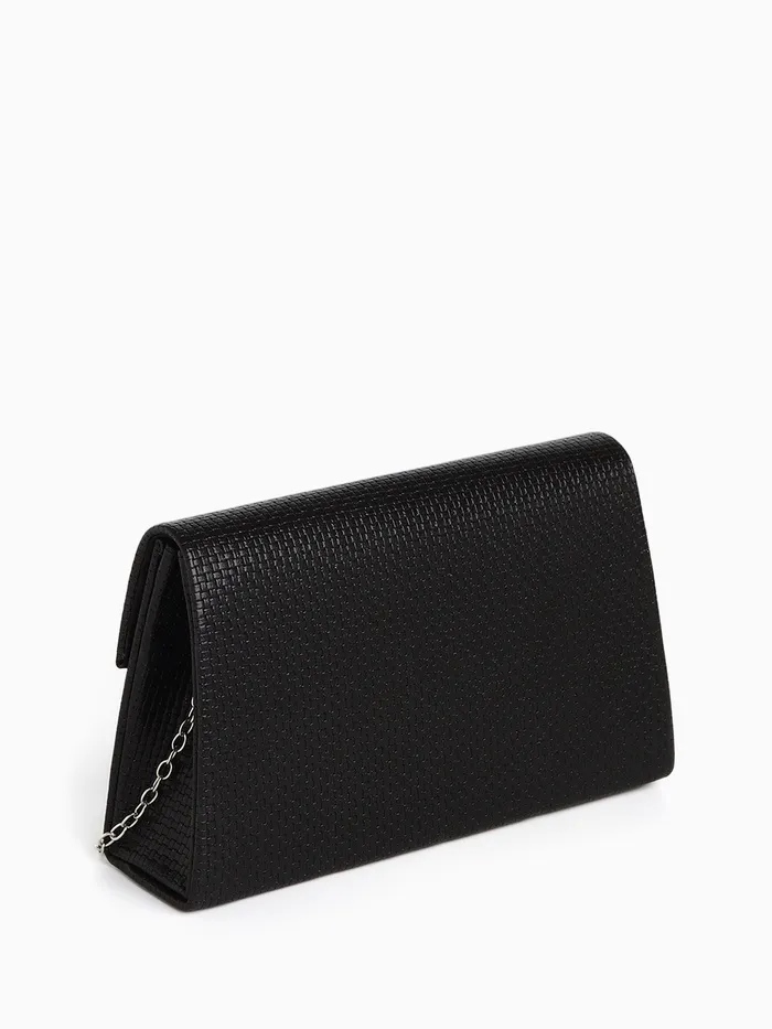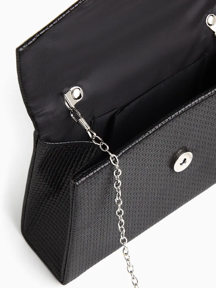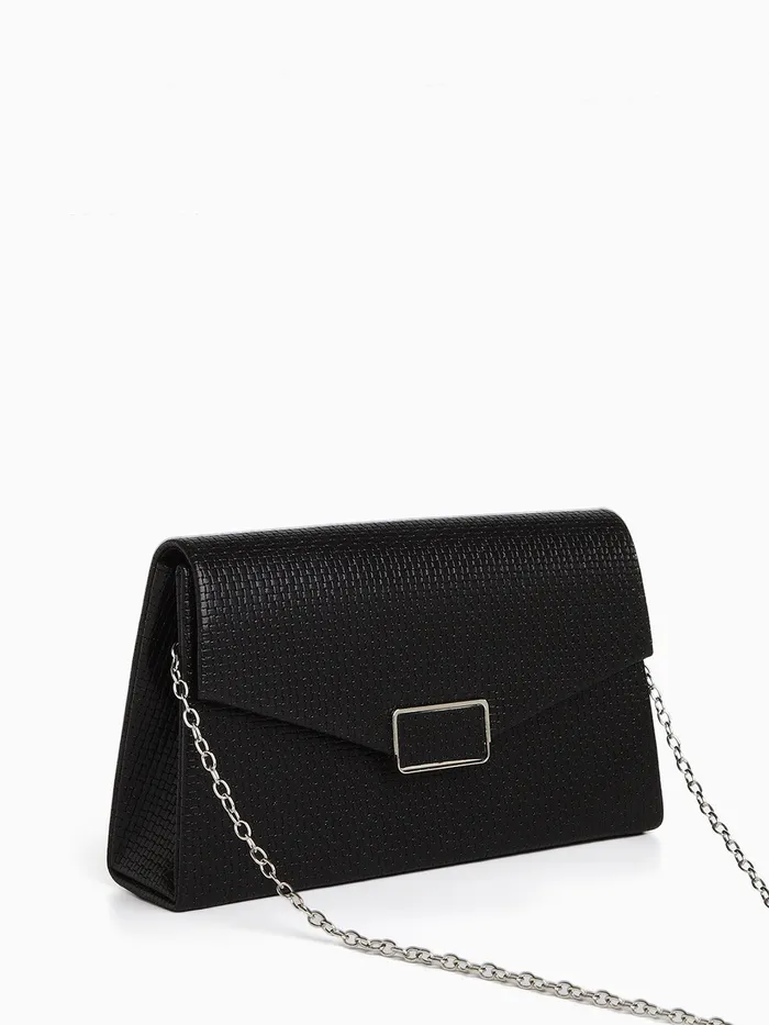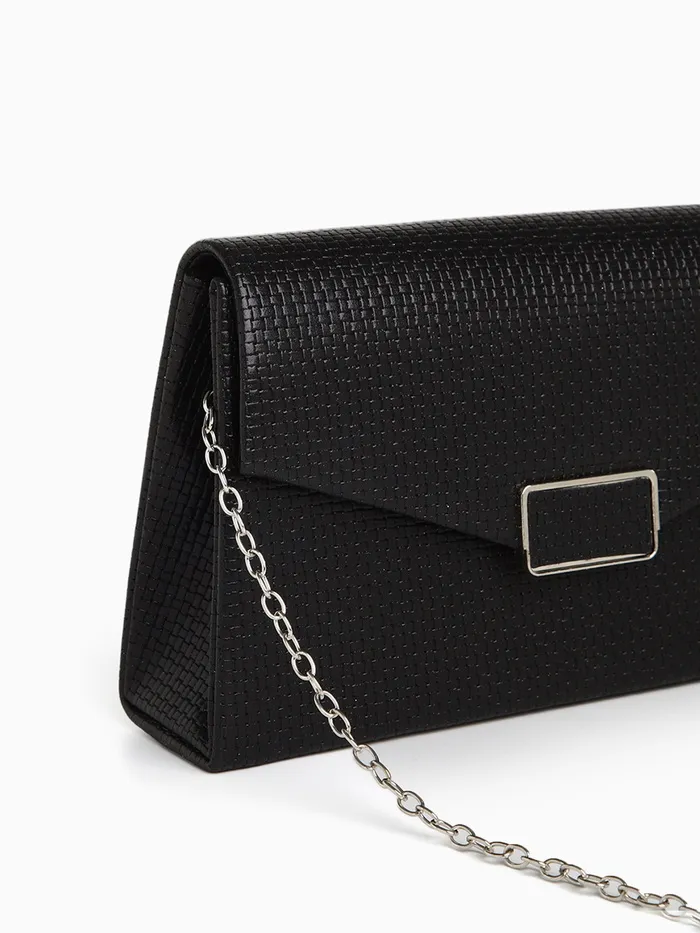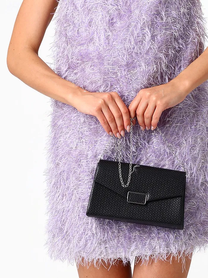 Сумка-клатч женская вечерняя на магните, на длинной серебристой цепочке, чёрная — Характеристики