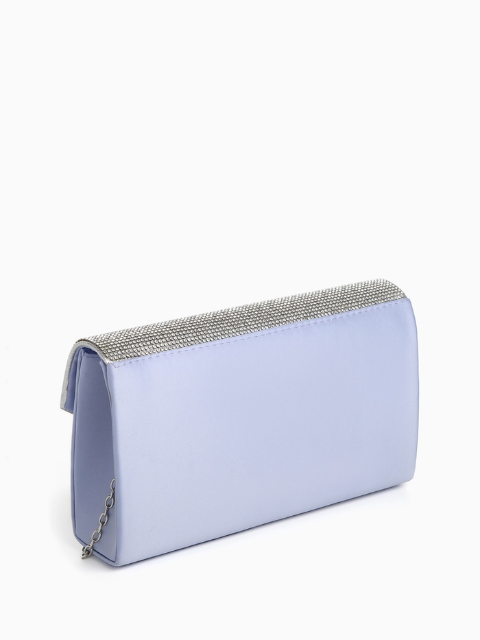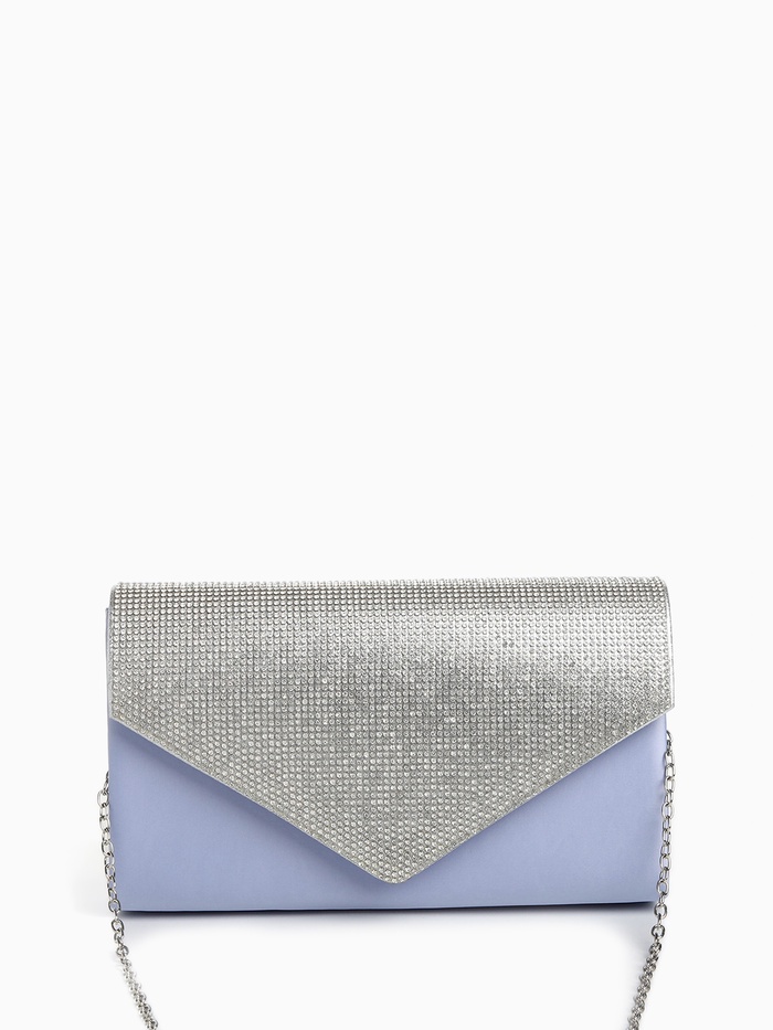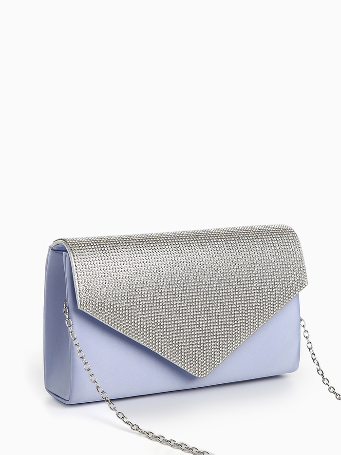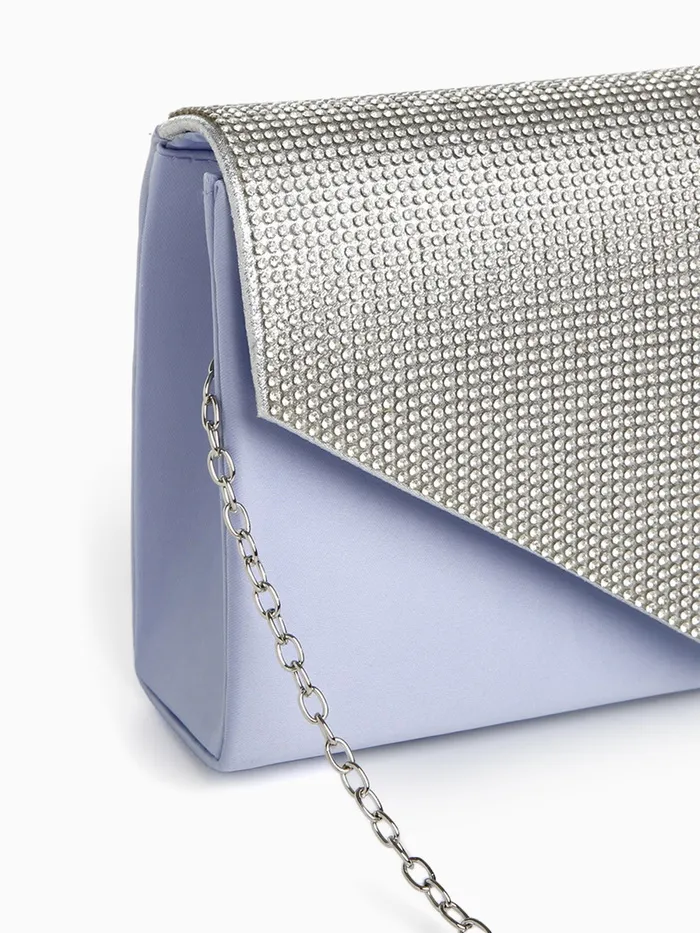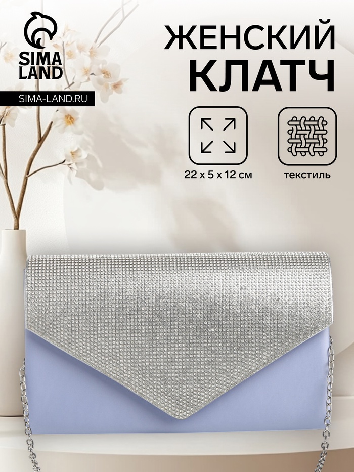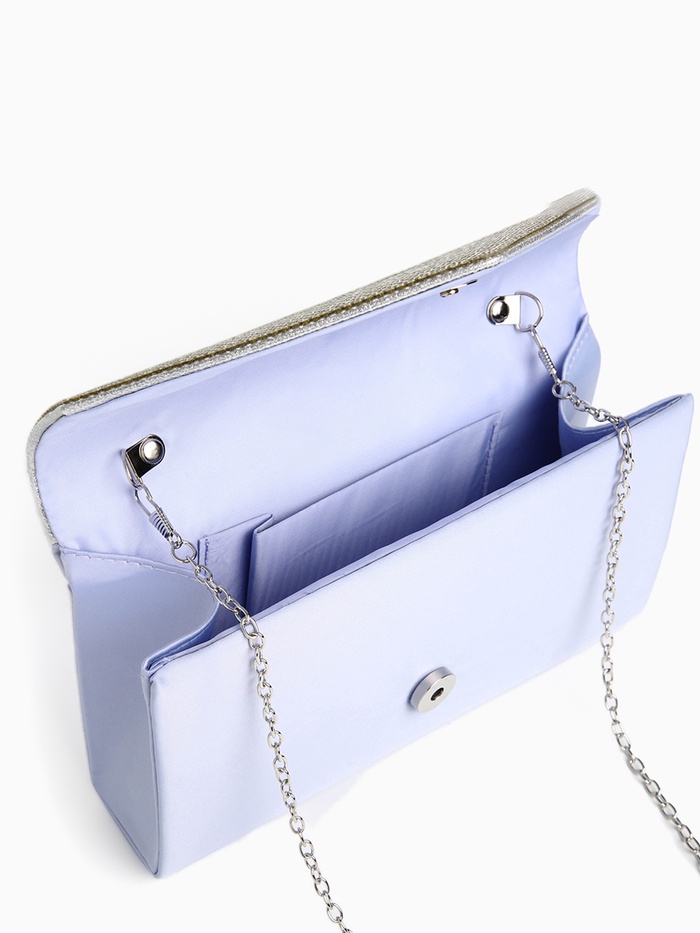 Сумка-клатч женская вечерняя на магните, на длинной цепочке, комбинированная, голубая/серебристая — Характеристики