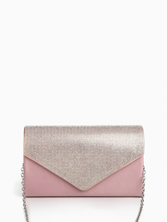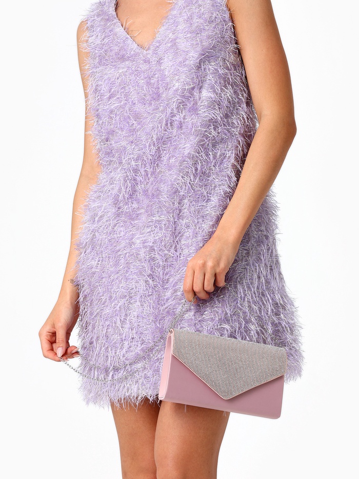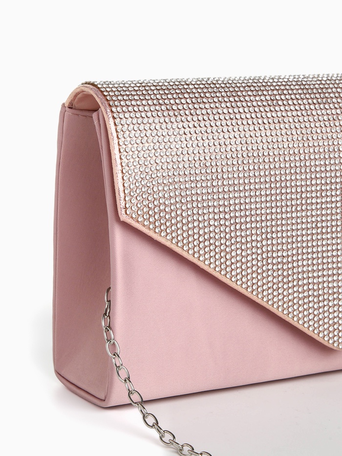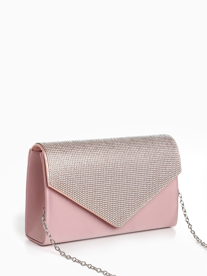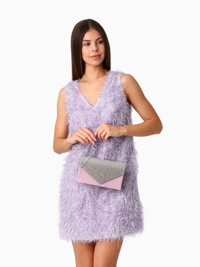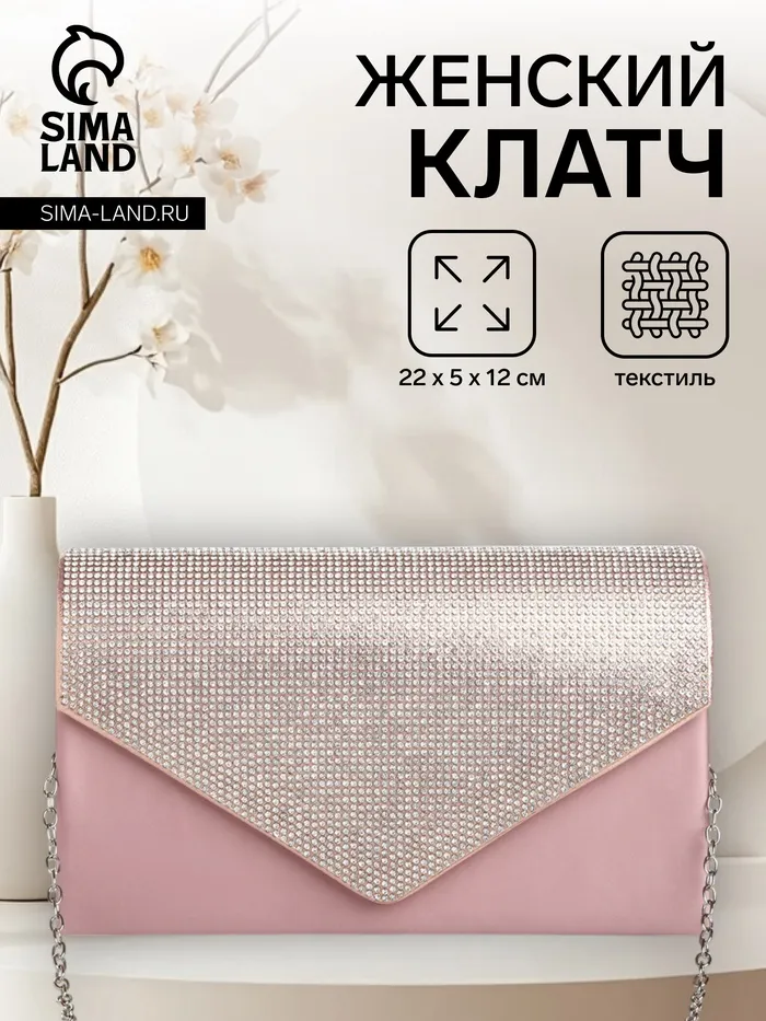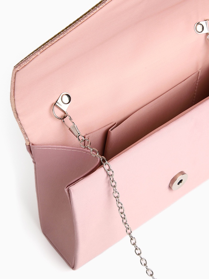 Сумка-клатч женская вечерняя на магните, на длинной цепочке, комбинированная, розовая/серебристая — Характеристики