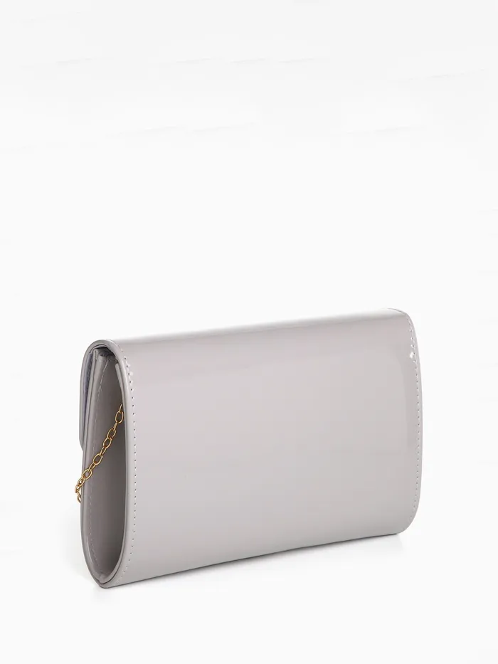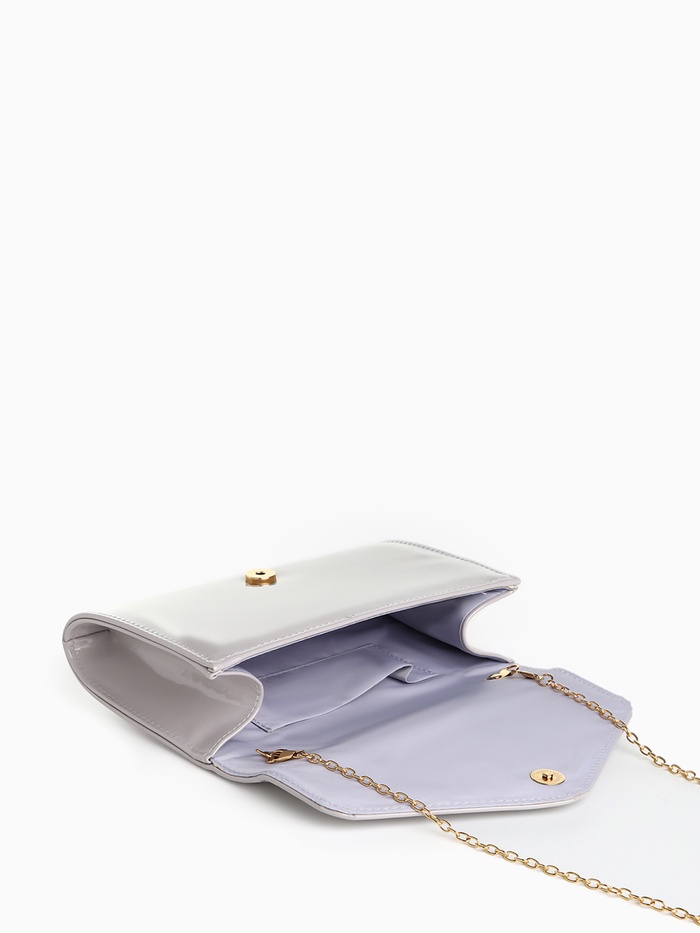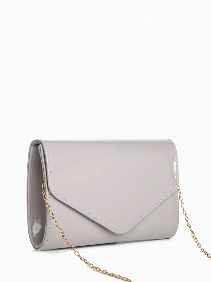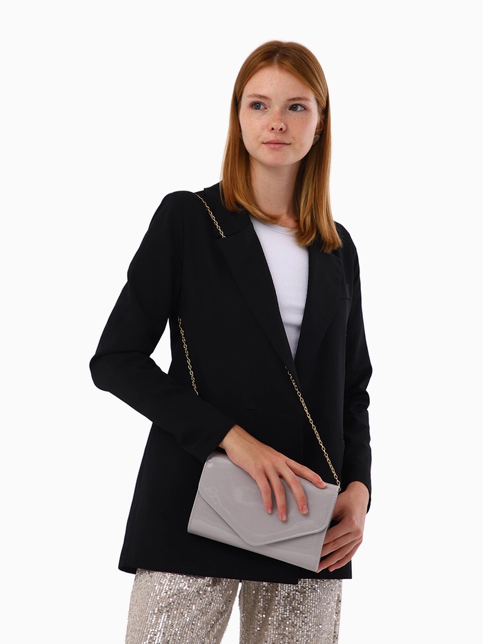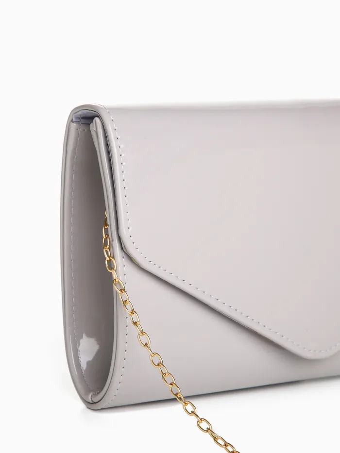 Сумка-клатч женская вечерняя на магните, на длинной цепочке, лаковая, однотонная, серая — Характеристики